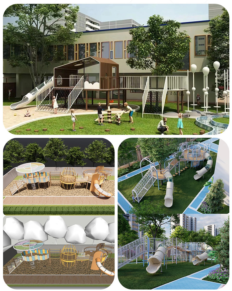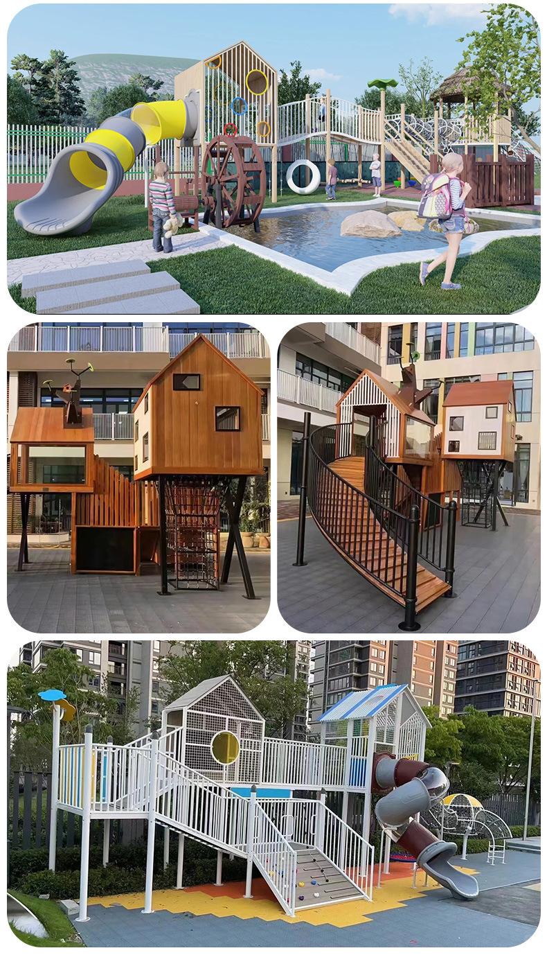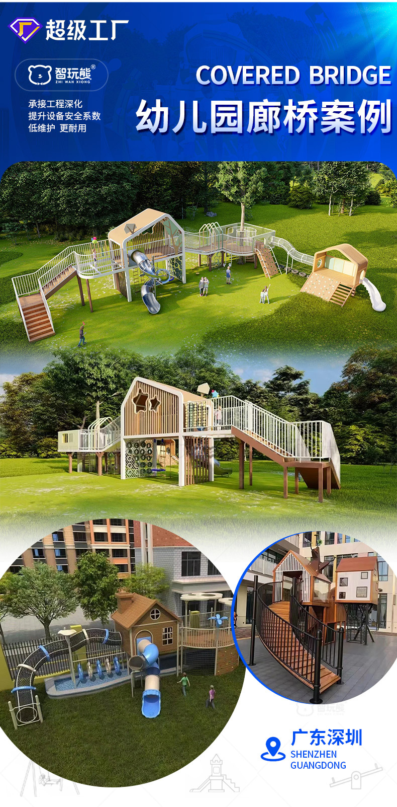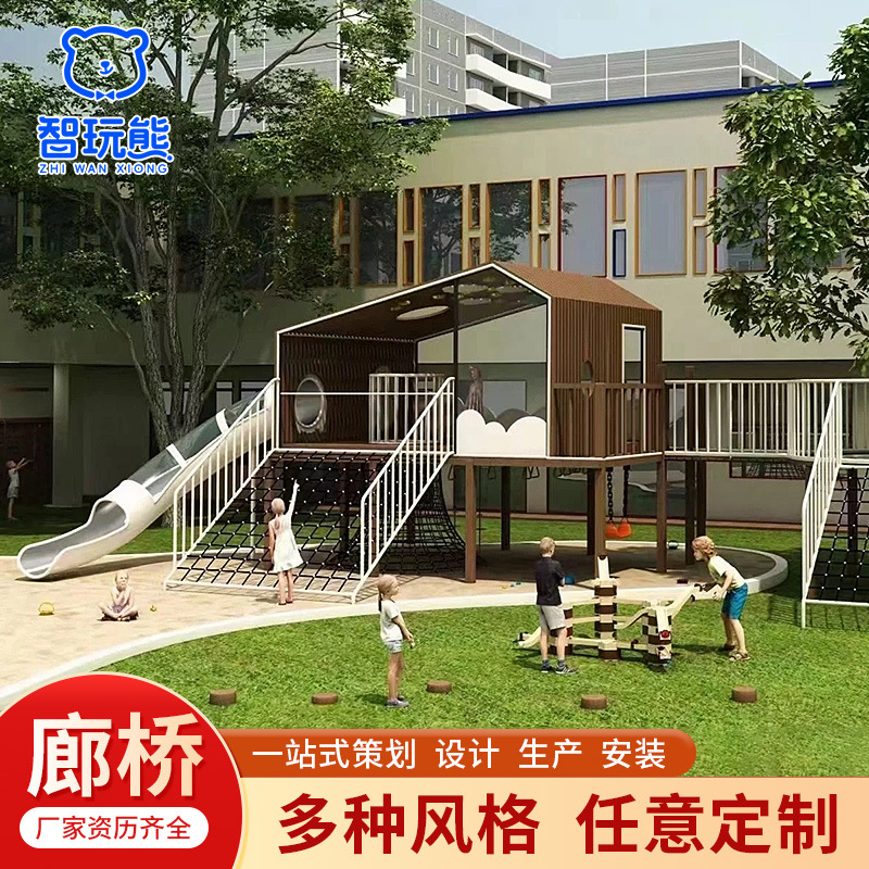 幼儿园户外木质廊架组合非标不锈钢滑梯大型景区游乐场设备滑滑梯