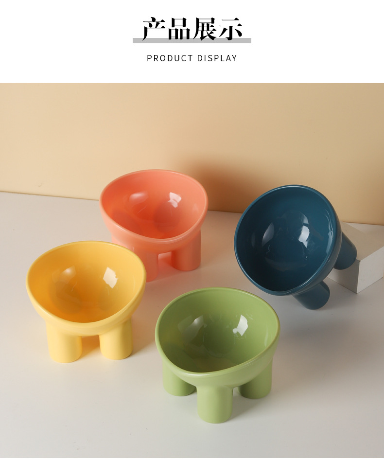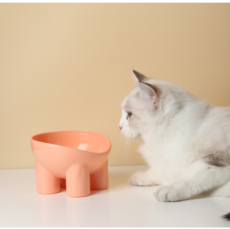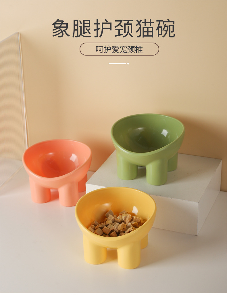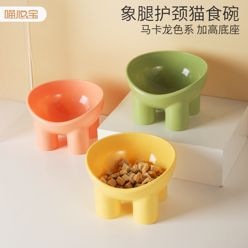 皮皮淘马卡龙象腿碗猫咪食盆斜口护颈猫碗批发塑料宠物碗用品批发
