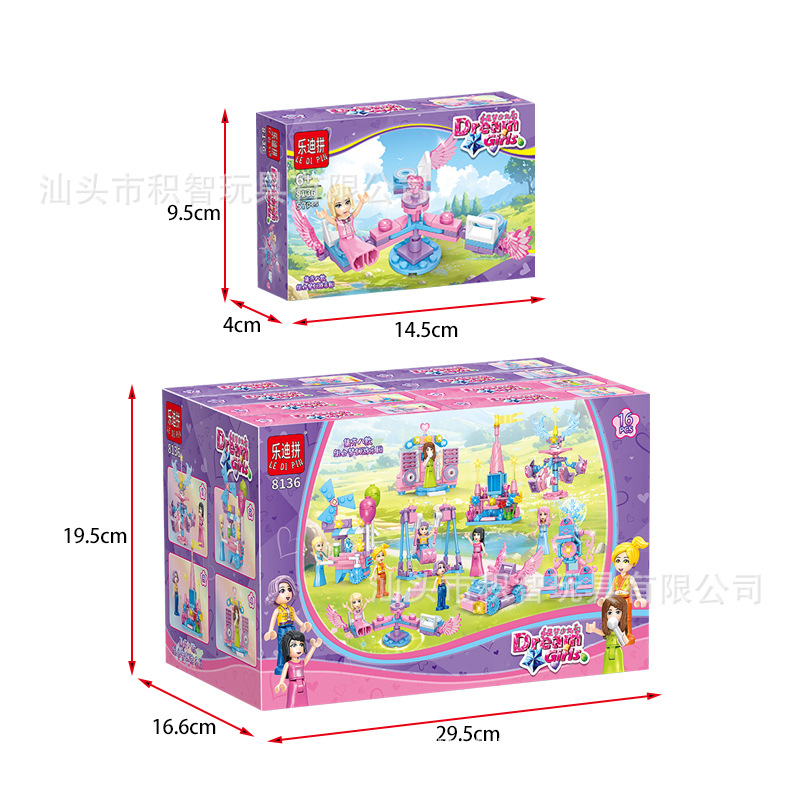 跨年商品批发儿童益智玩具拼装积木小颗粒女孩游乐场8合1兼容乐高
