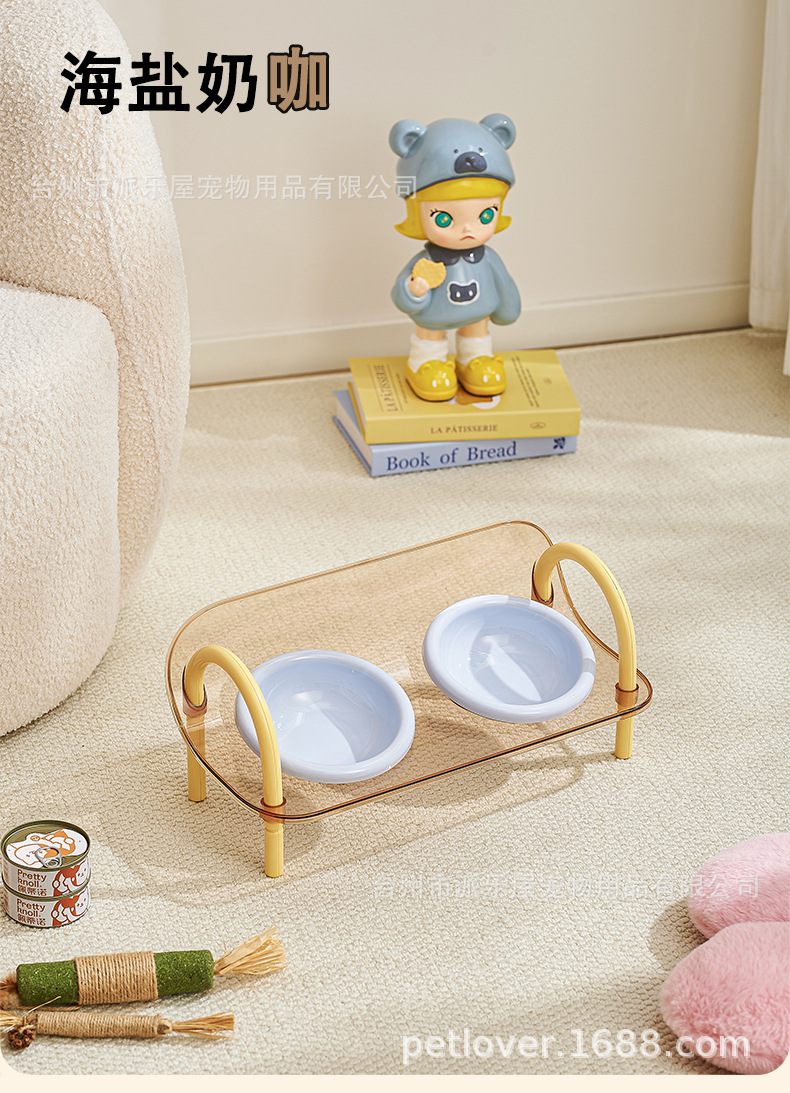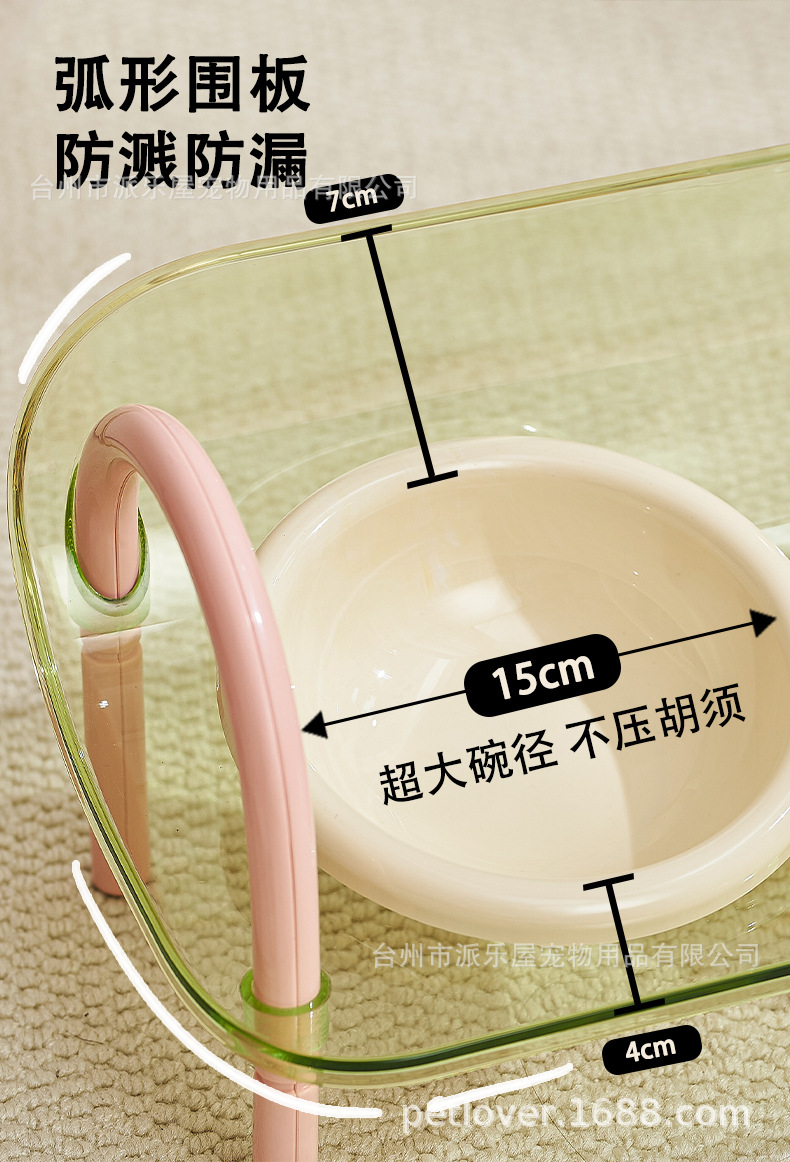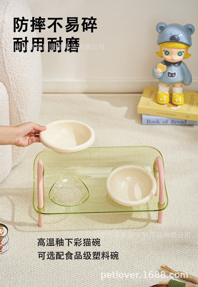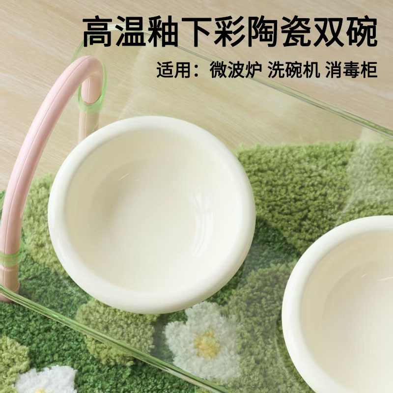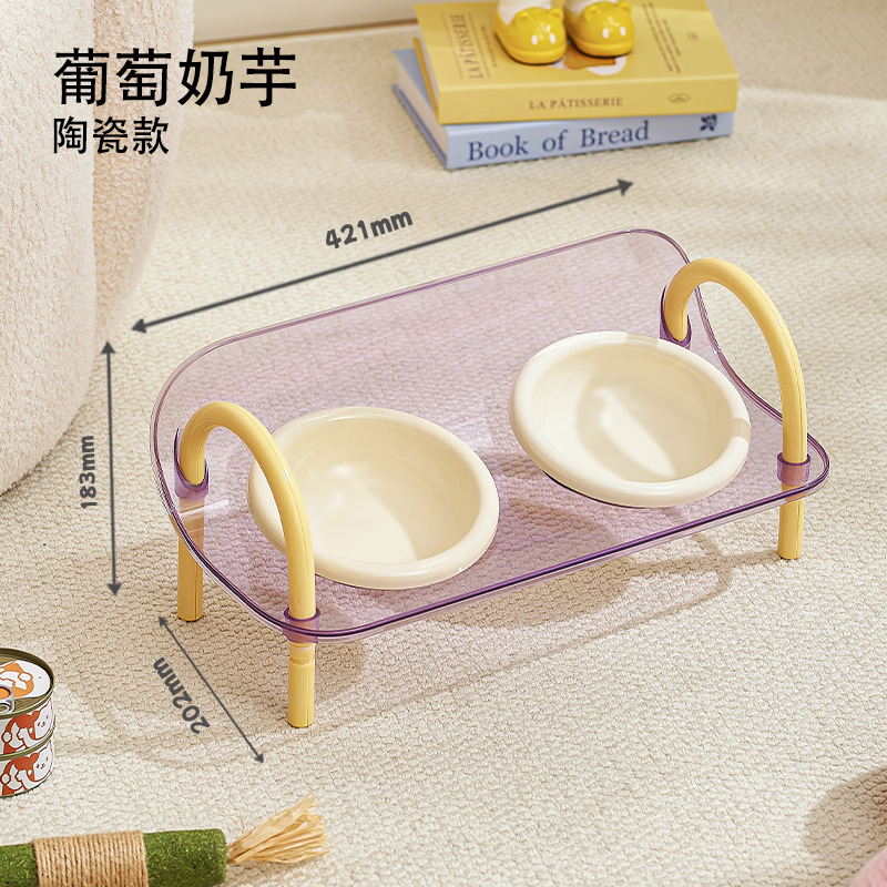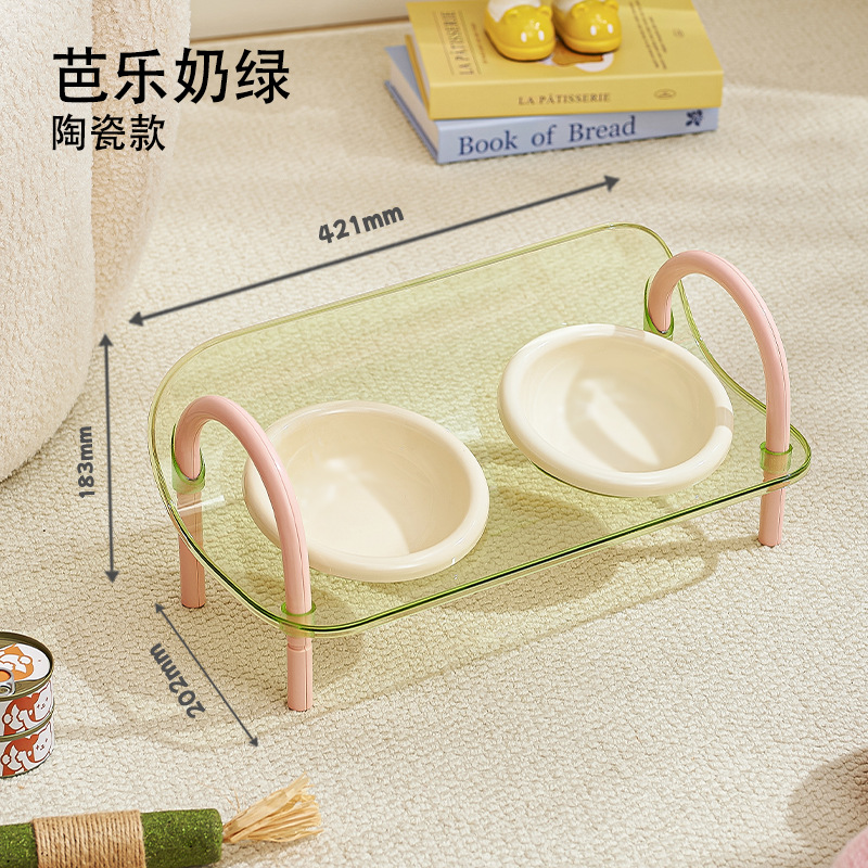 严选宠物陶瓷双碗架子透明爆款宠物用品猫碗狗碗陶瓷碗护颈宠物碗
