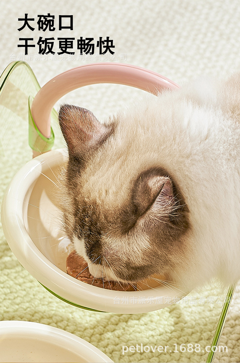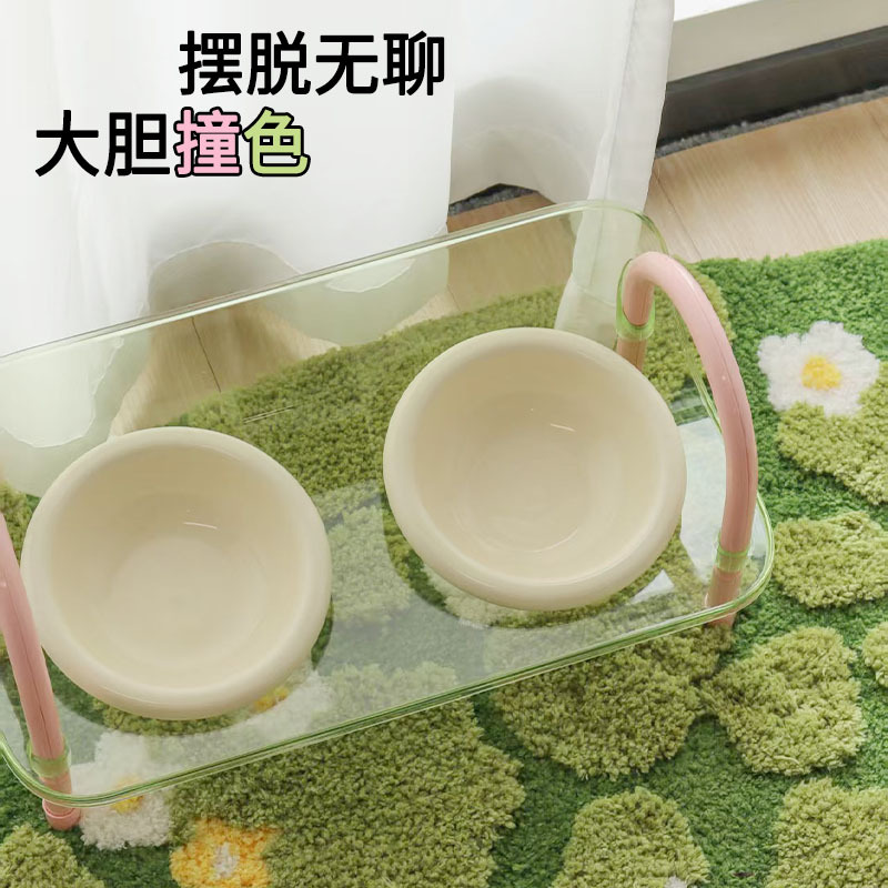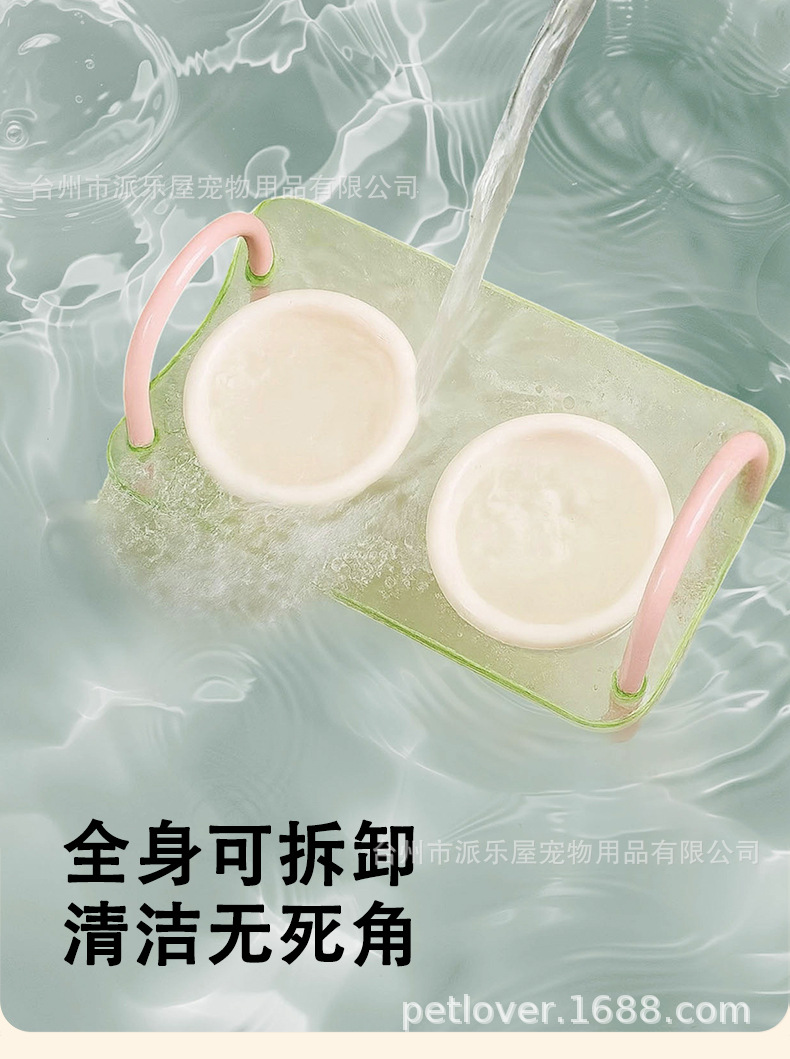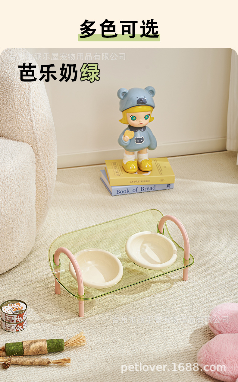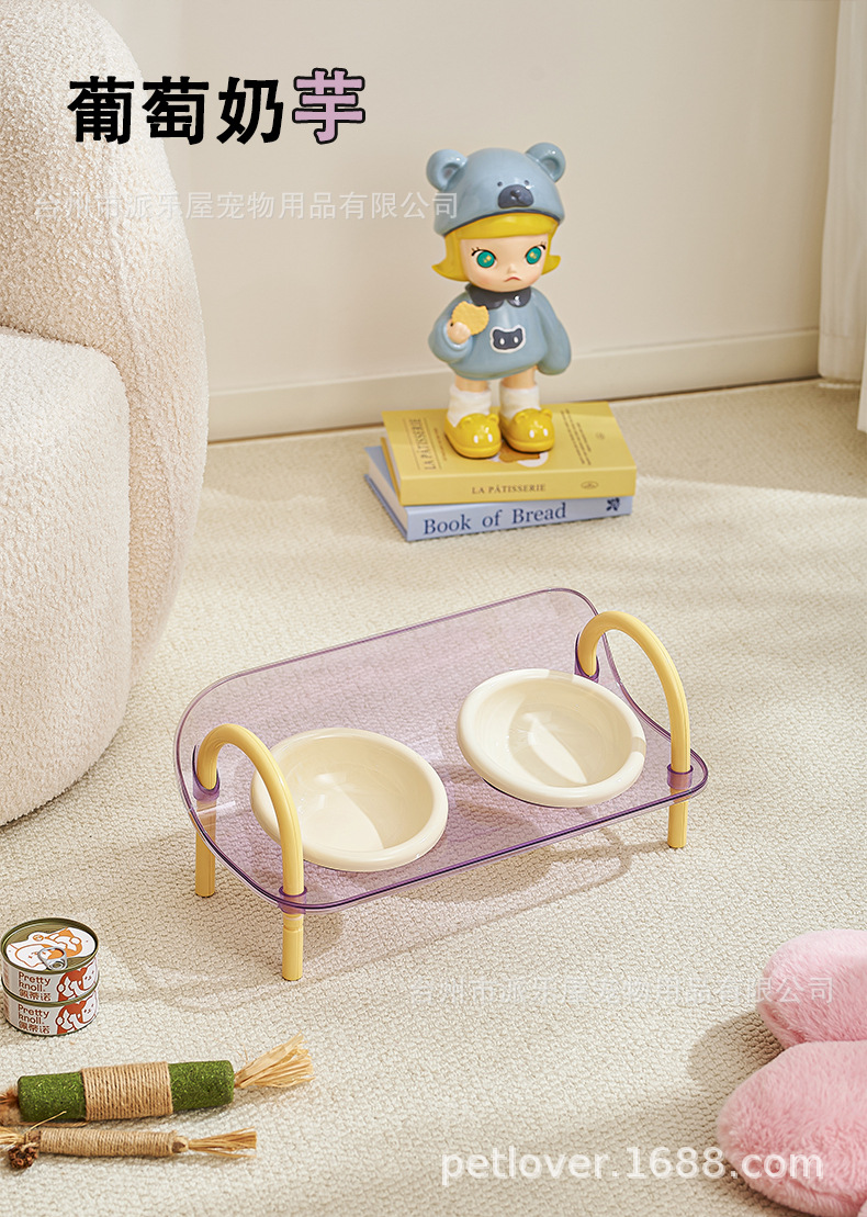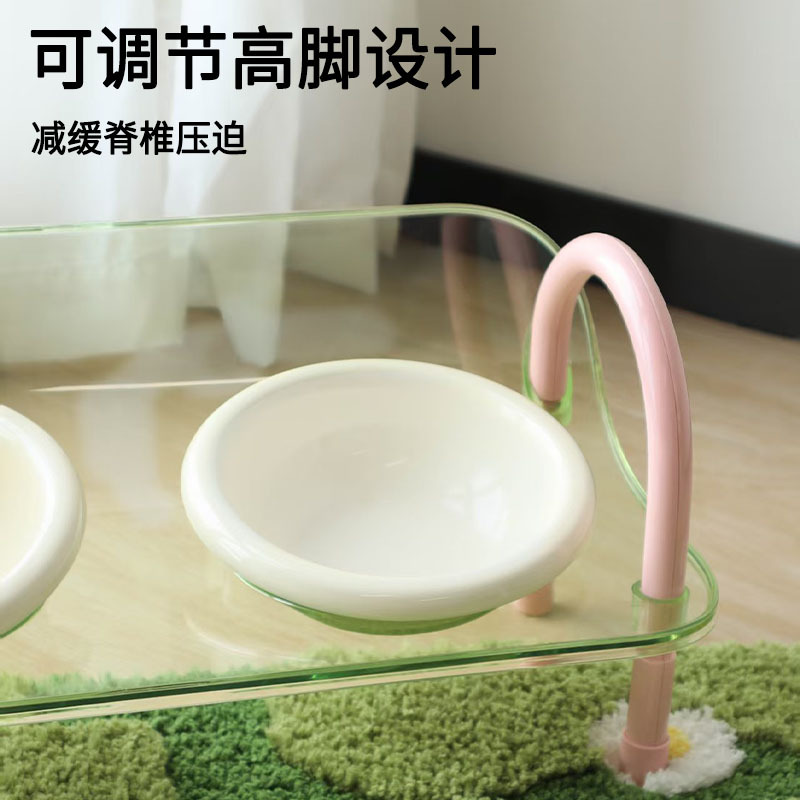 严选宠物陶瓷双碗架子透明爆款宠物用品猫碗狗碗陶瓷碗护颈宠物碗