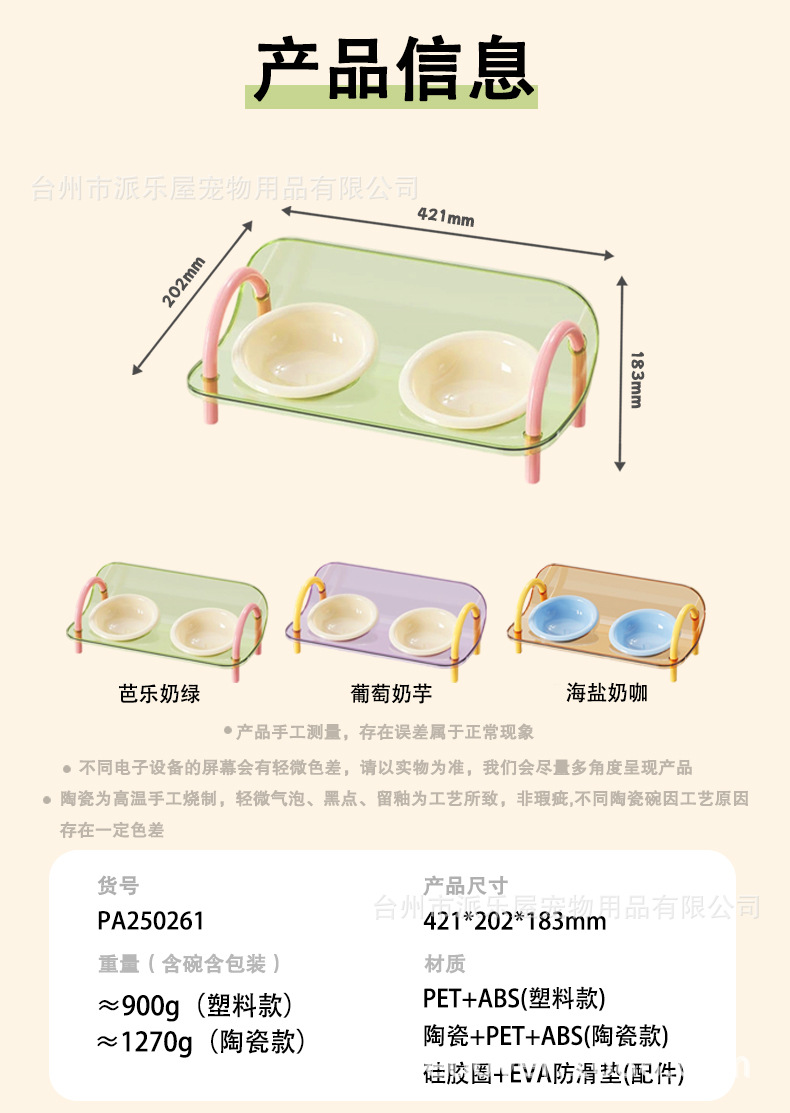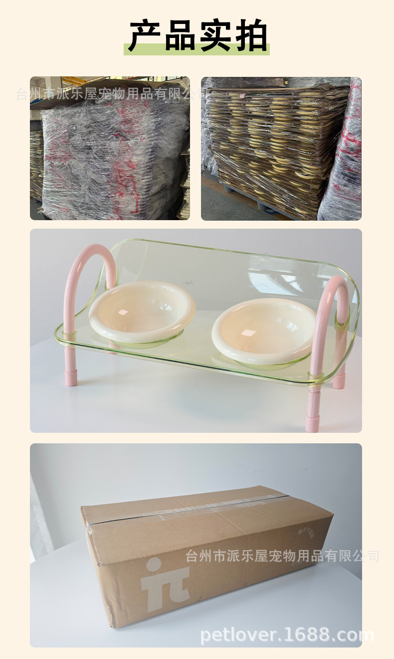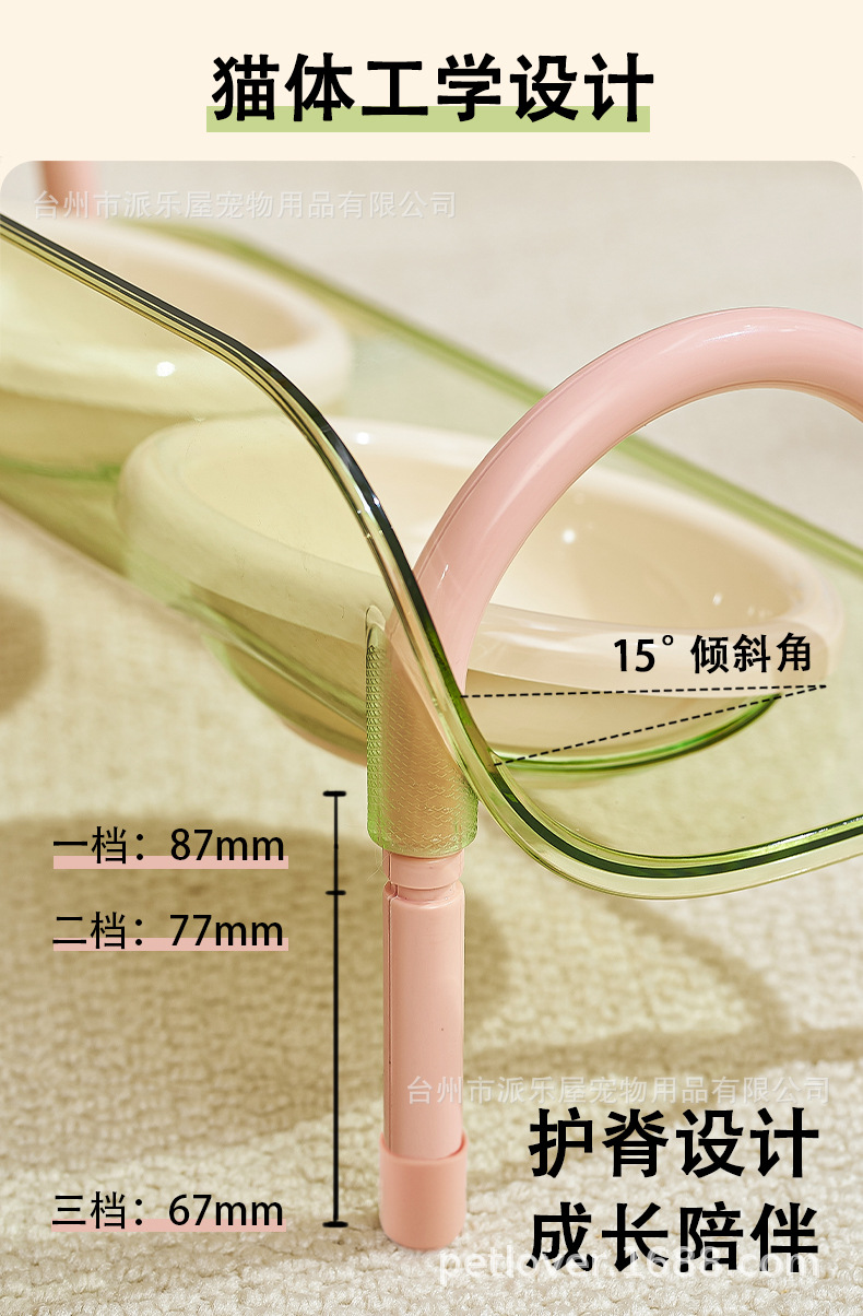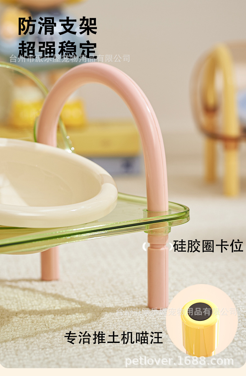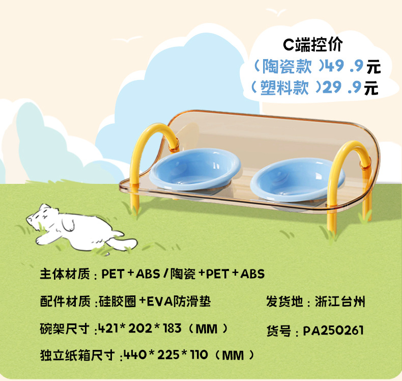 严选宠物陶瓷双碗架子透明爆款宠物用品猫碗狗碗陶瓷碗护颈宠物碗