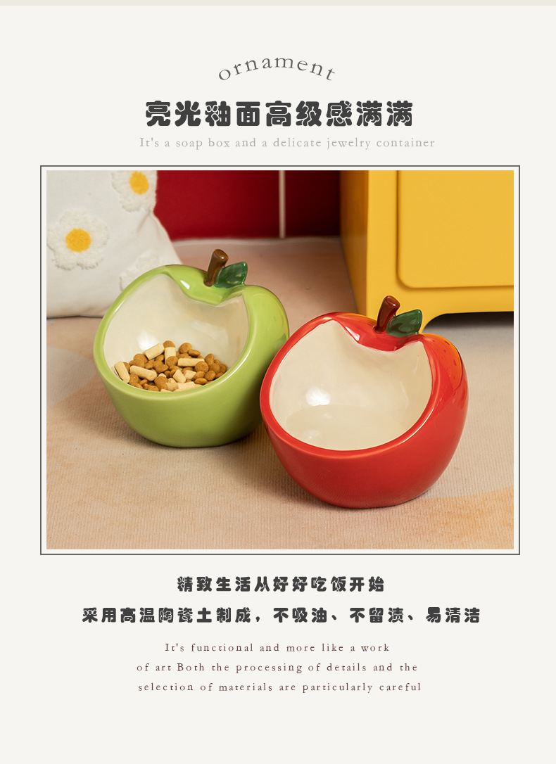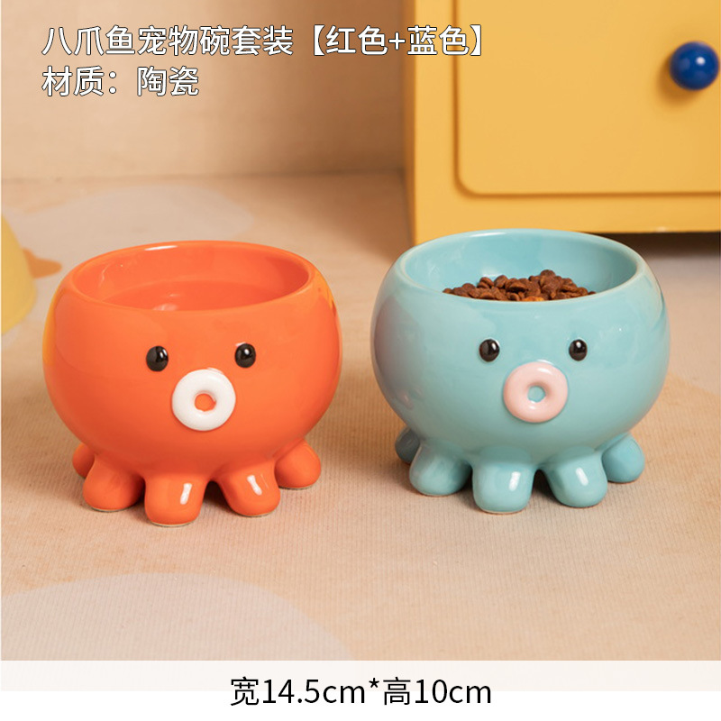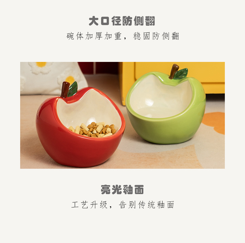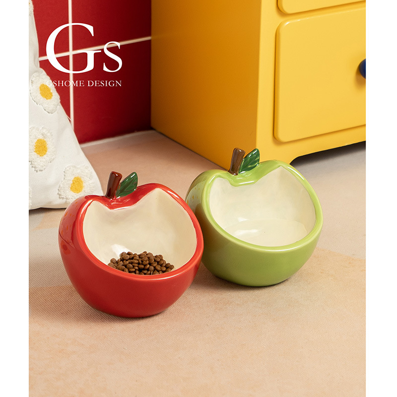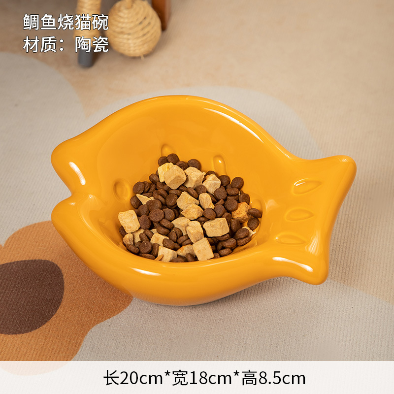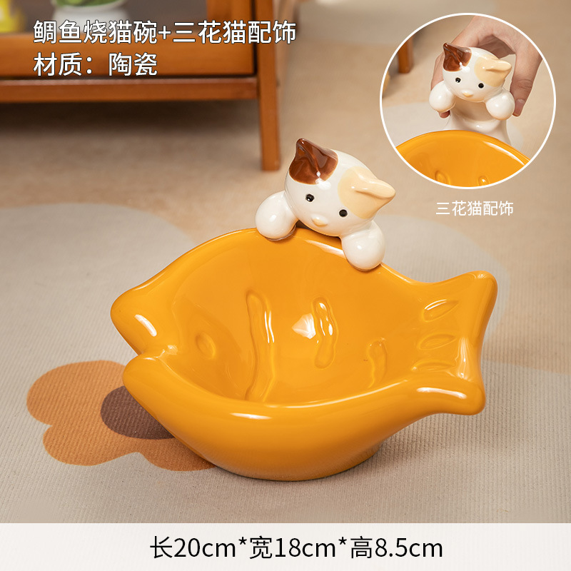 斜口猫碗陶瓷一对保护颈椎不易打翻喝水盆防外溅宠物碗猫咪狗饭碗