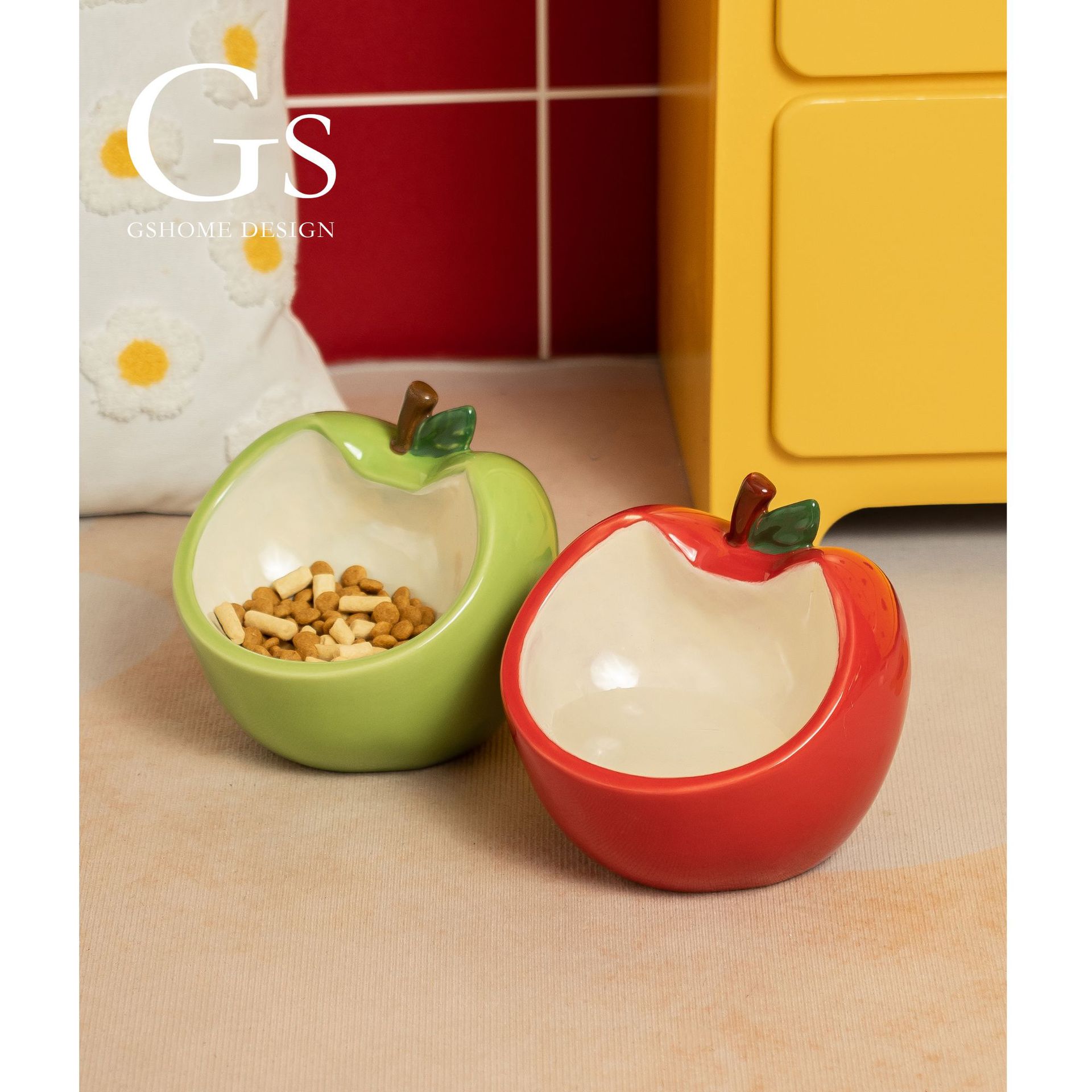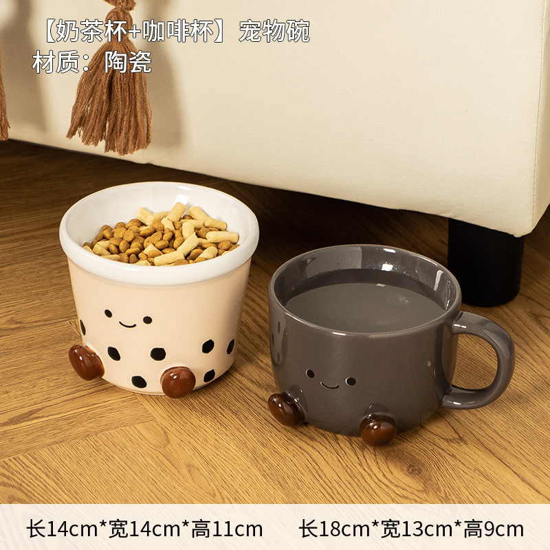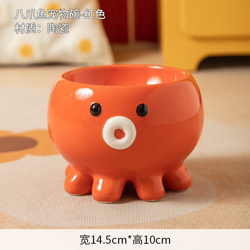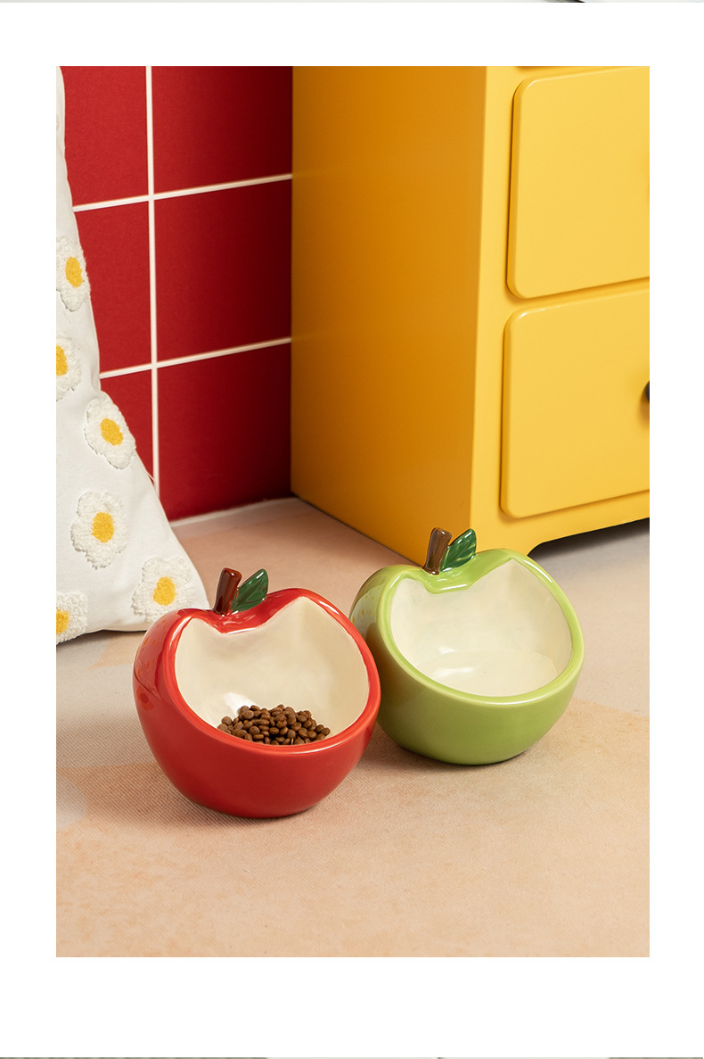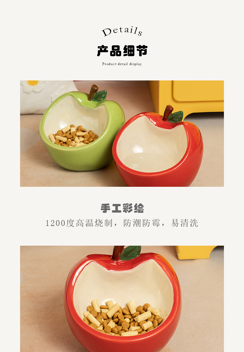 斜口猫碗陶瓷一对保护颈椎不易打翻喝水盆防外溅宠物碗猫咪狗饭碗