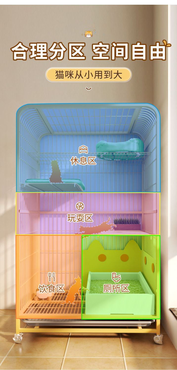 猫笼子猫砂盆一体家用室内超大自由空间猫别墅带厕所不占地猫咪屋