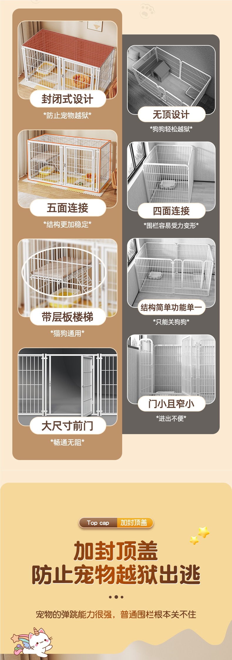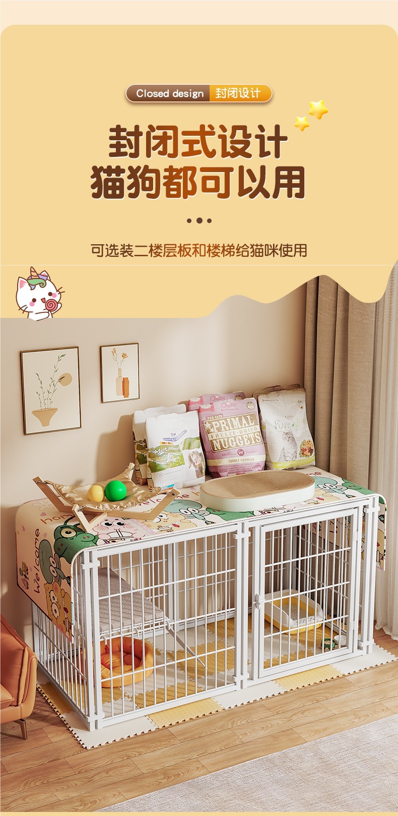 猫笼子家用室内一体猫屋带自由空间宠物鸡狗笼子小户型猫别墅用品