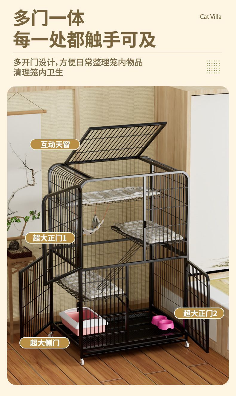 猫笼家用室内超大自由空间特大号猫咪别墅加粗加固猫窝猫屋猫笼子