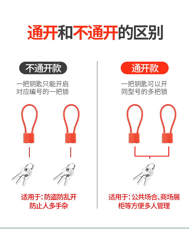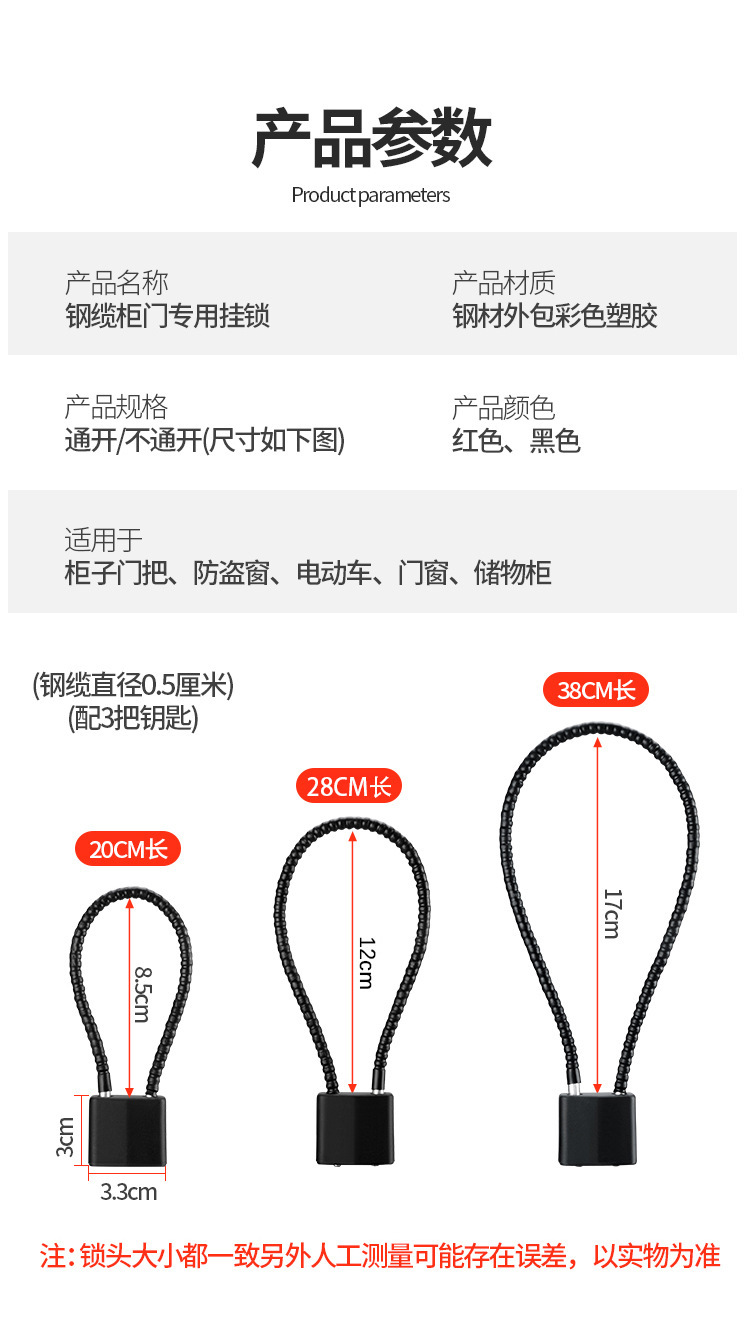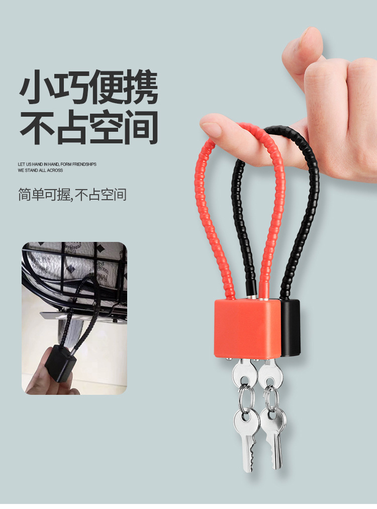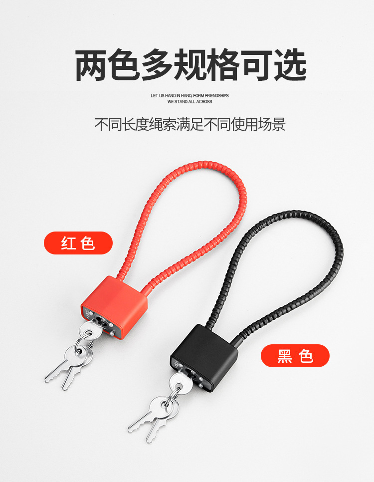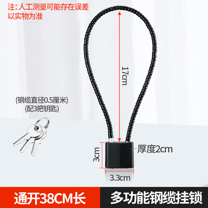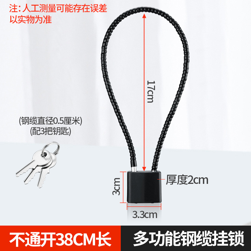 钢丝绳挂锁钢缆防盗柜子锁橱柜文件柜加长挂锁钢丝锁防盗长梁挂锁