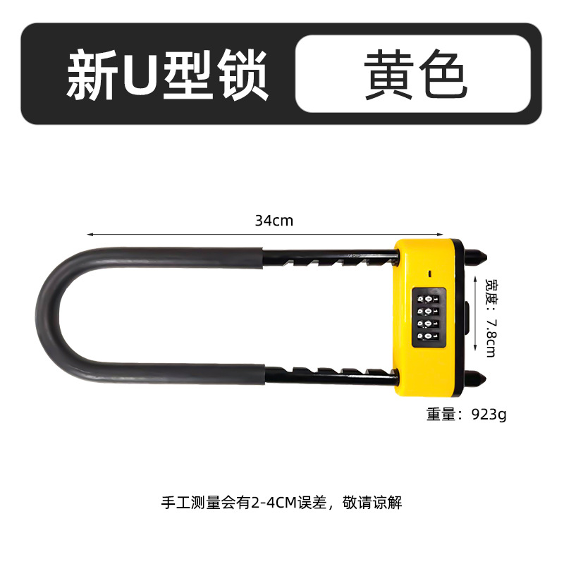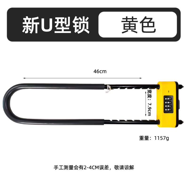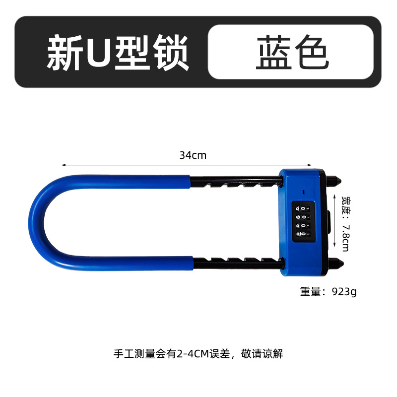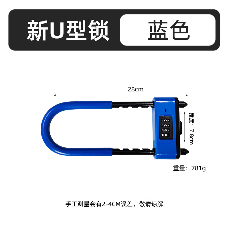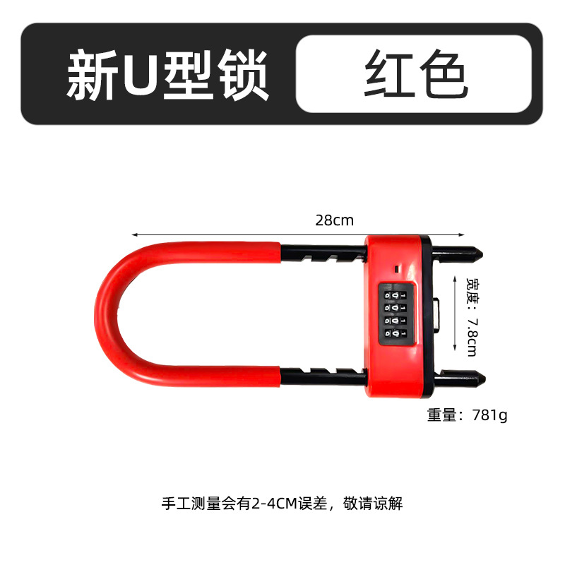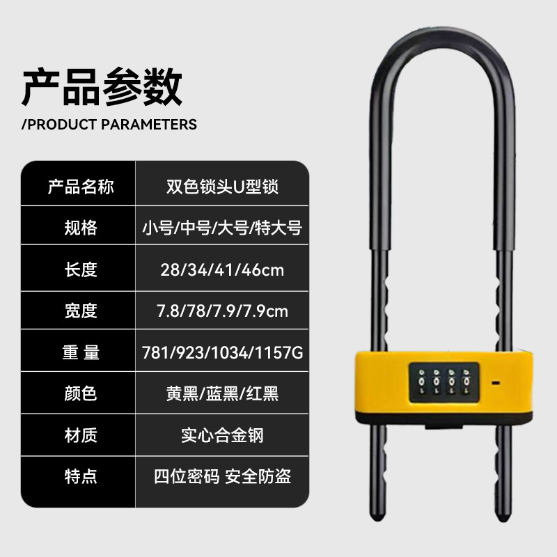新款密码U型锁商铺双开门通用密码插锁防盗密码锁加长加粗U型锁