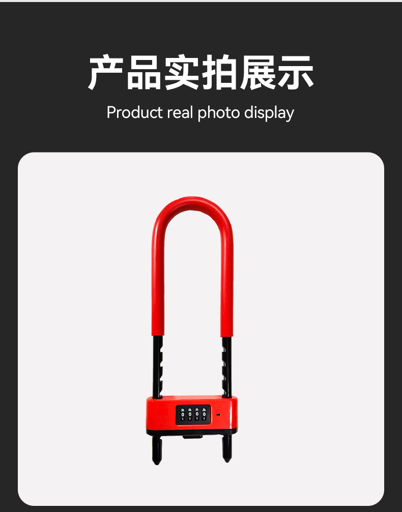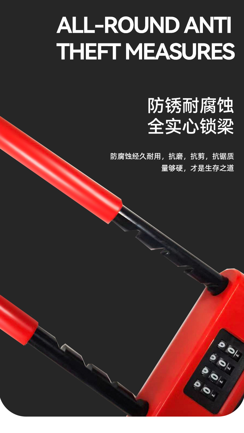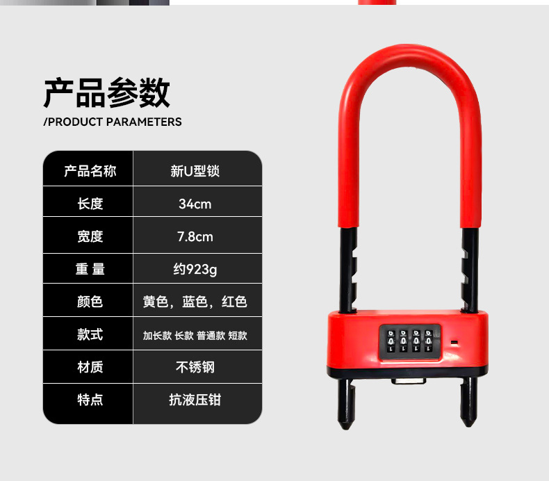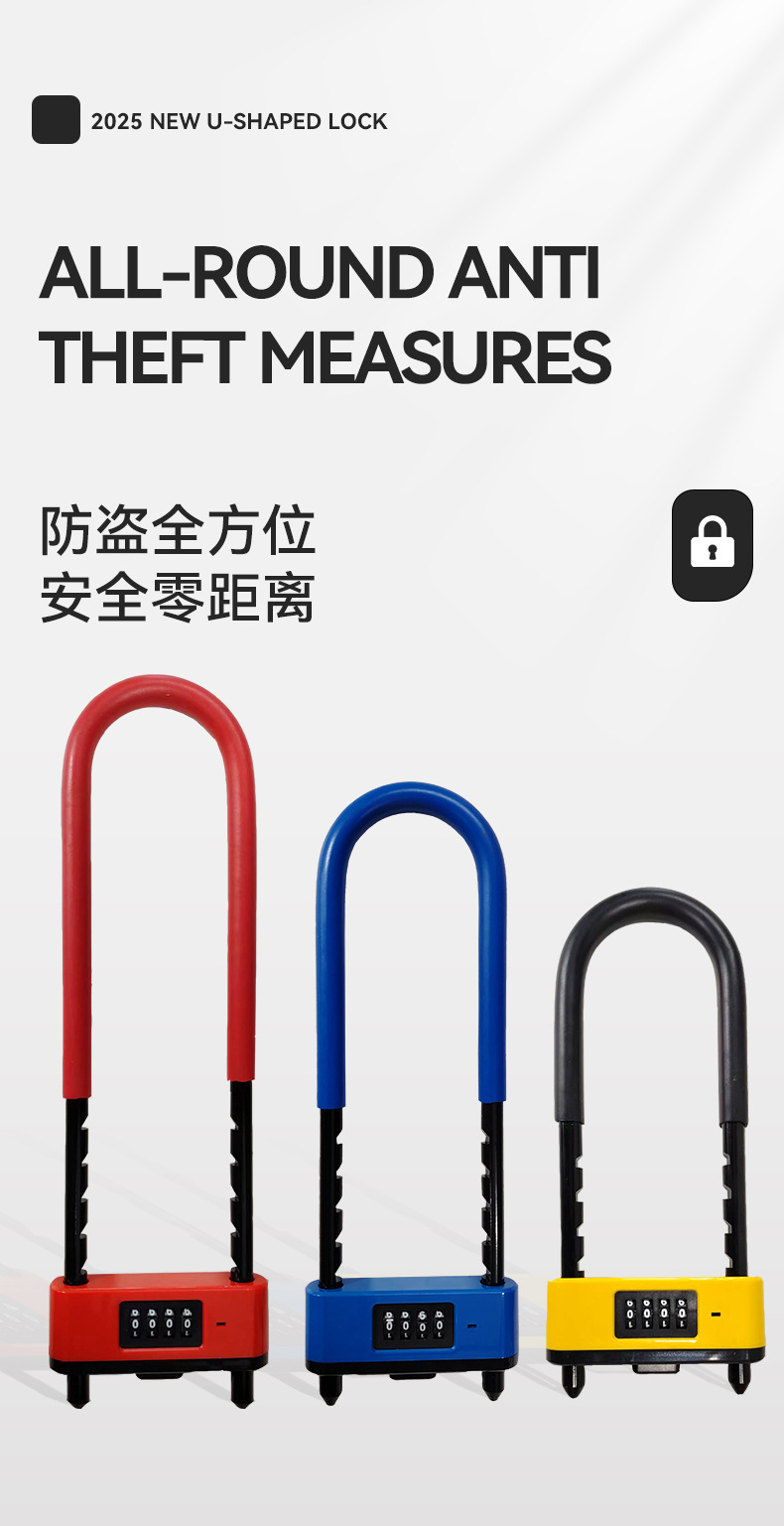 新款密码U型锁商铺双开门通用密码插锁防盗密码锁加长加粗U型锁