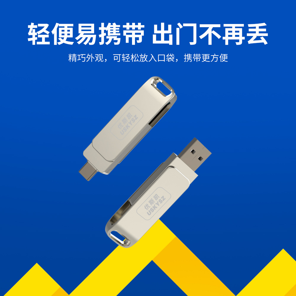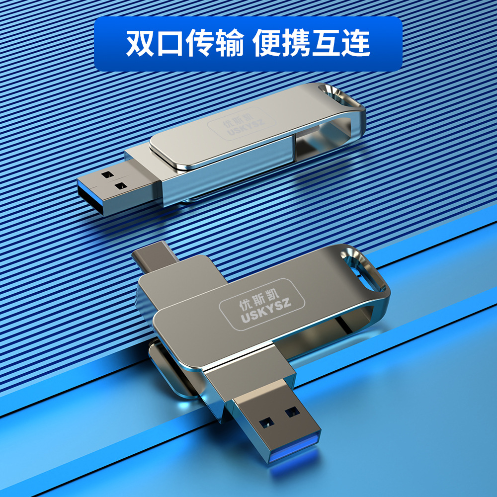 金属旋转优盘定制64GB128GB大容量U盘手机TYPE-C电脑USB双接口U盘