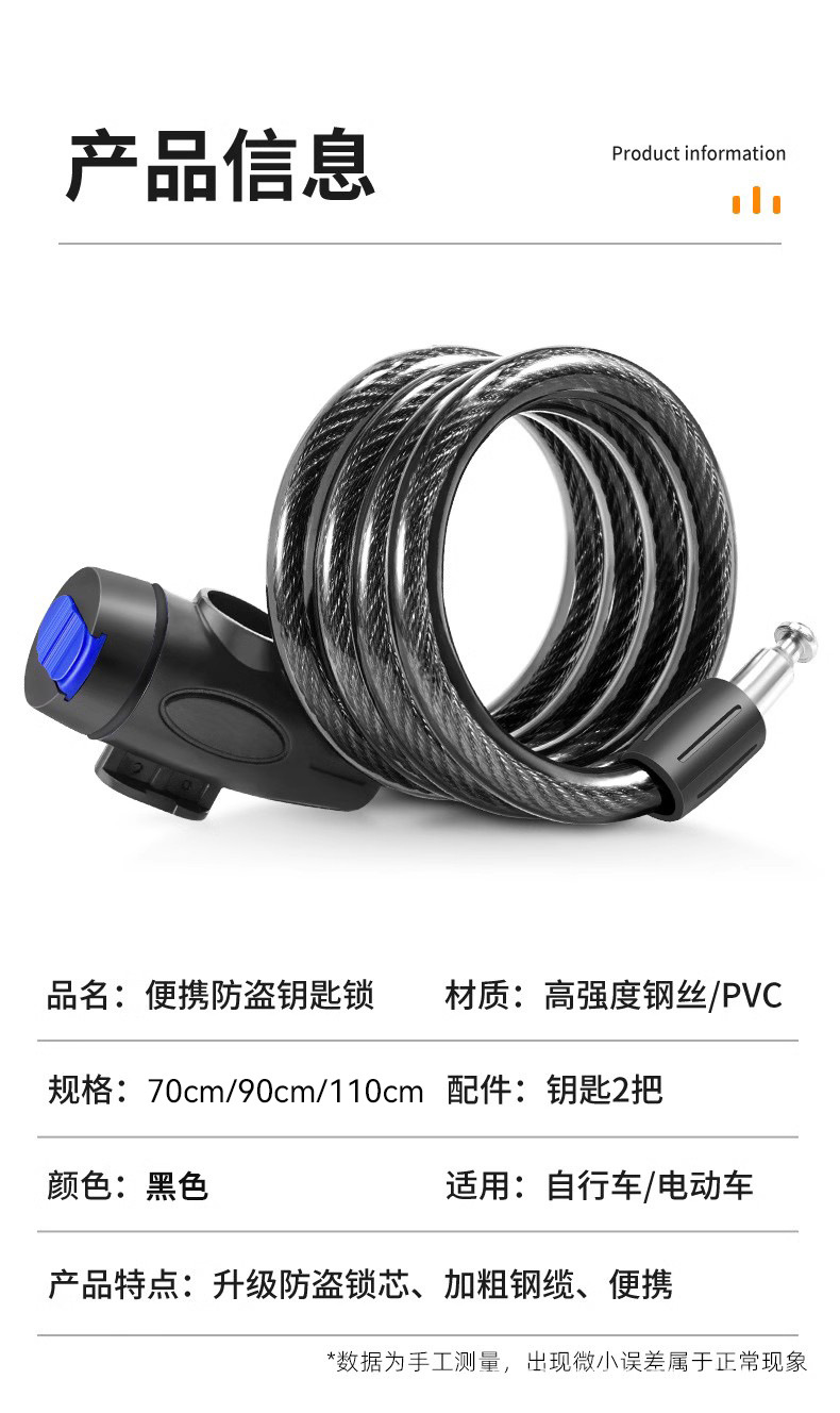 山地自行车锁防盗电动电瓶单车专用钥匙皮圈锁单车配件大全便携锁