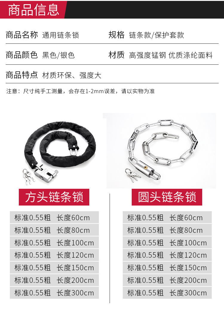 链条锁电动车锁防盗车锁铁链 摩托车自行车锁加长链子锁玻璃门锁