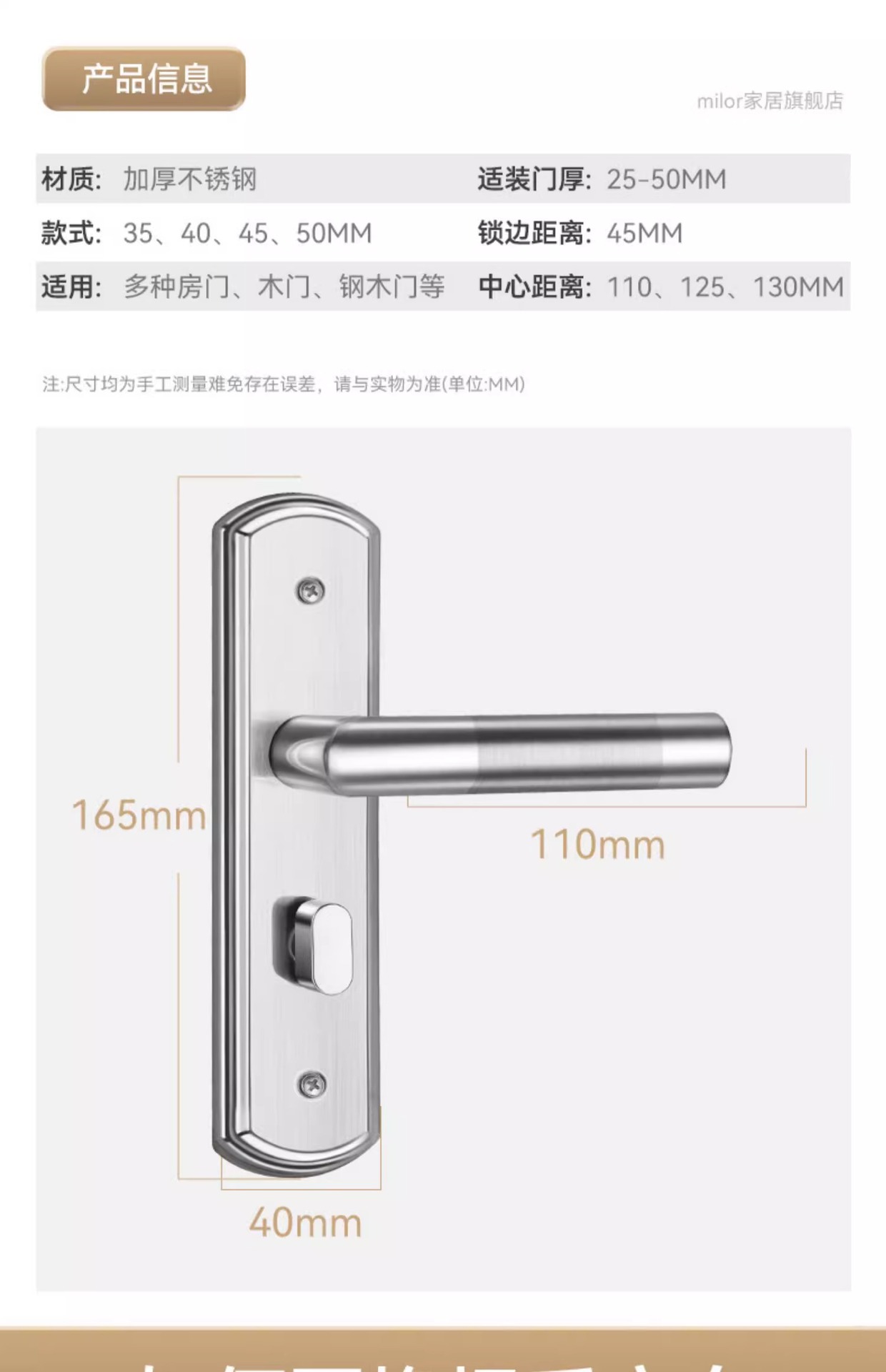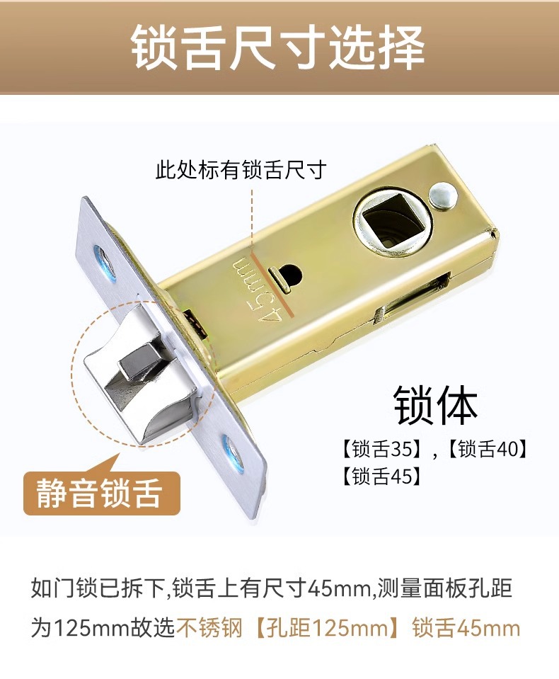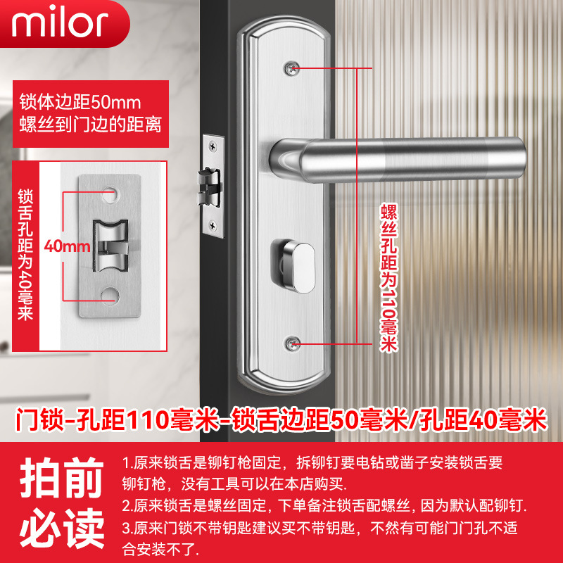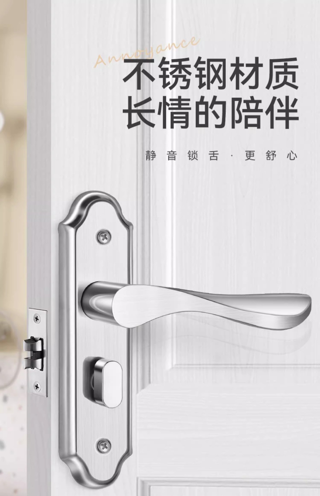 卫生间门锁通用型厕所浴室洗手间门把手铝合金执手单舌家用无钥匙