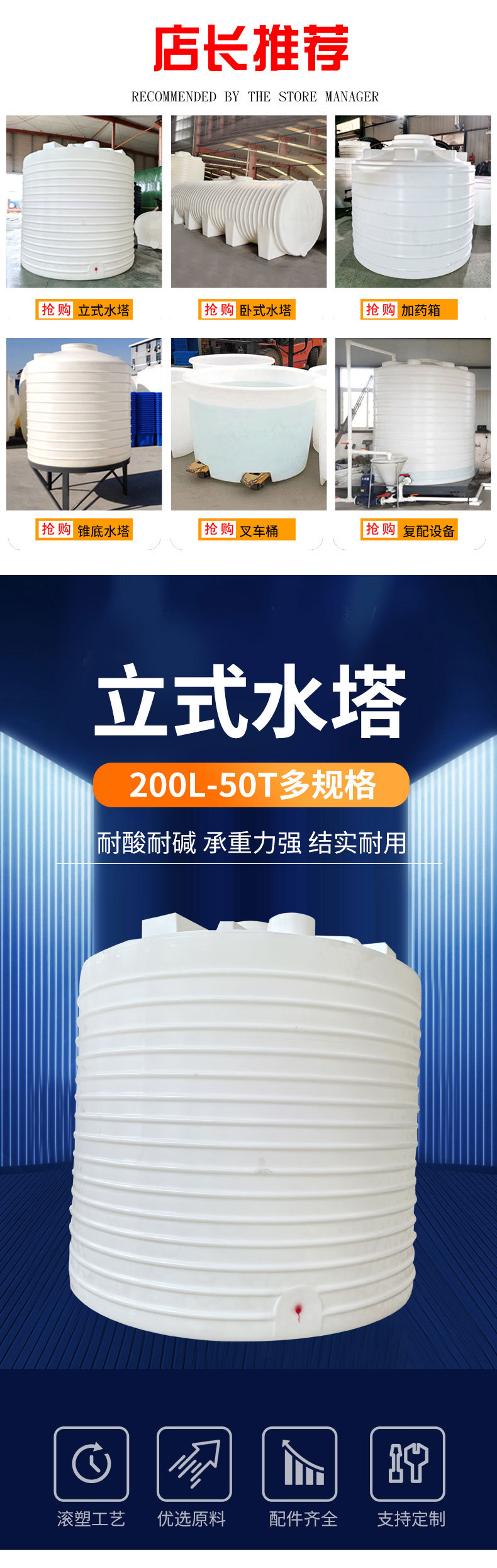20吨塑料水塔户外塑料储水罐 30吨工地储水桶10吨储罐立式水塔