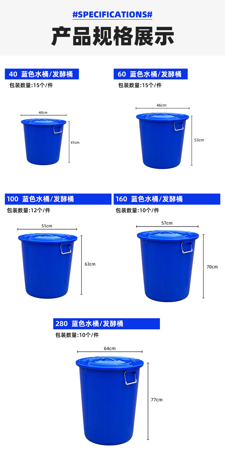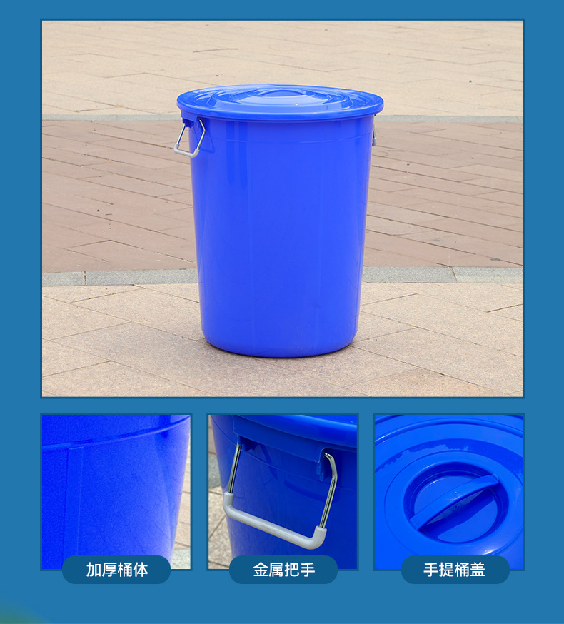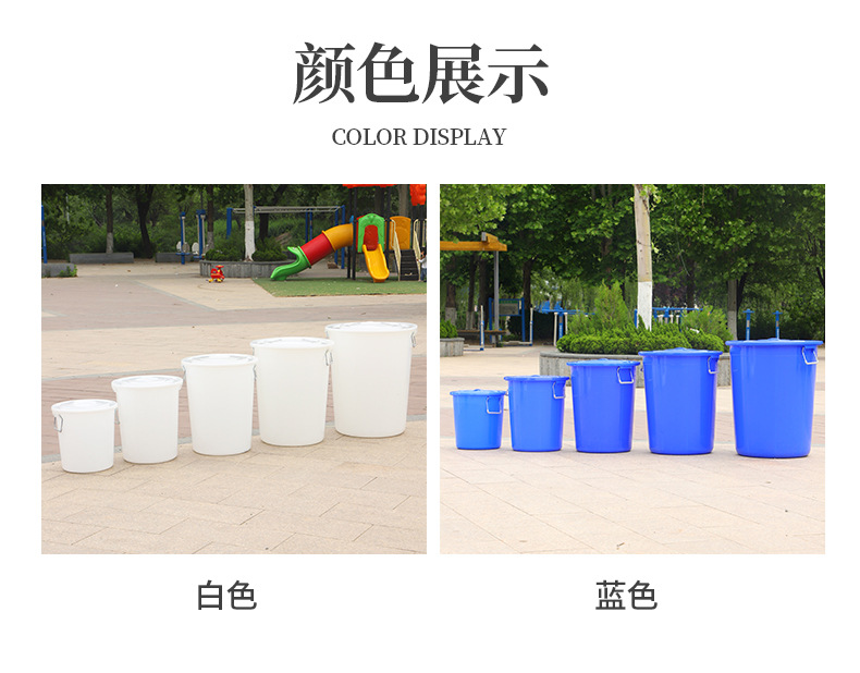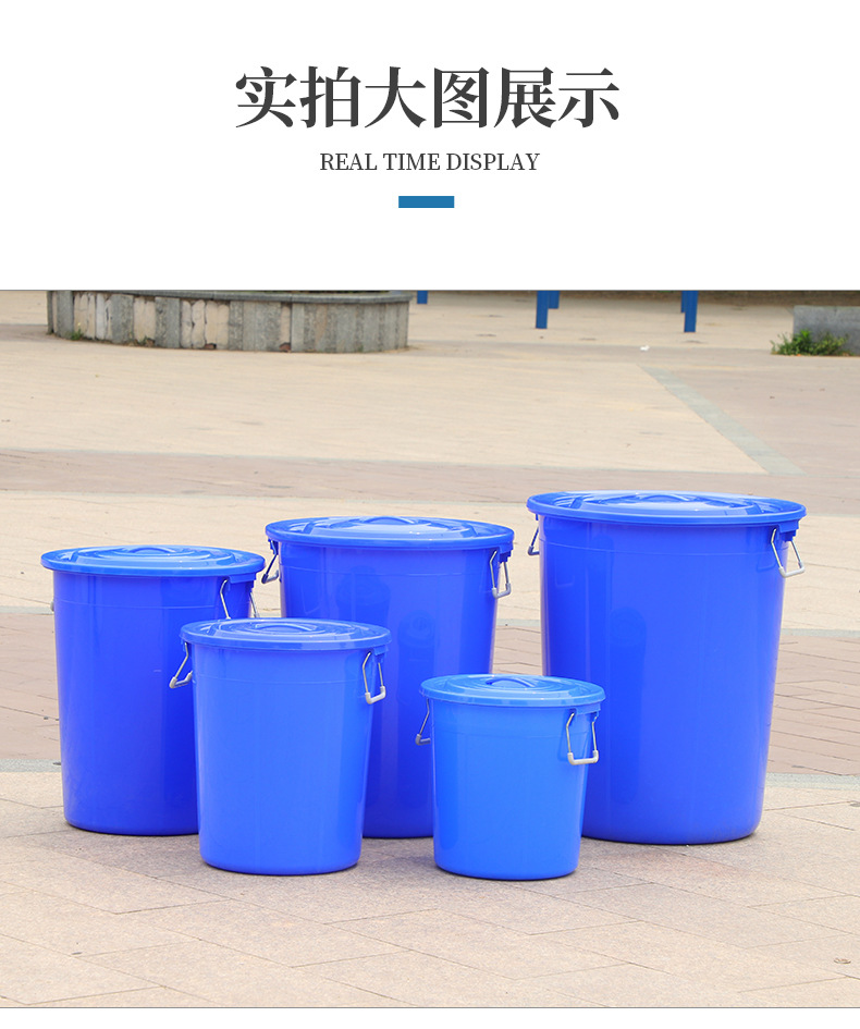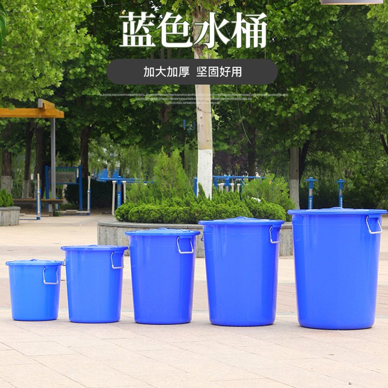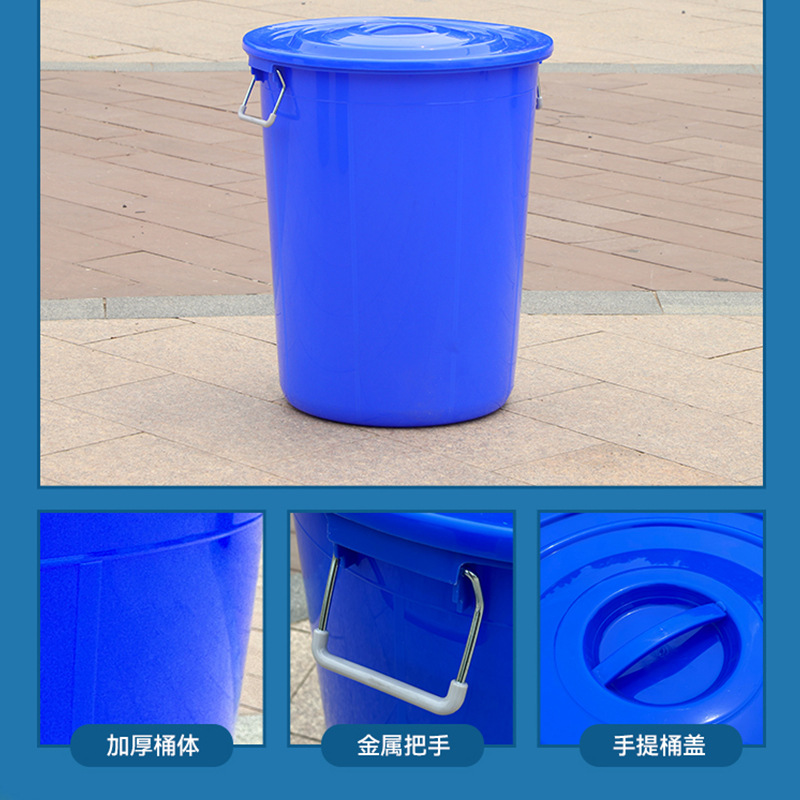 加厚铁柄塑料水桶带盖大容量储水桶多规格家用储物户外发酵圆桶
