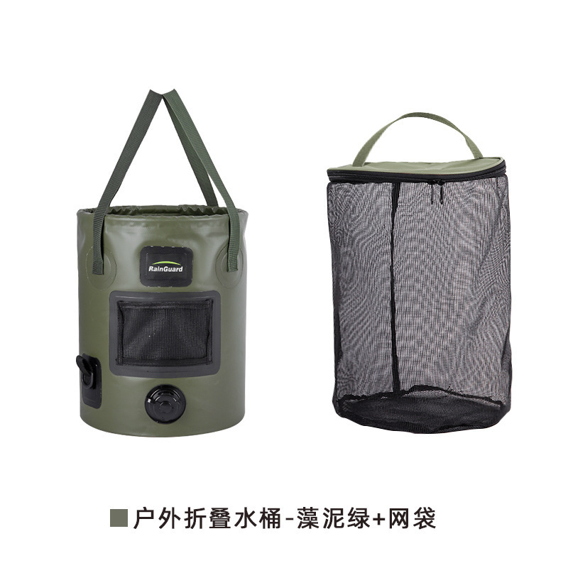 户外折叠水桶便携式水桶带阀门桶野营带盖大容量圆形手提桶钓鱼桶