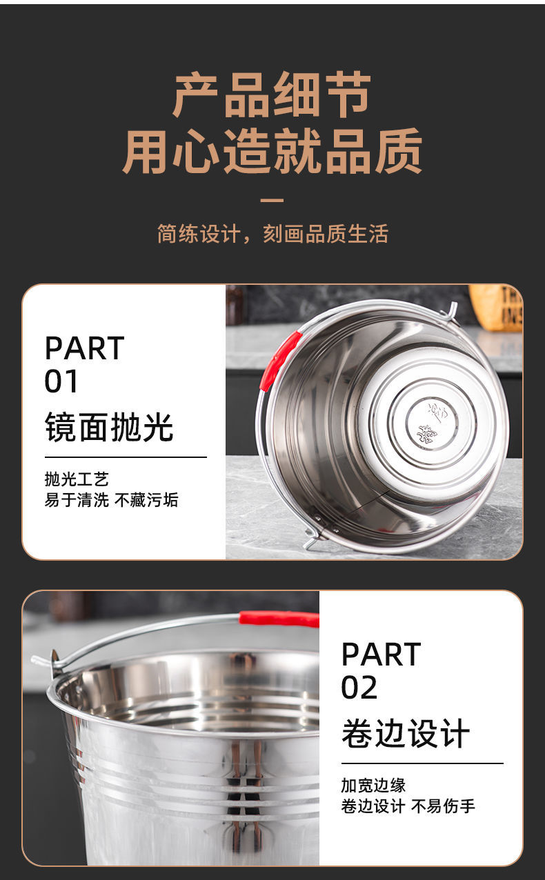 不锈钢水桶储水桶水桶手提洗衣桶蓄水桶家用冰桶小桶带提手小水桶