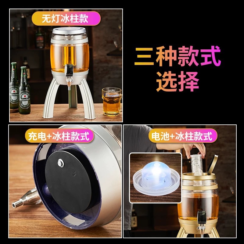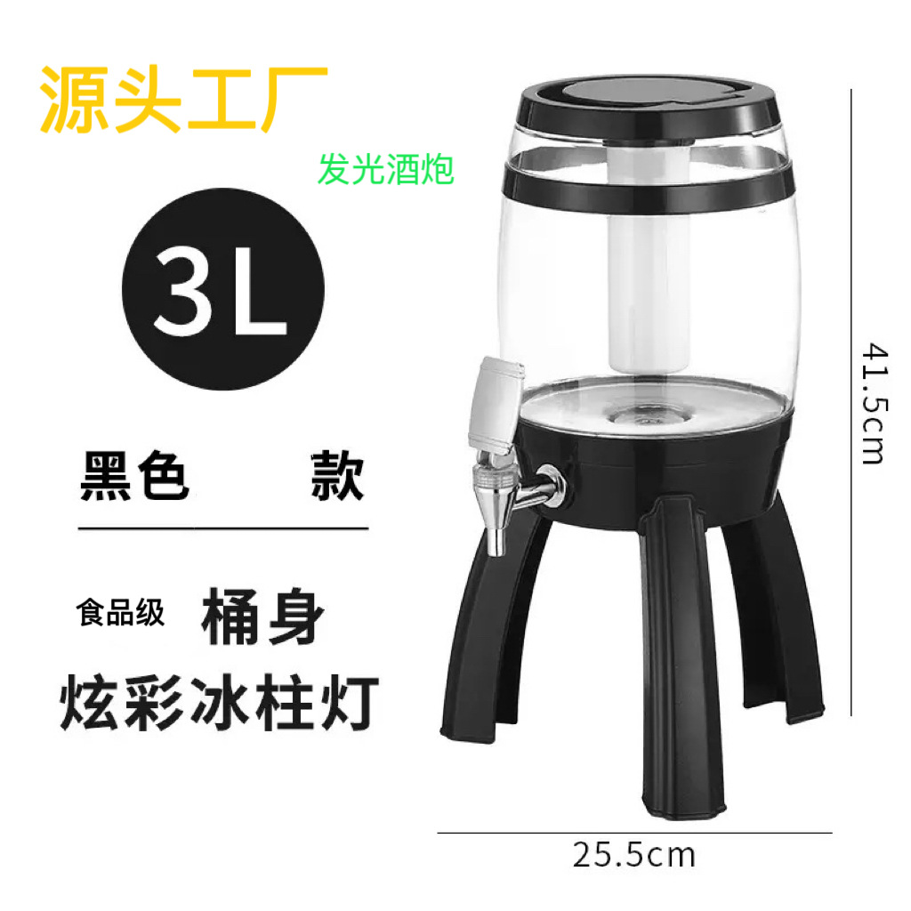 新款橡木桶3升酒炮 黑色发光酒炮啤酒塔酒具 专用网红扎啤分酒器