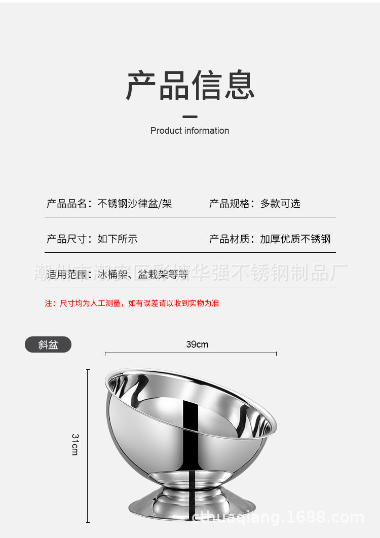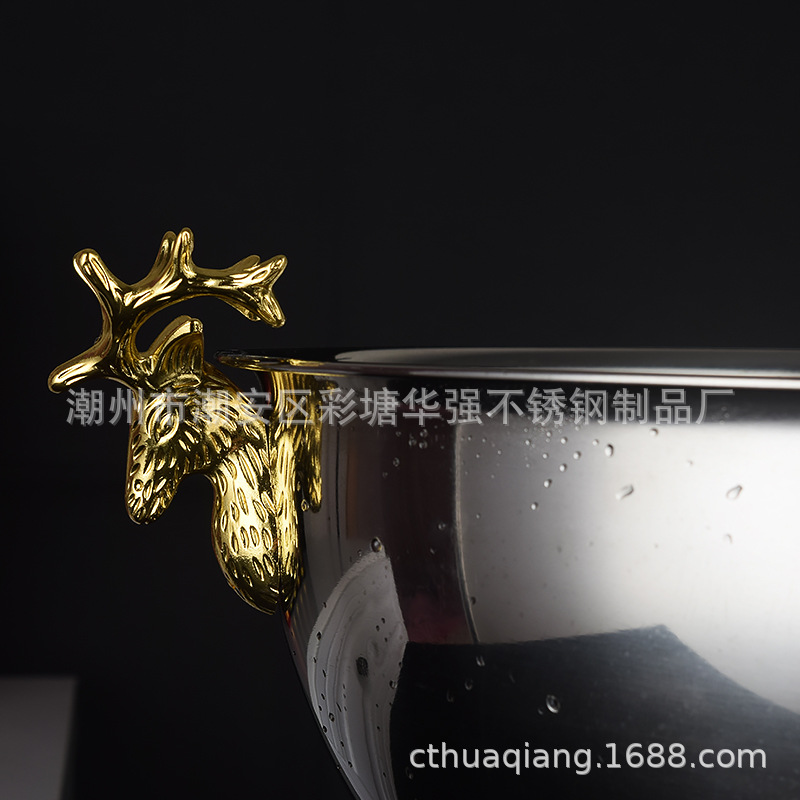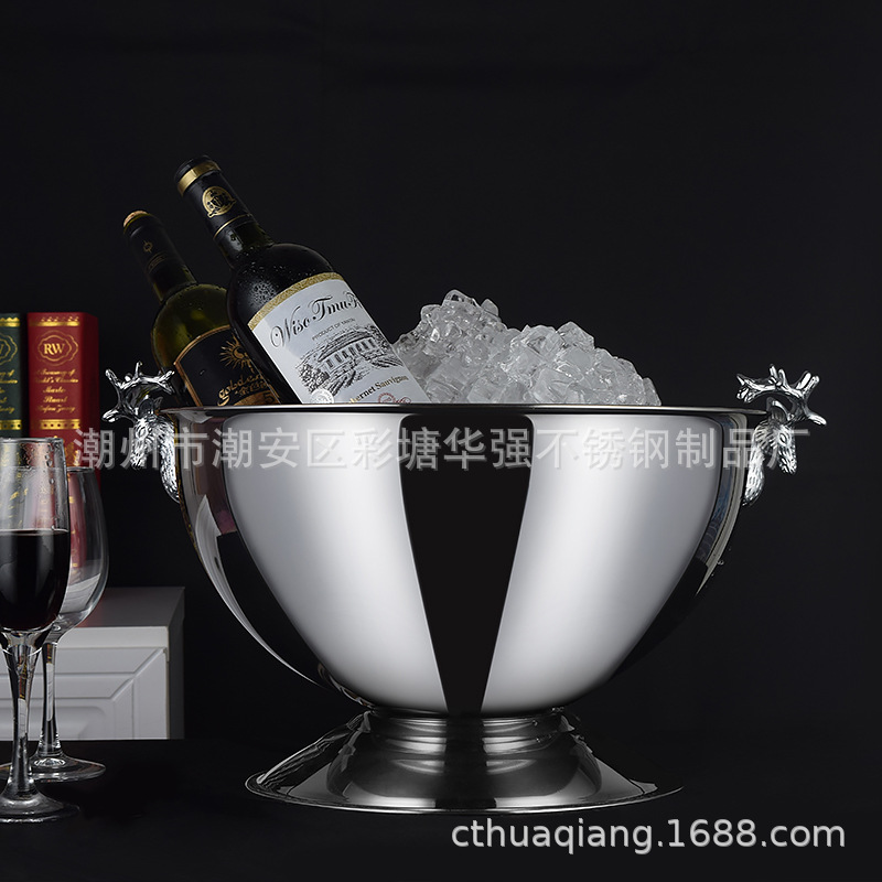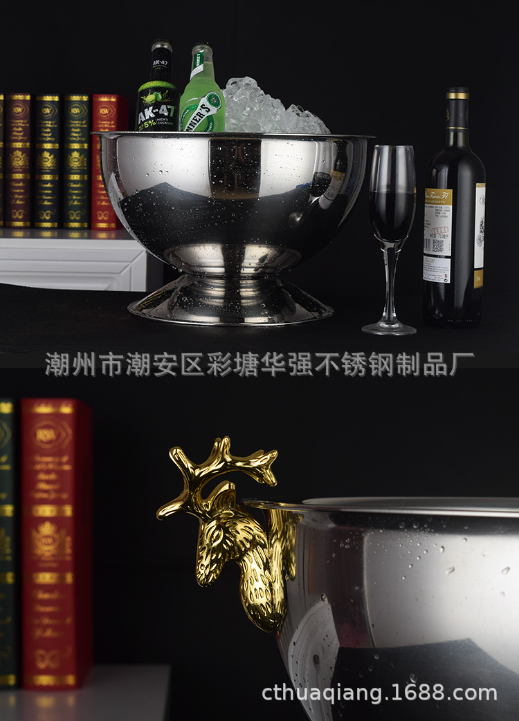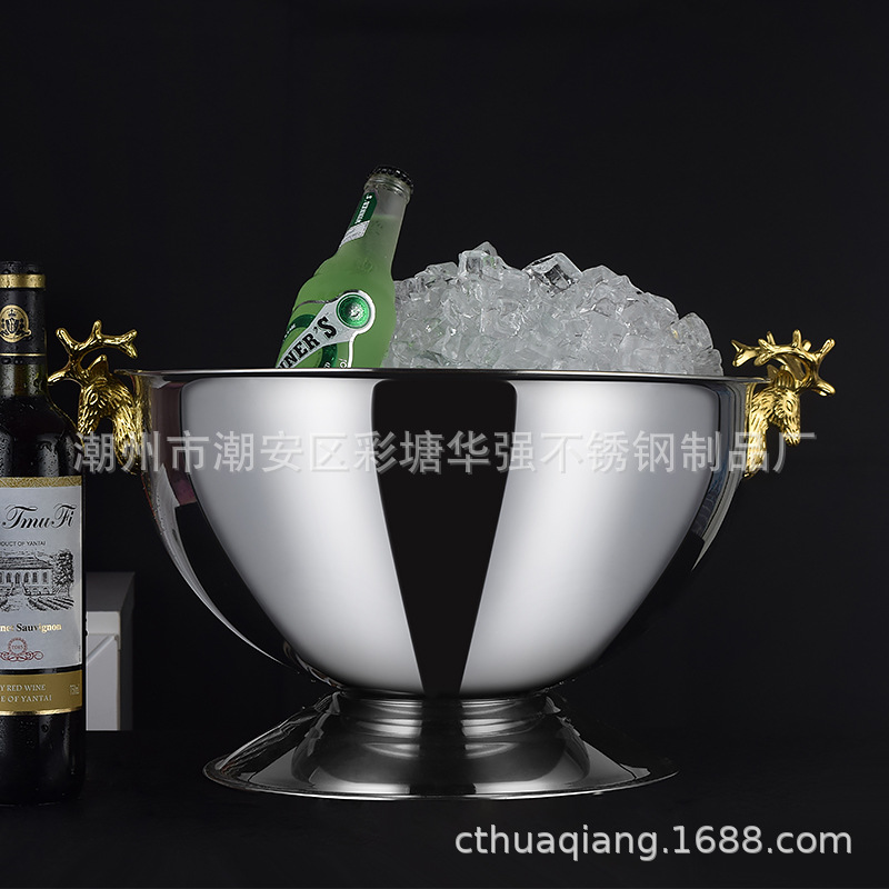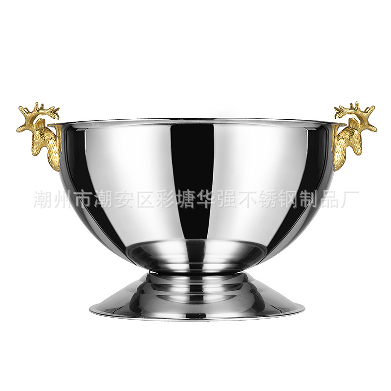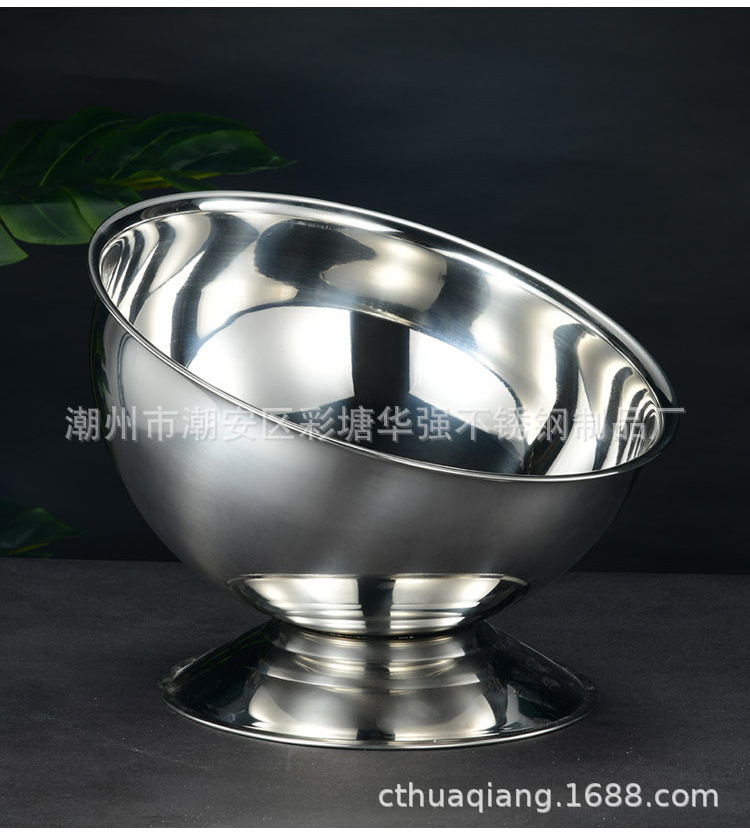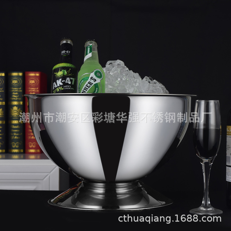 厂家批发不锈钢304果盆海鲜盆啤酒盆大容量斜口盆冰镇冰块手提