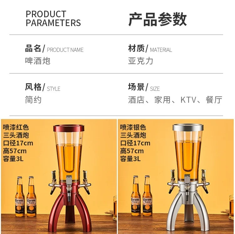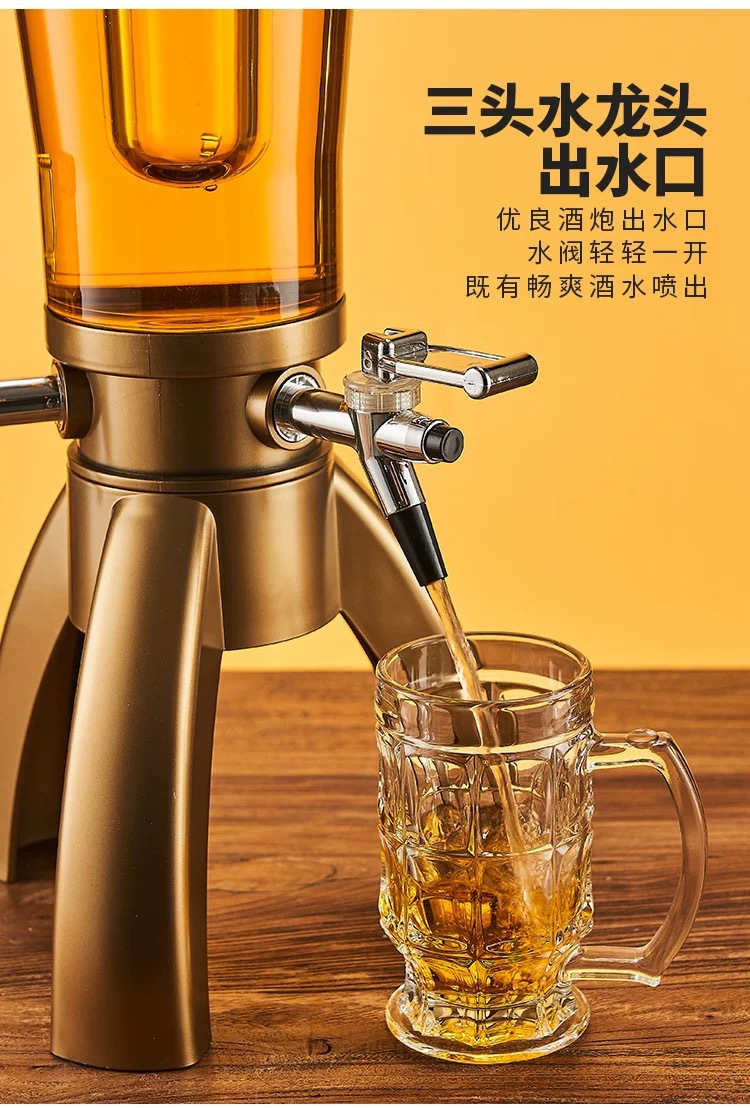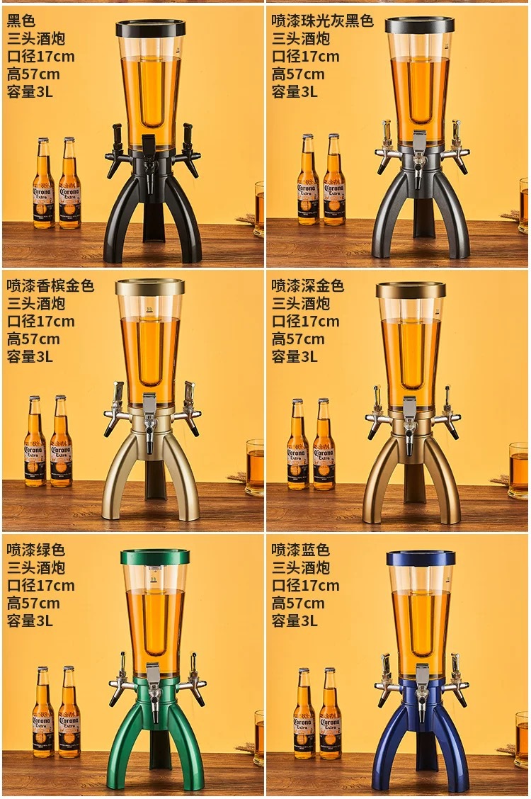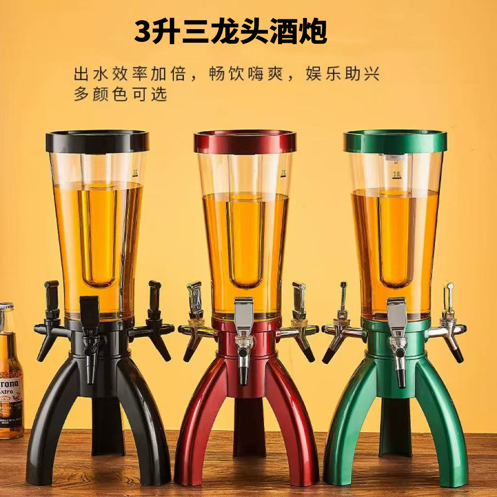 网红三头酒炮三龙头啤酒分配器扎啤酒炮商用创意可乐桶厂家直销