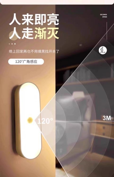 新款长条无线充电人体感应灯条夜间自动亮灯走廊过道氛围小夜灯