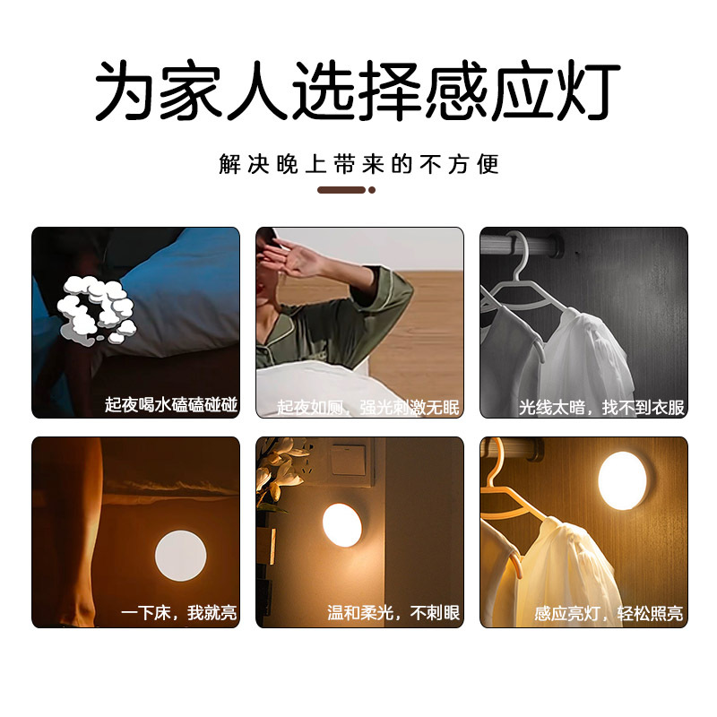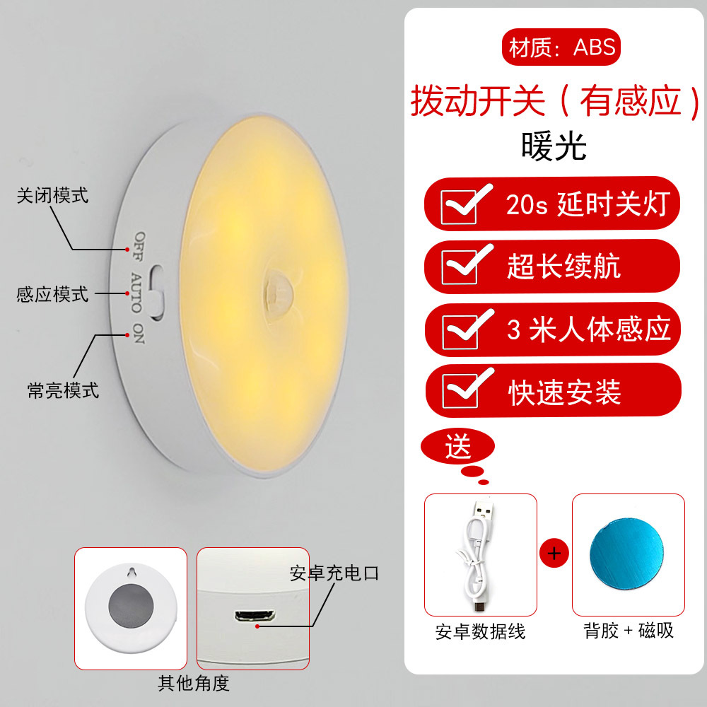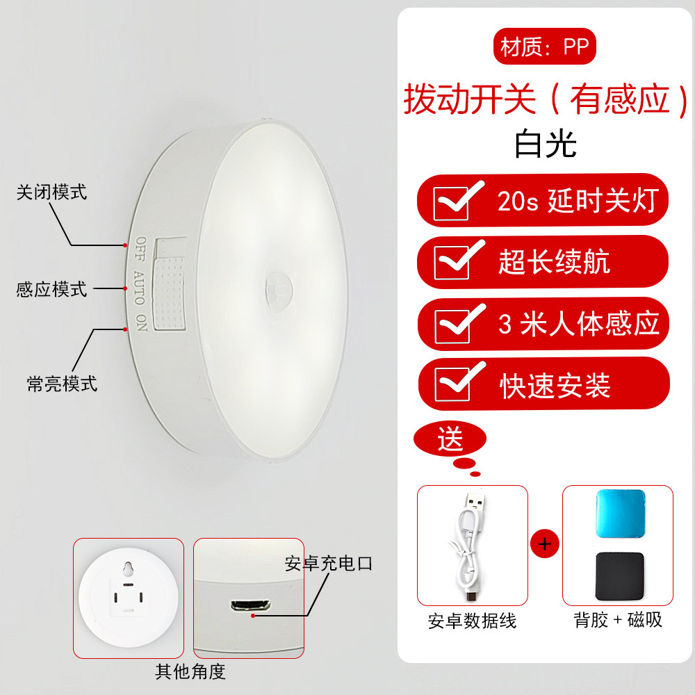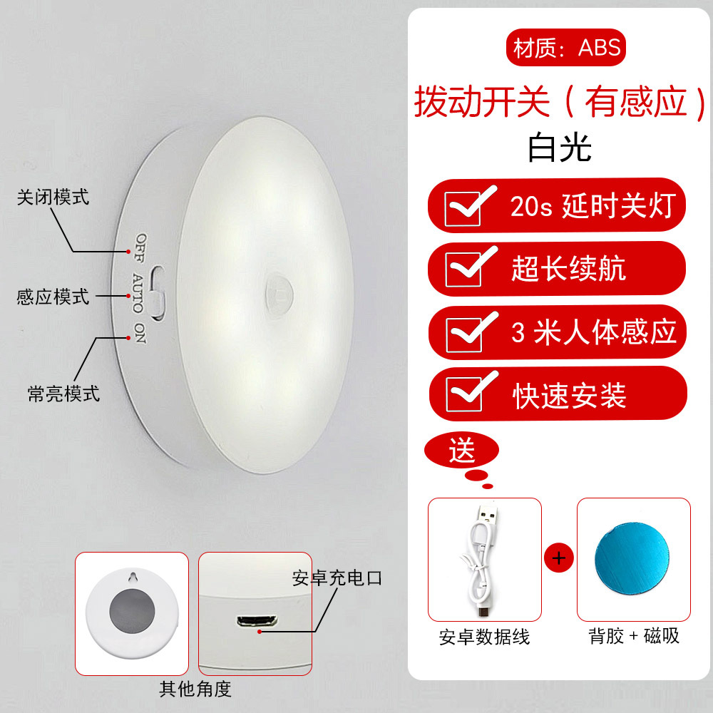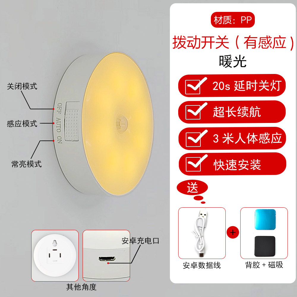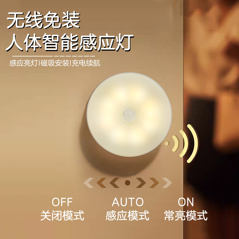 led小夜灯人体感应灯usb充电智能客厅过道起床宿舍走廊卧室床头灯