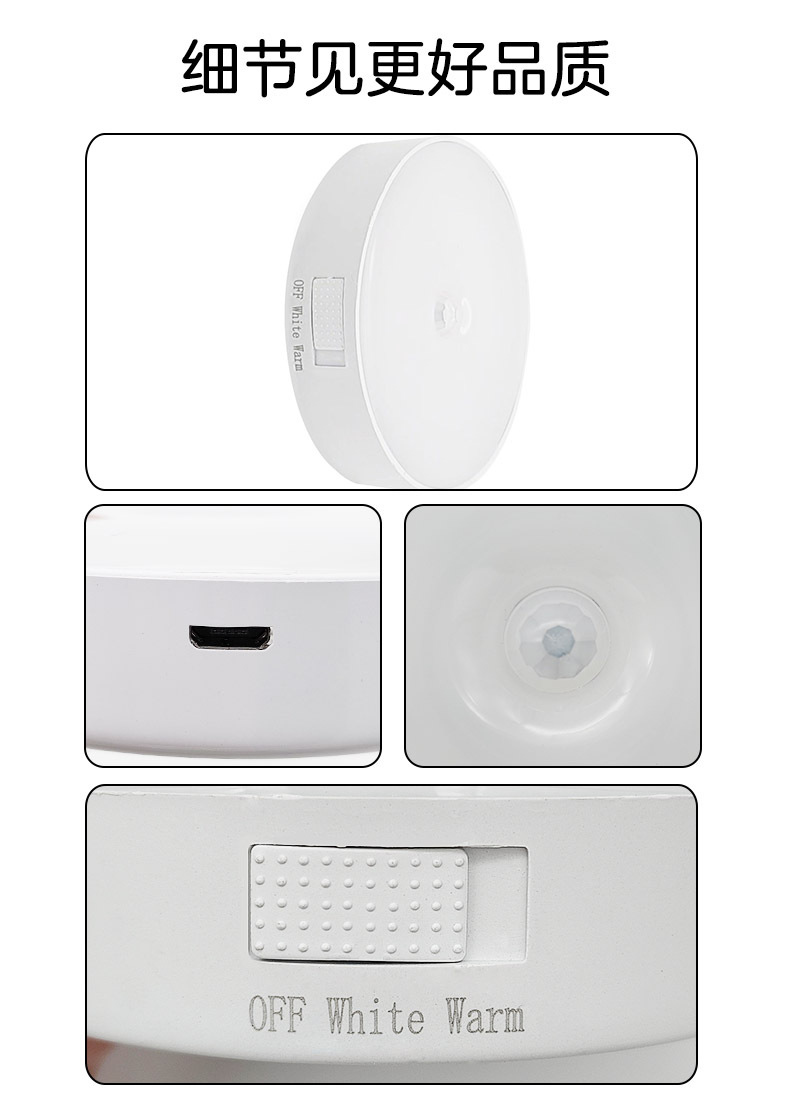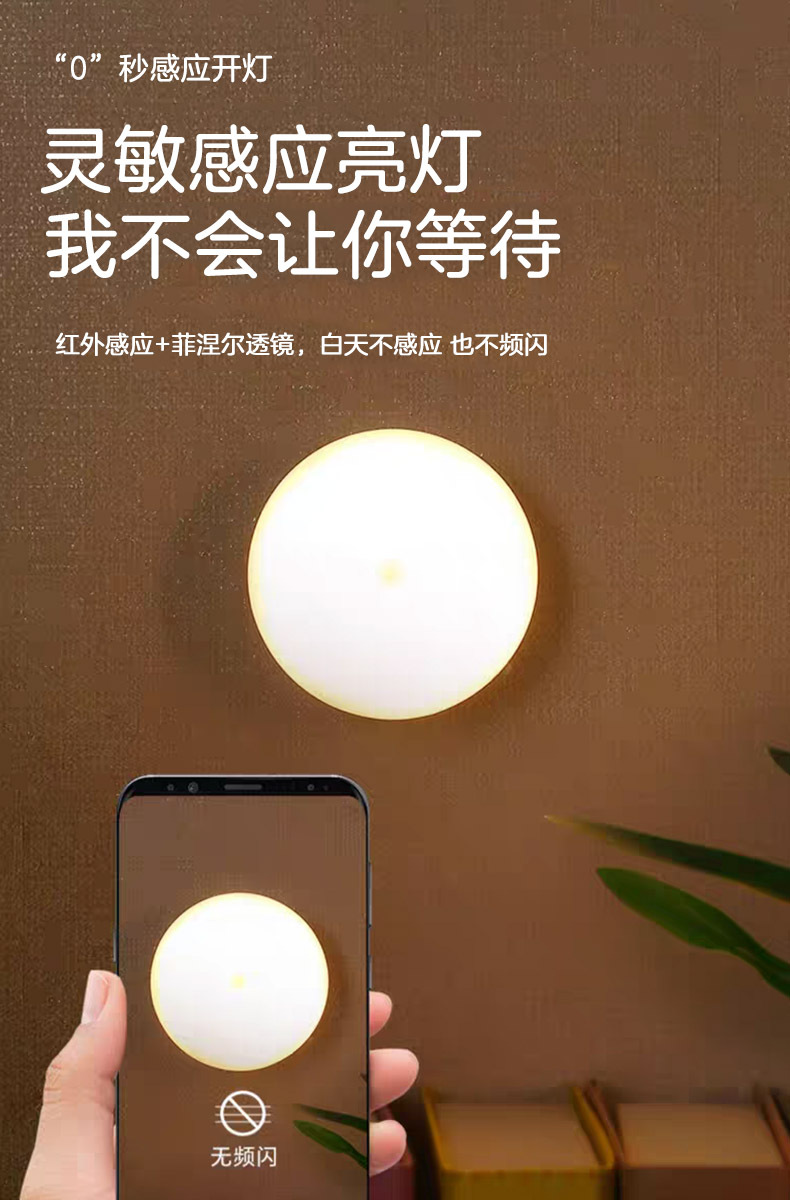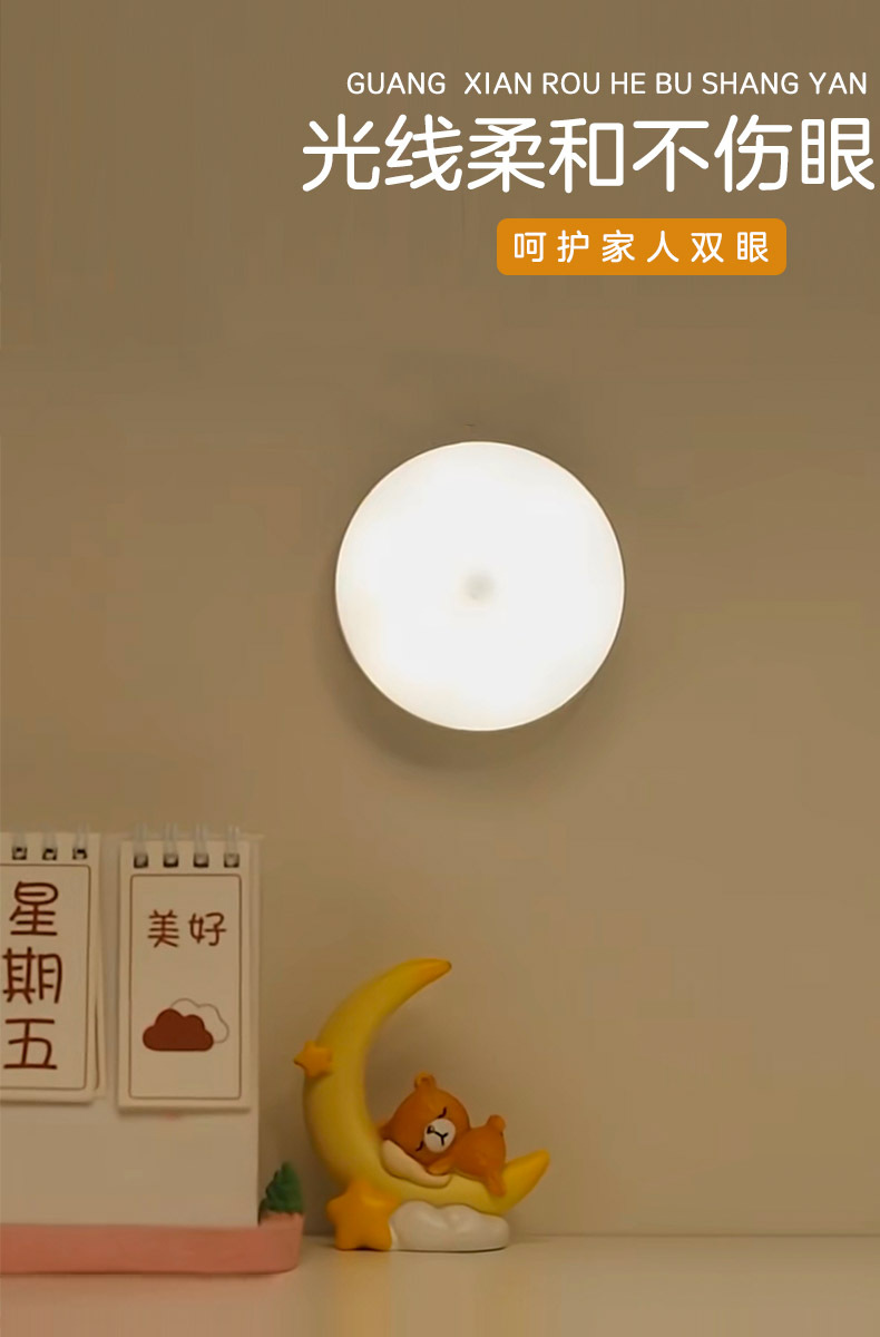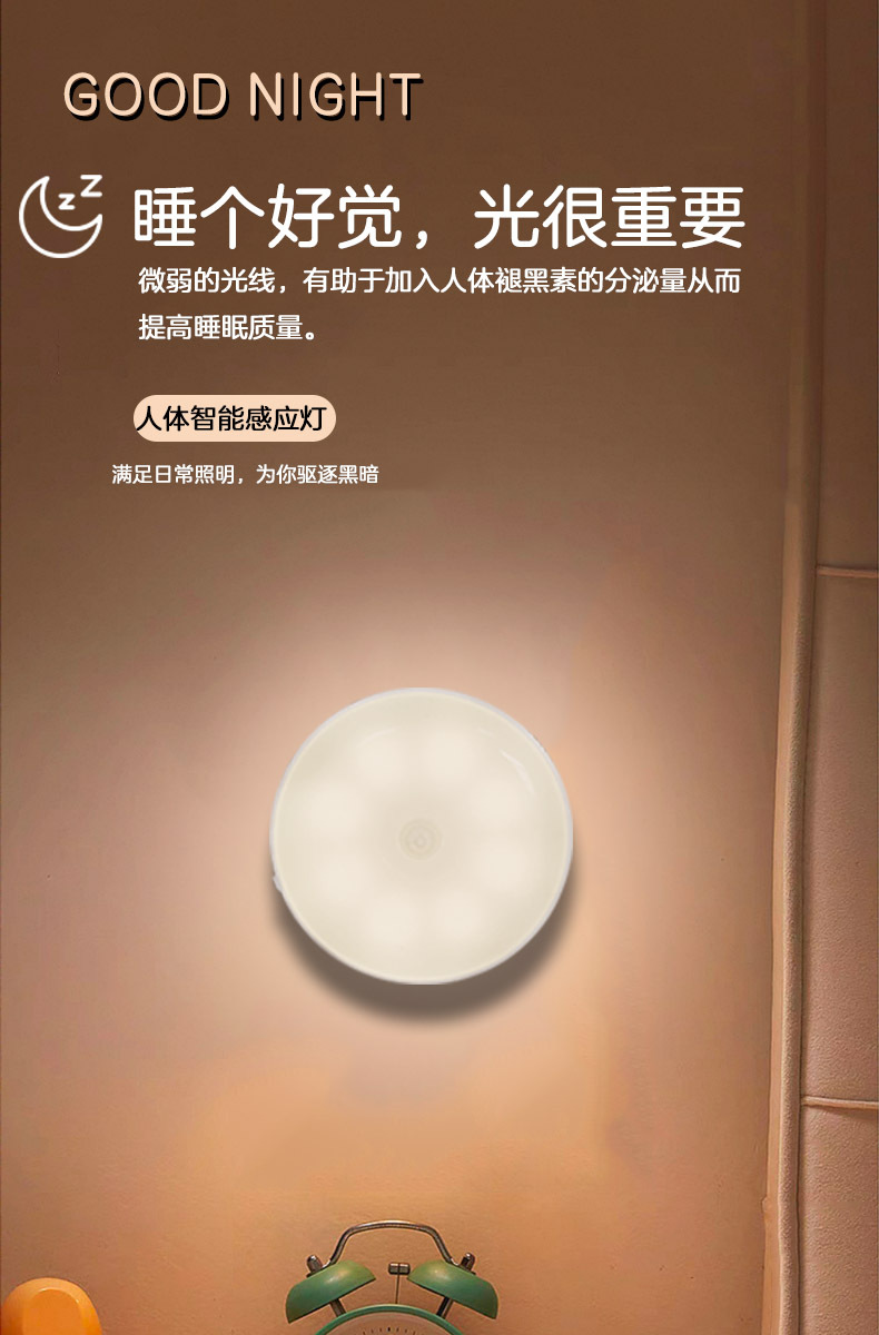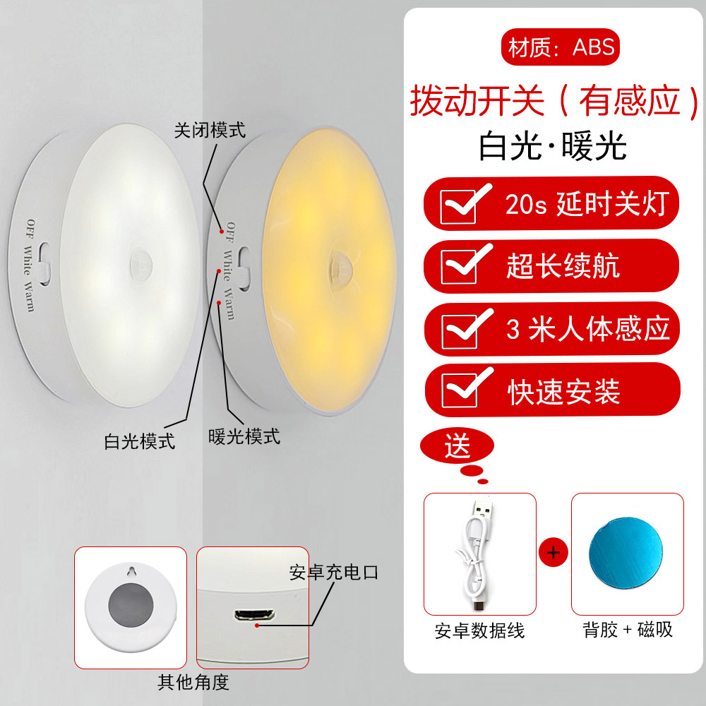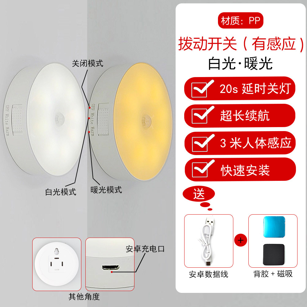 led小夜灯人体感应灯usb充电智能客厅过道起床宿舍走廊卧室床头灯