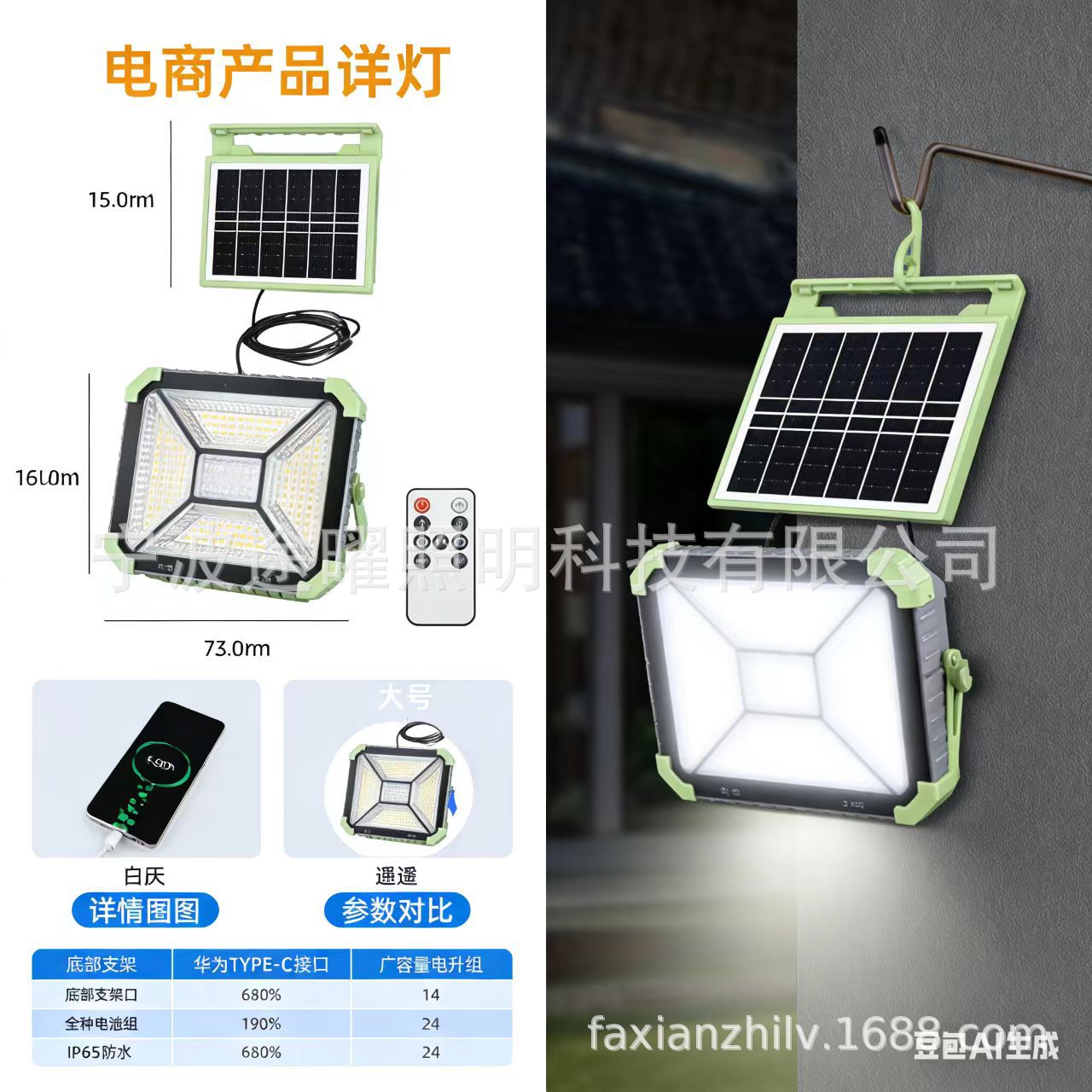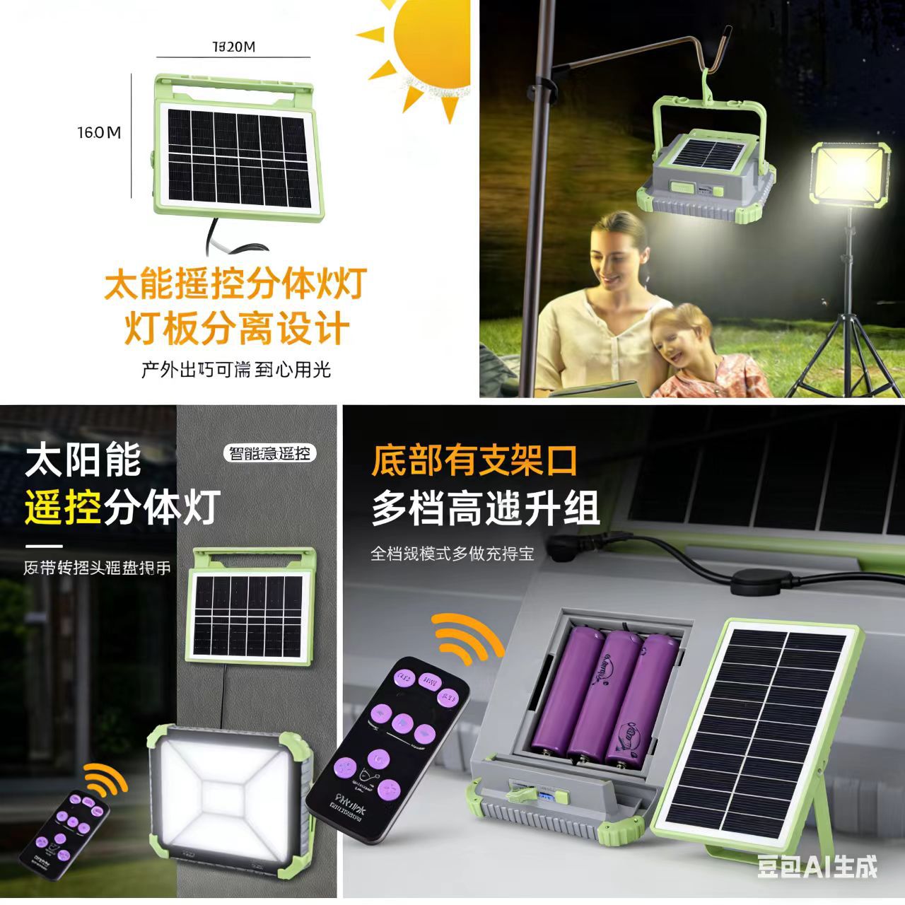 太阳能手提灯充电投光灯超亮家用夜市地摊灯户外多功能露营应急灯