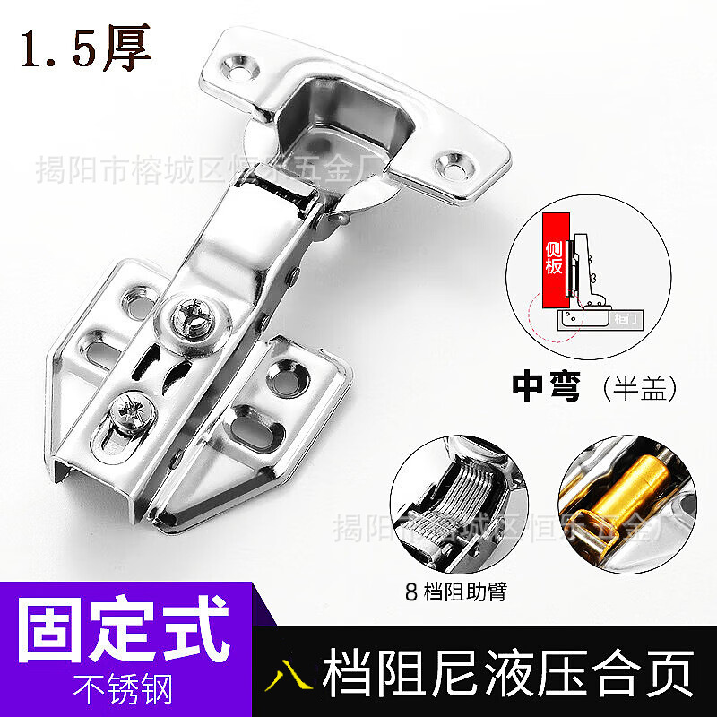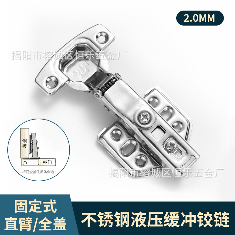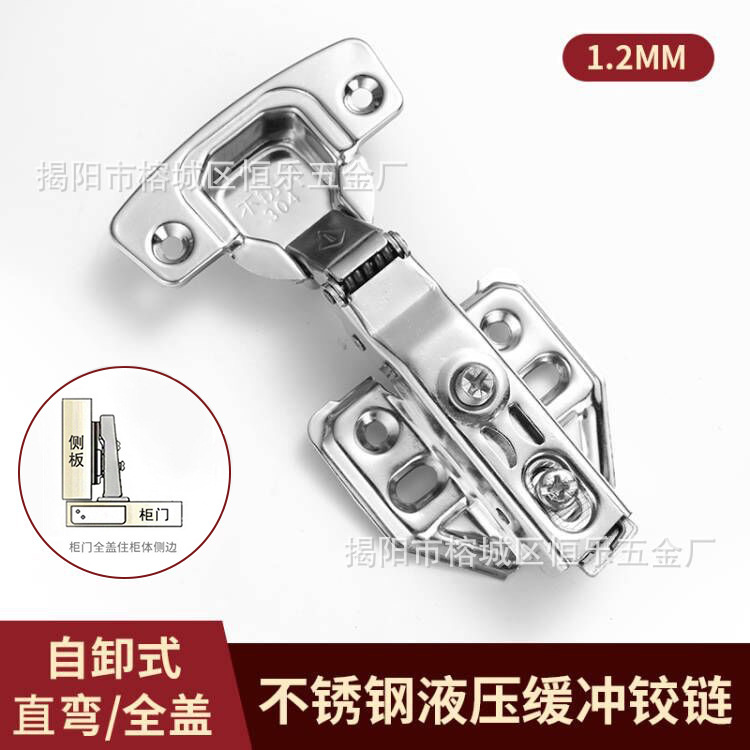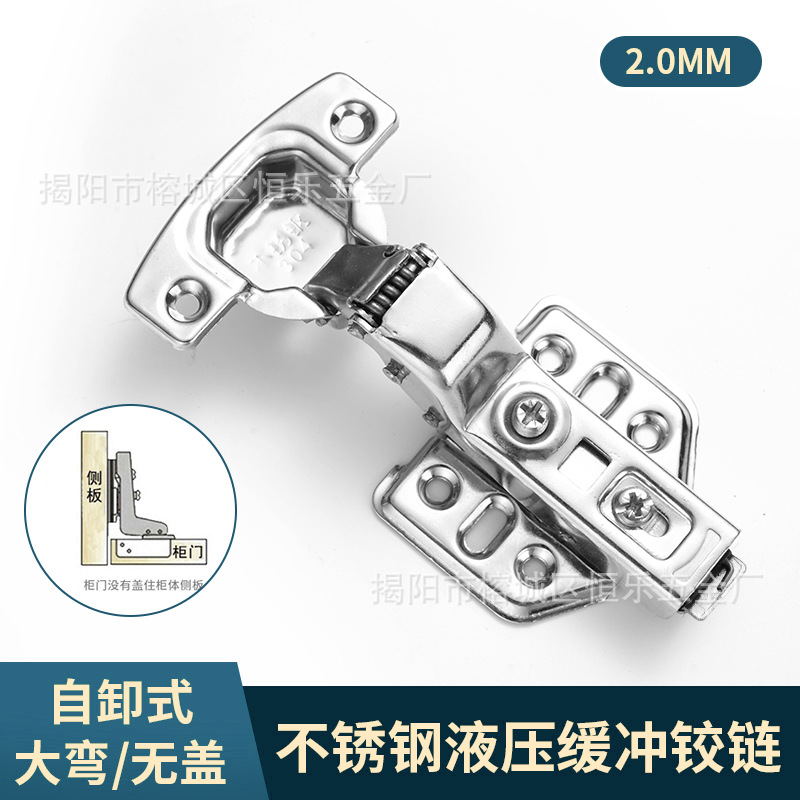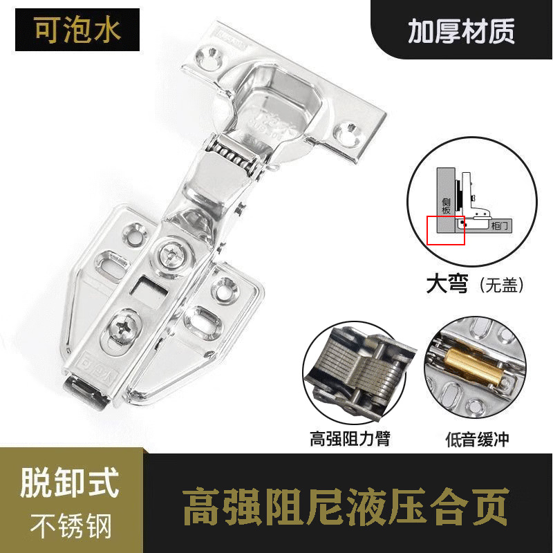 304不锈钢液压铰链阻尼缓冲柜门衣橱静音大中弯固定合页弹簧门铰