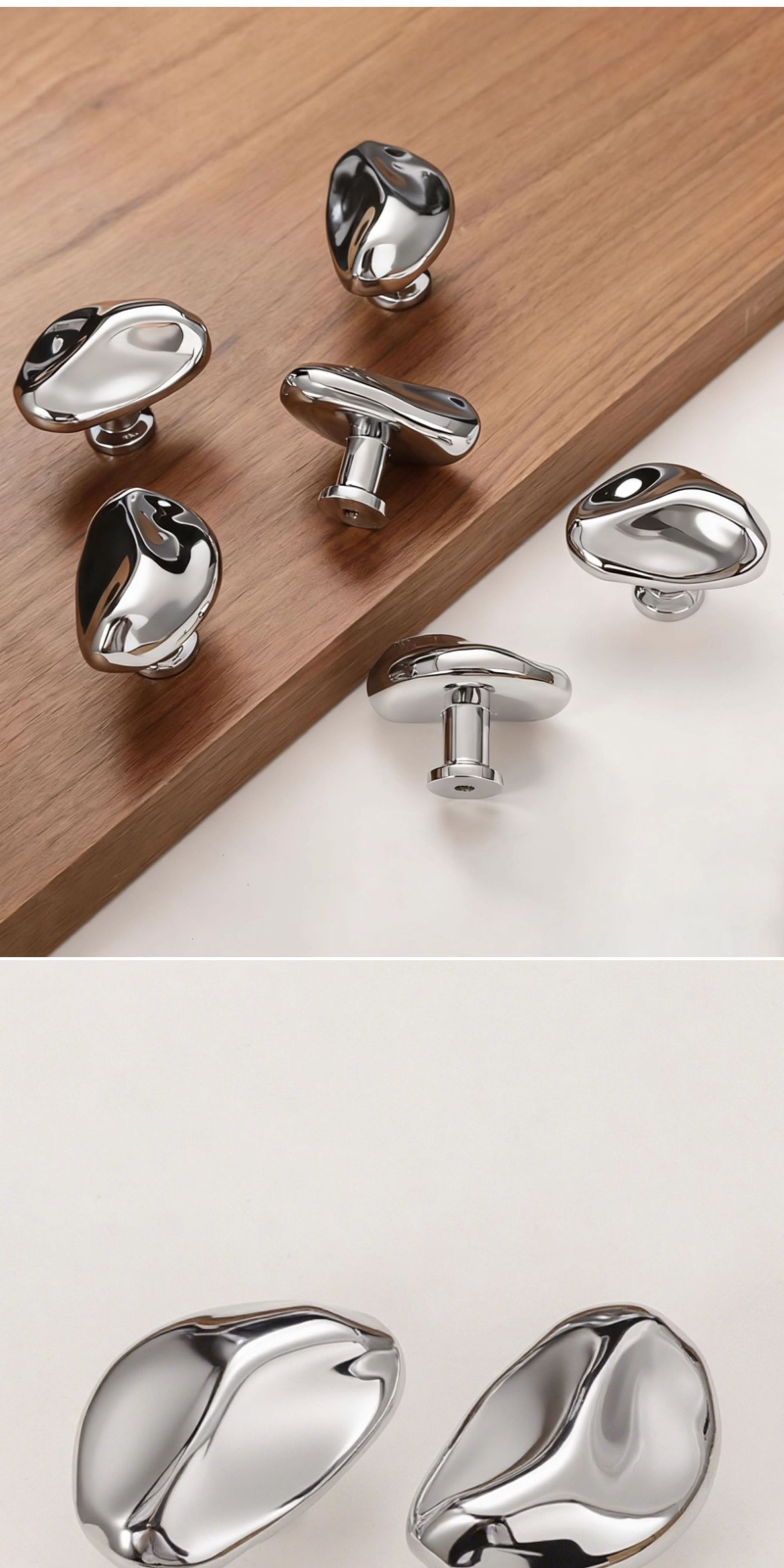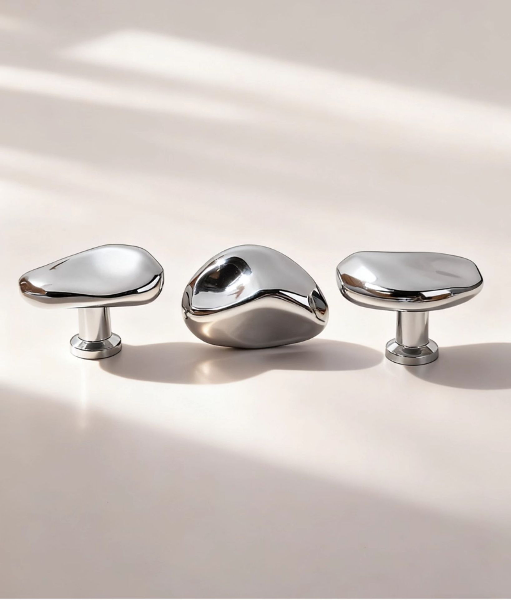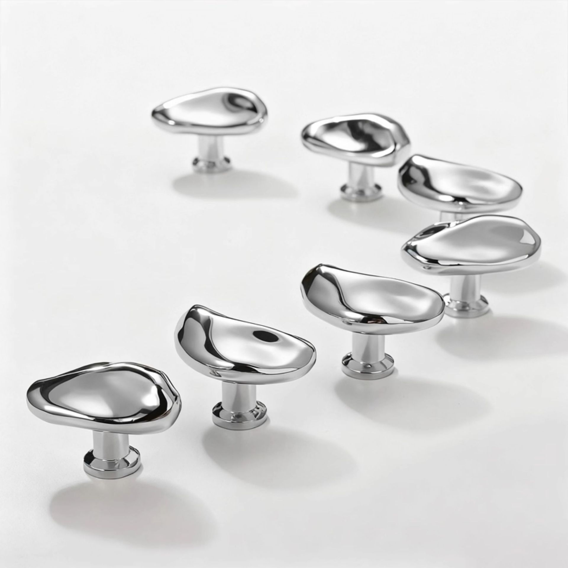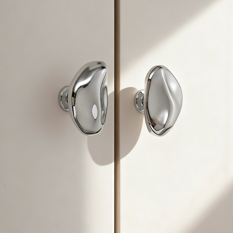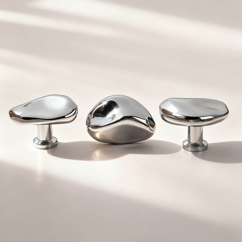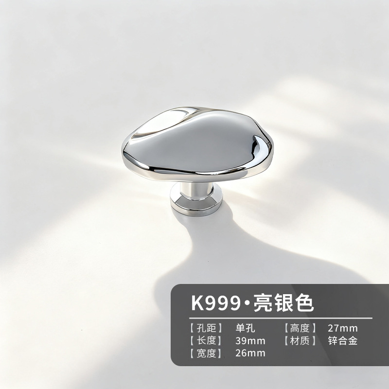 法式轻奢亮银色拉手现代简约衣柜门抽屉柜子新中式家具单孔小把手
