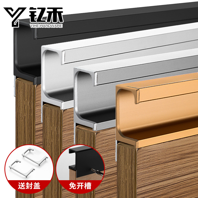 G型拉手柜门免开槽橱柜免拉手厨房柜门隐形把手封盖抽屉柜子把手