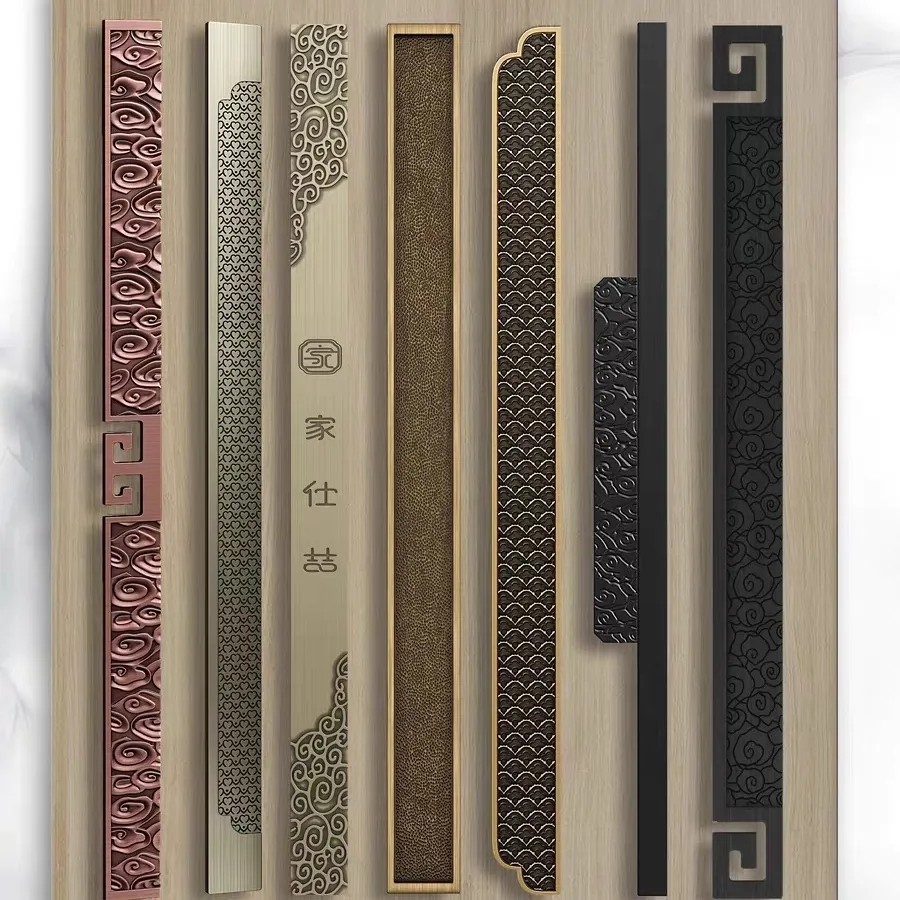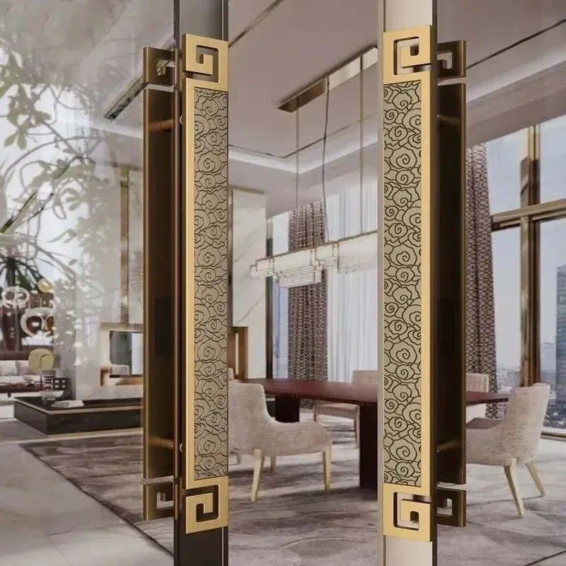 新中式酒店大门拉手别墅雕刻古铜长拉手木门把手铝合金玻璃门拉手