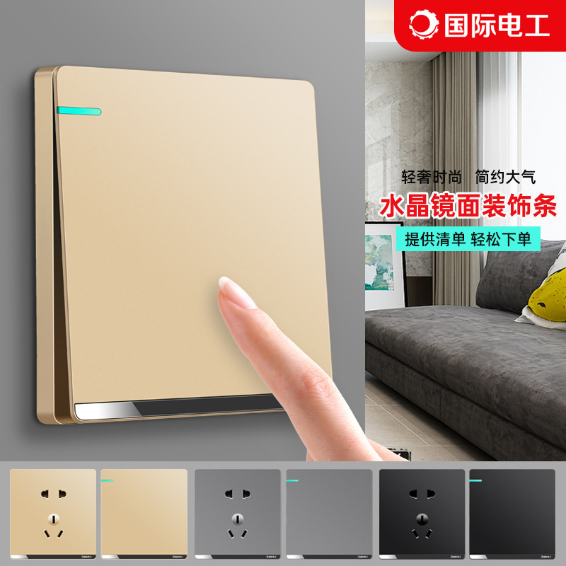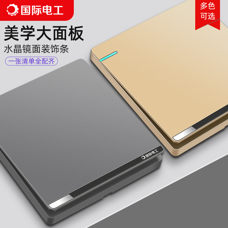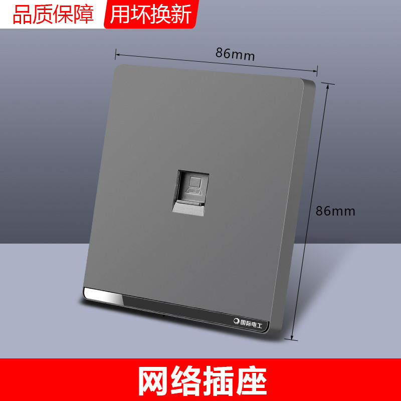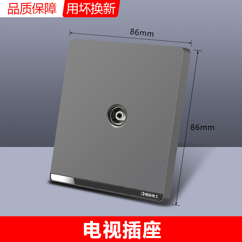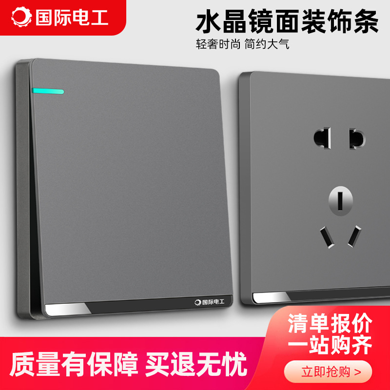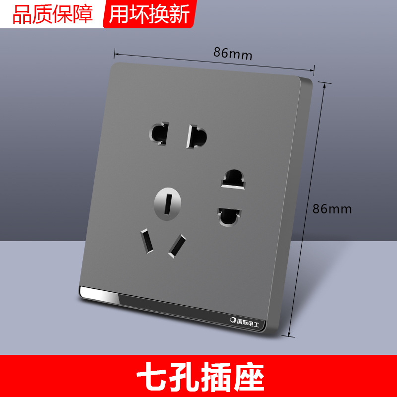国际电工86型暗装大板灰色家用墙壁电源一开五孔开关插座面板多孔