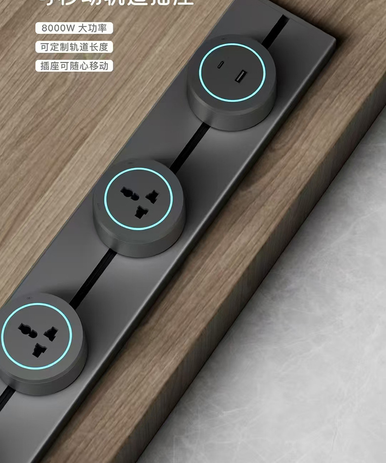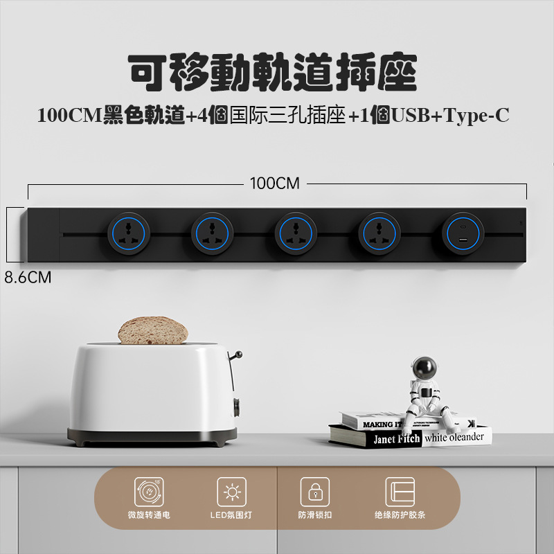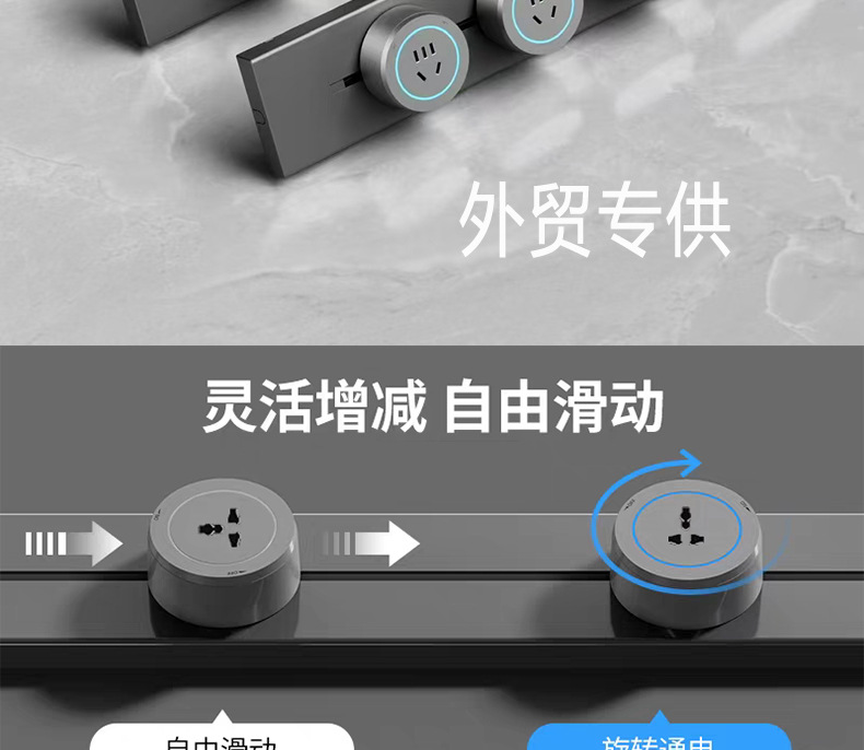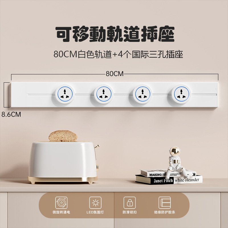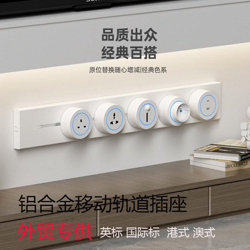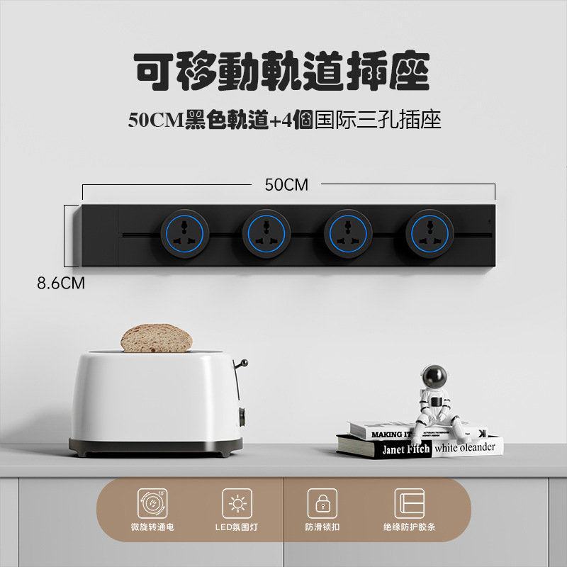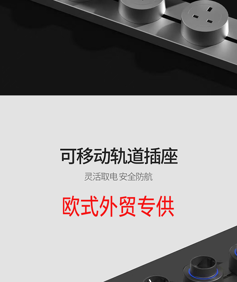 国际通用铝合金轨道插座外贸多功能三角可移动排插长条厨房电源插