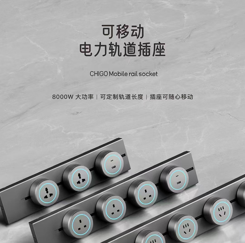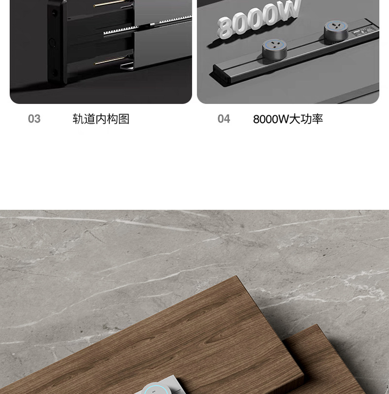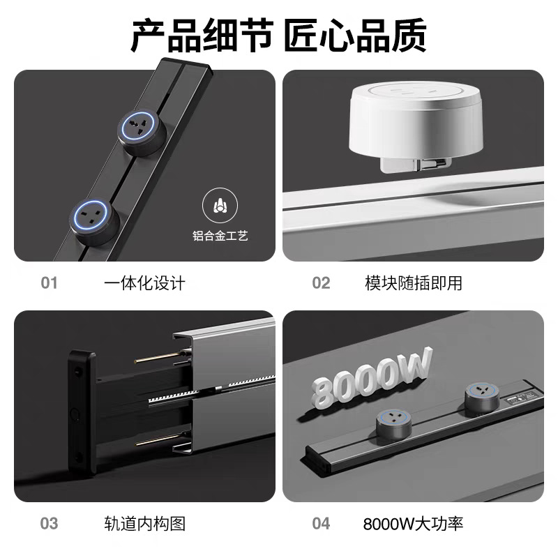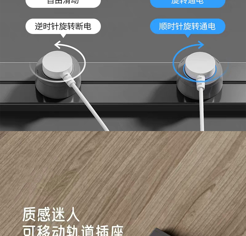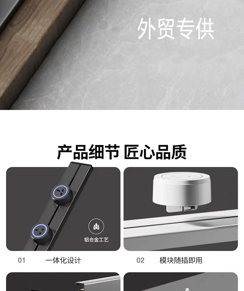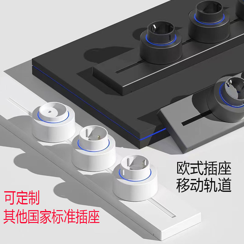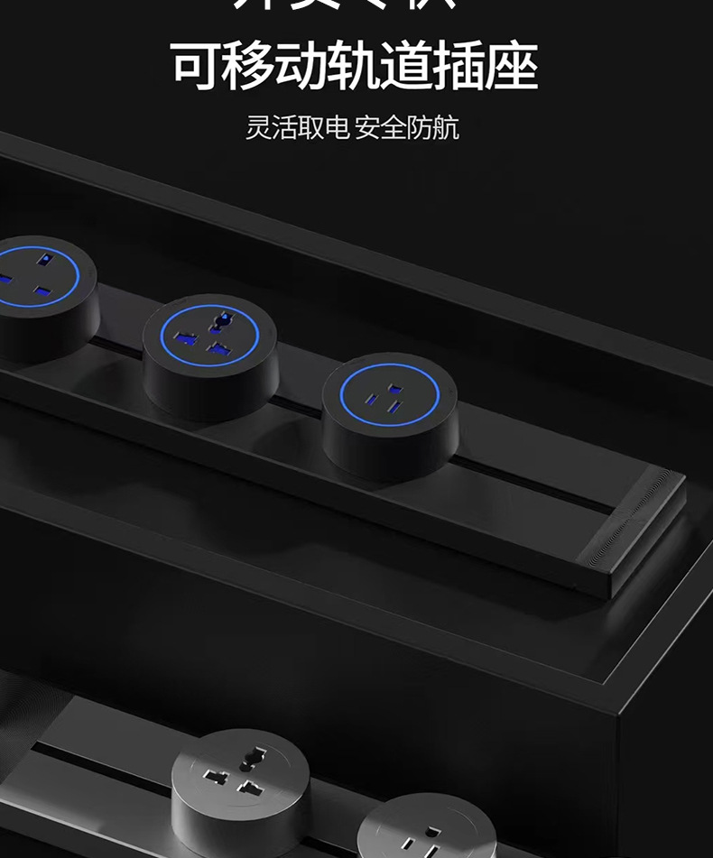 国际通用铝合金轨道插座外贸多功能三角可移动排插长条厨房电源插