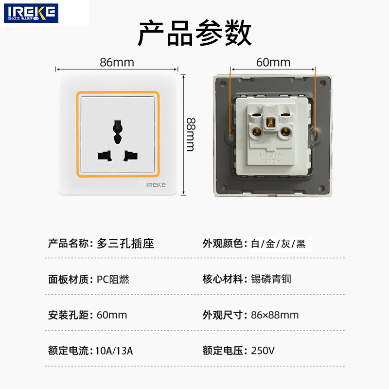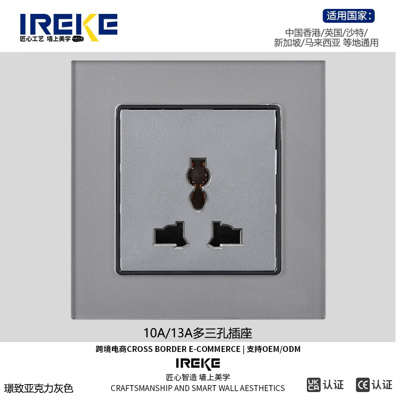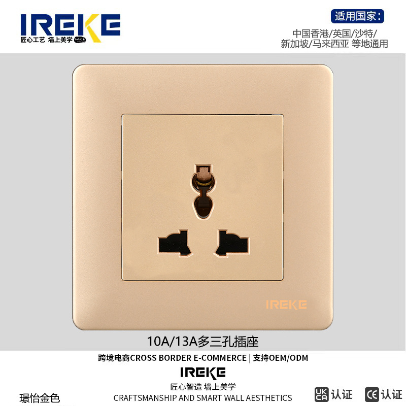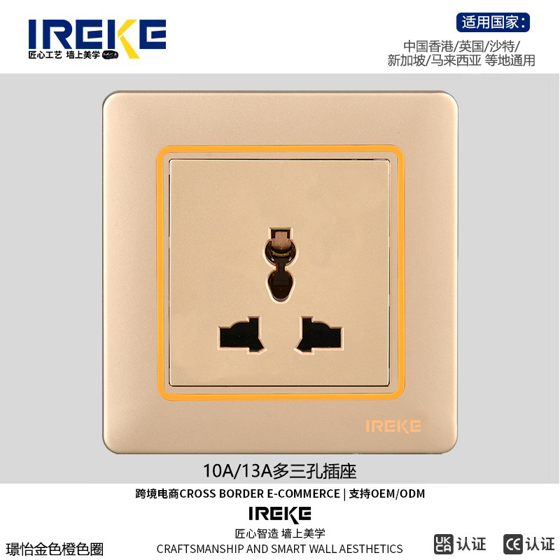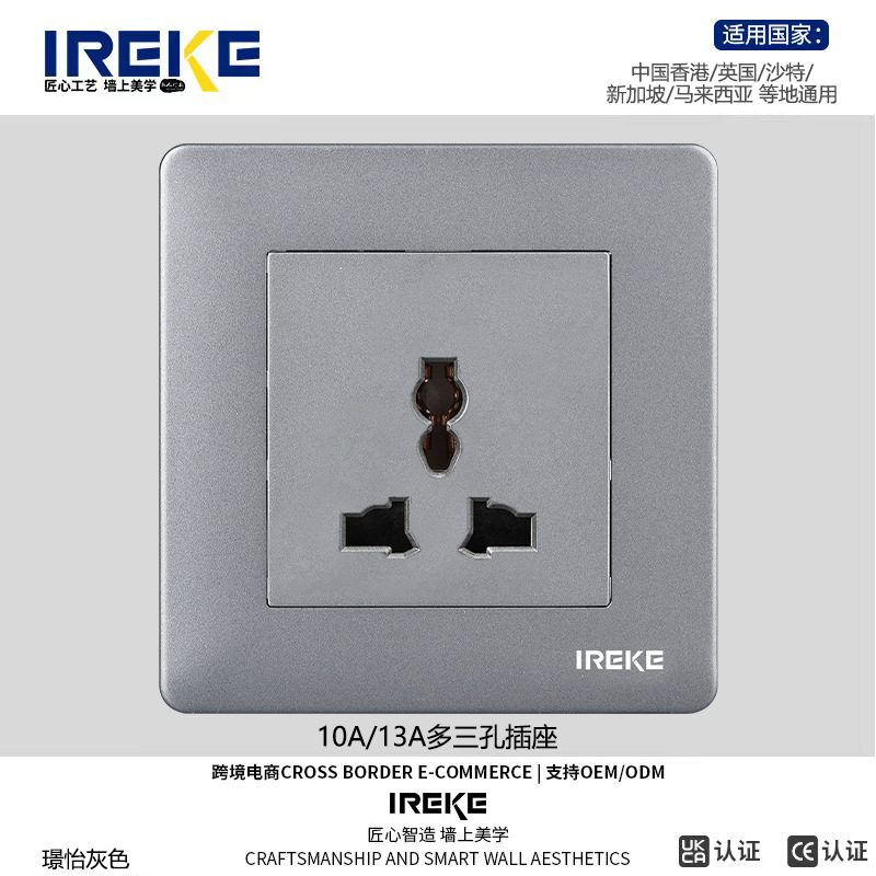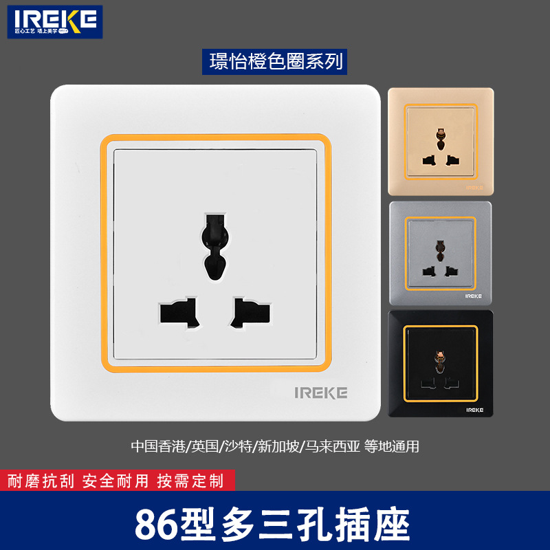 跨境CE认证86型多功能三孔暗插座多功能港式英式万能墙壁插座