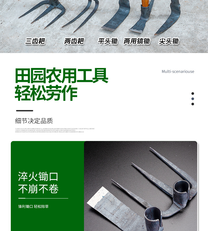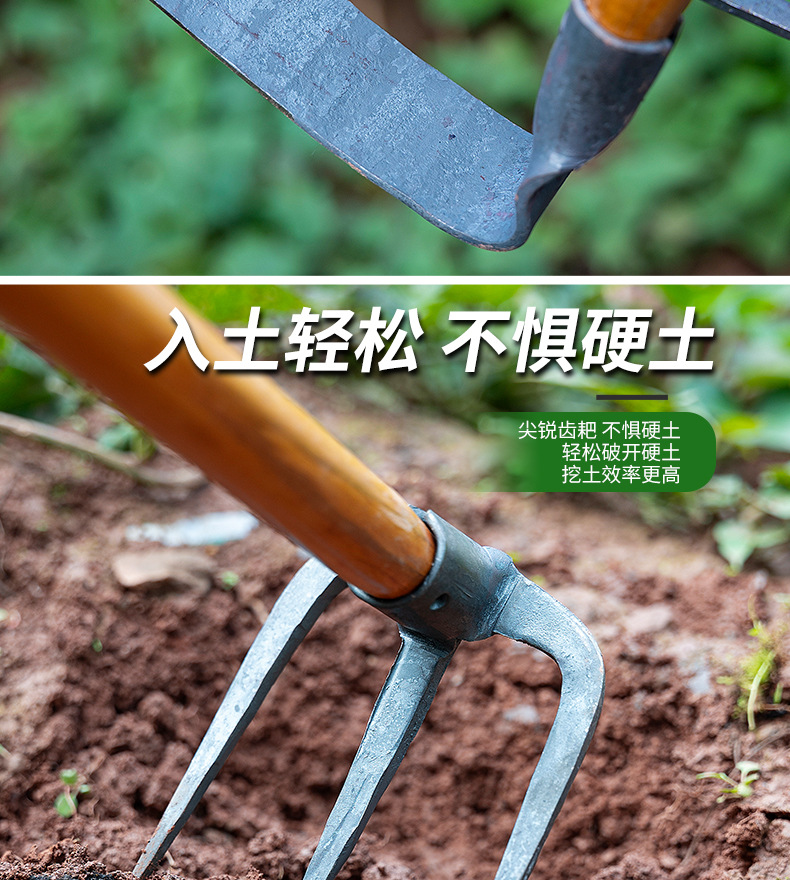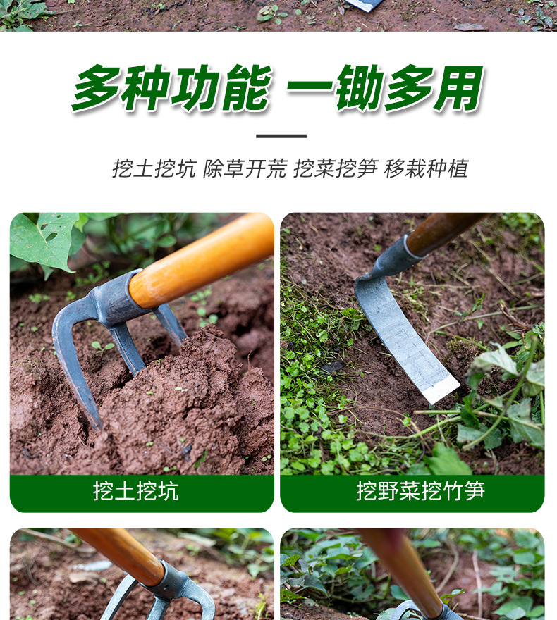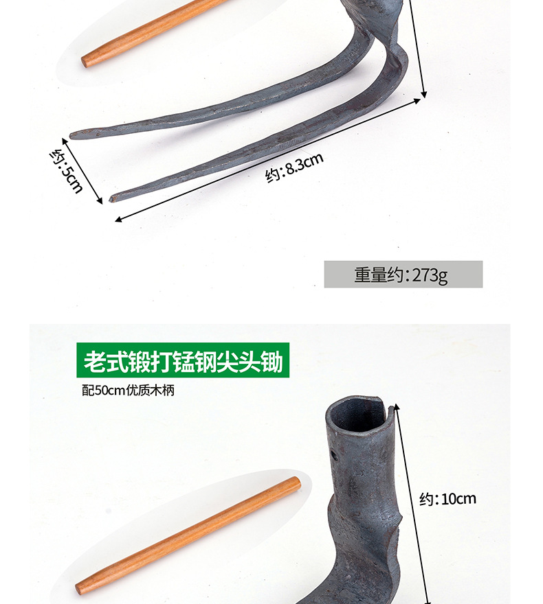 园林园艺工具锻打小锄头锰钢钉耙尖镐小镐锄种菜花园农用工具批发
