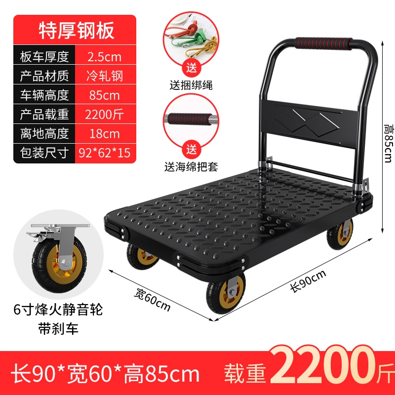 钢板小推车拉货手推车搬运车家用可移动可折叠便携式折叠式手拉车