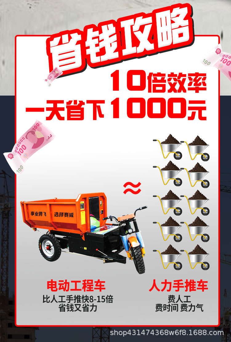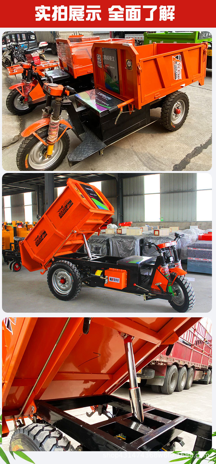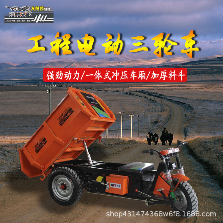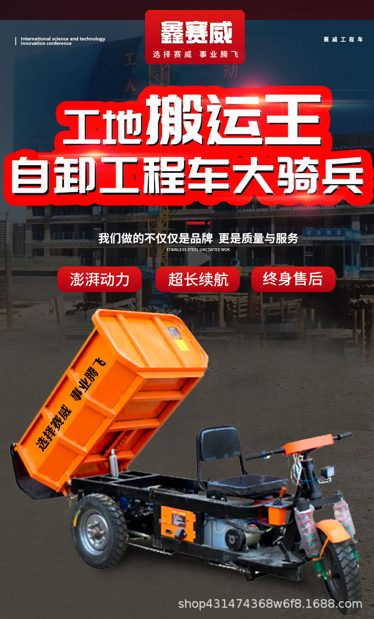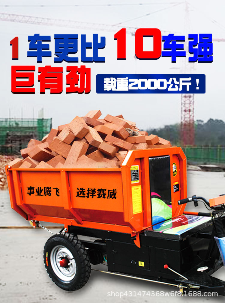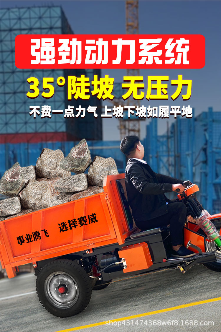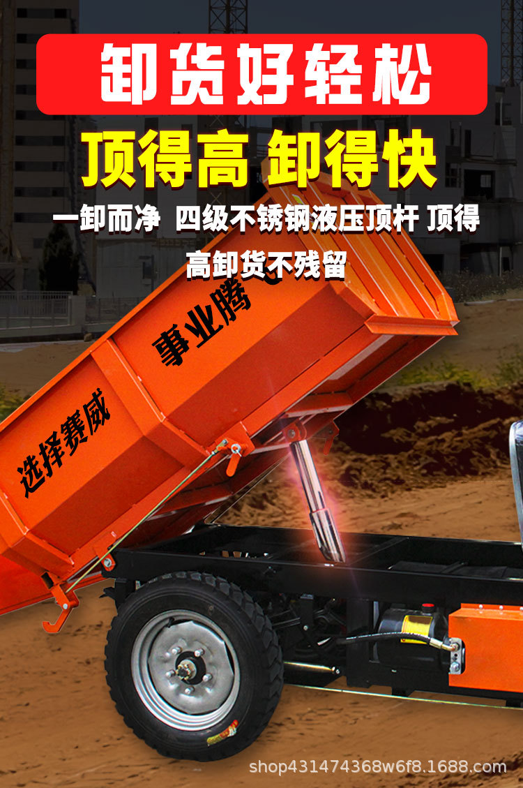 建筑工地电动三轮车工程拉砖拉砂浆自卸翻斗载重车可农用运输车