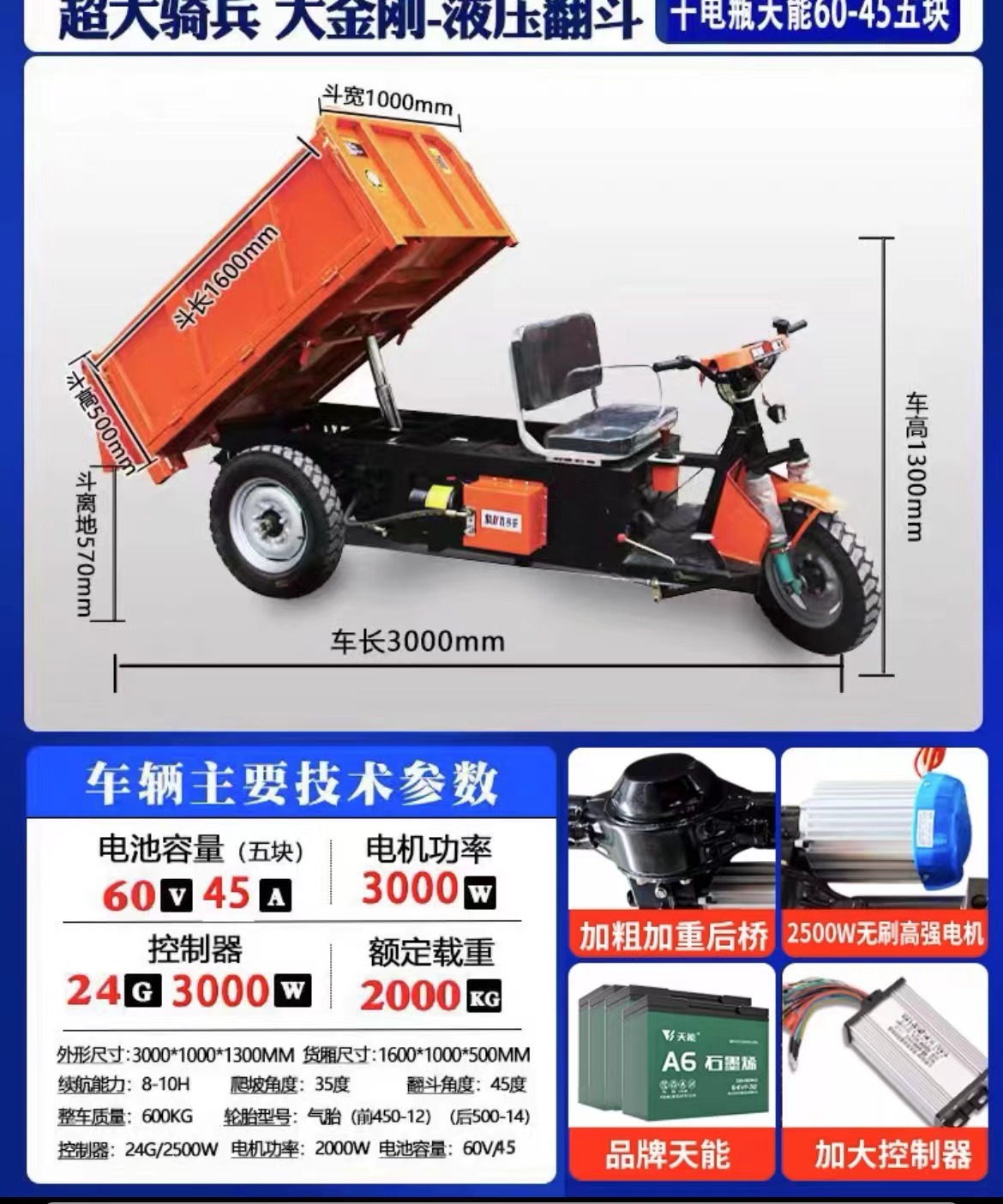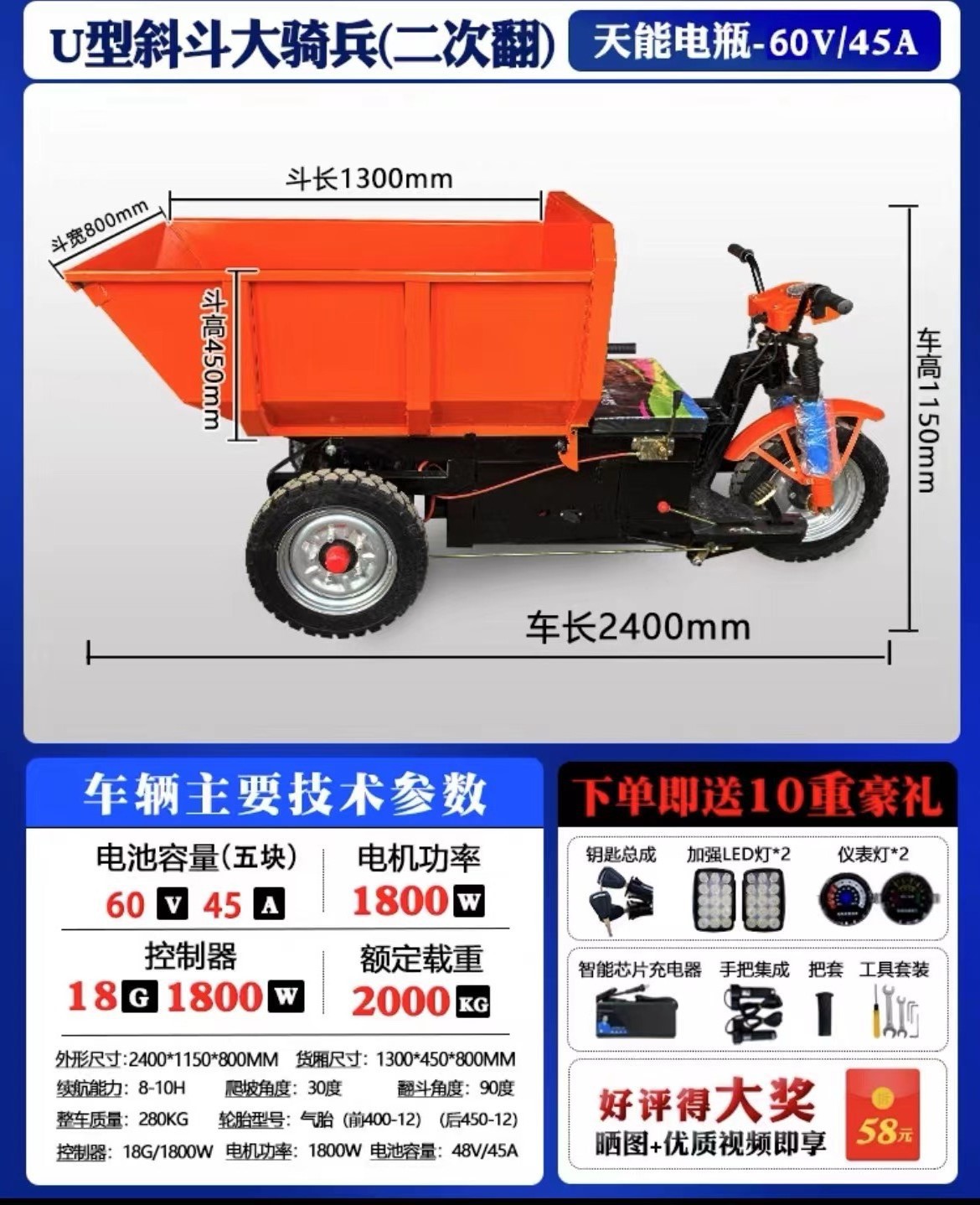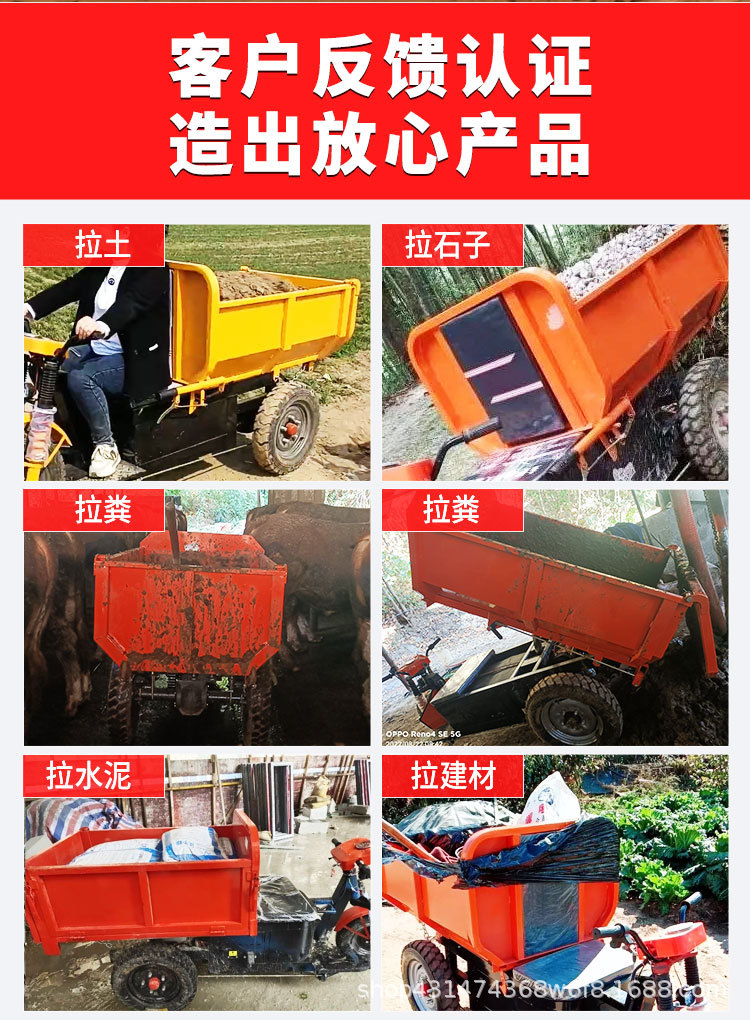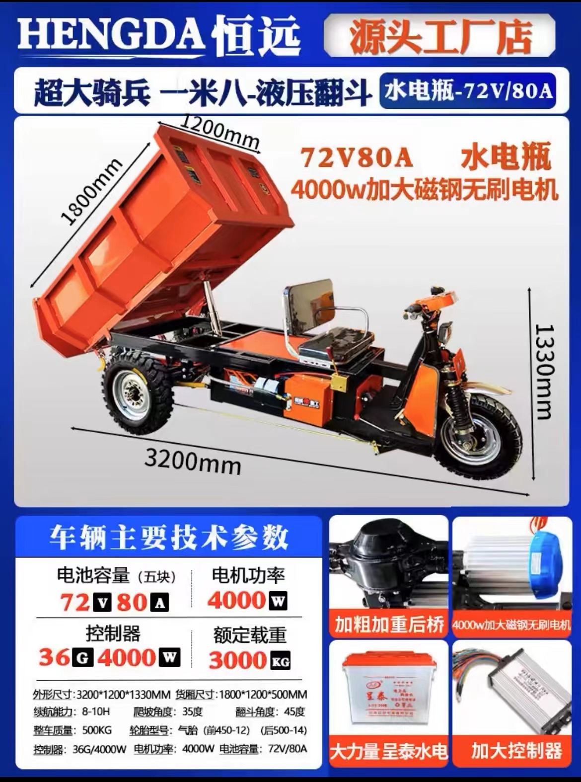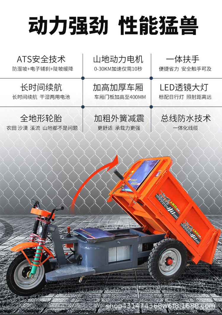 建筑工地电动三轮车工程拉砖拉砂浆自卸翻斗载重车可农用运输车