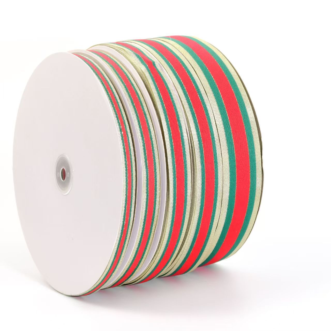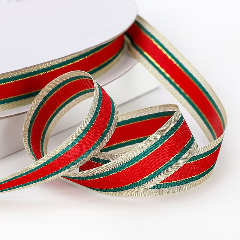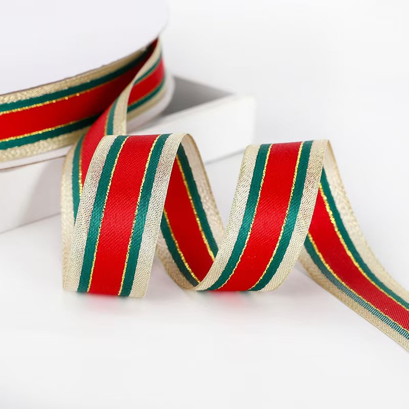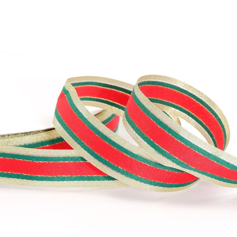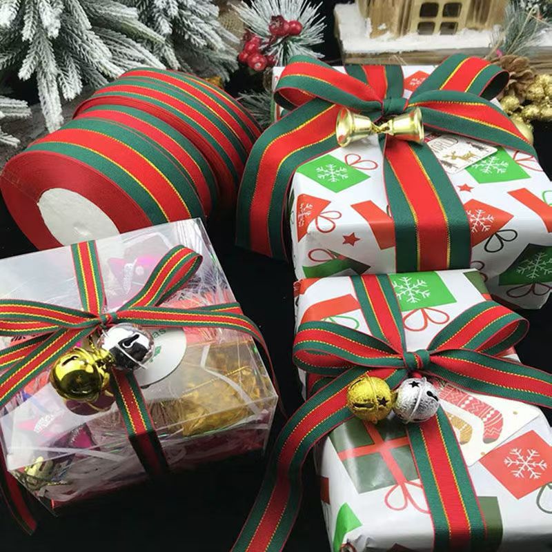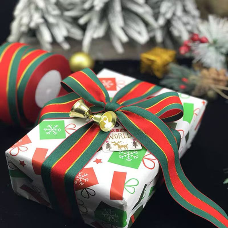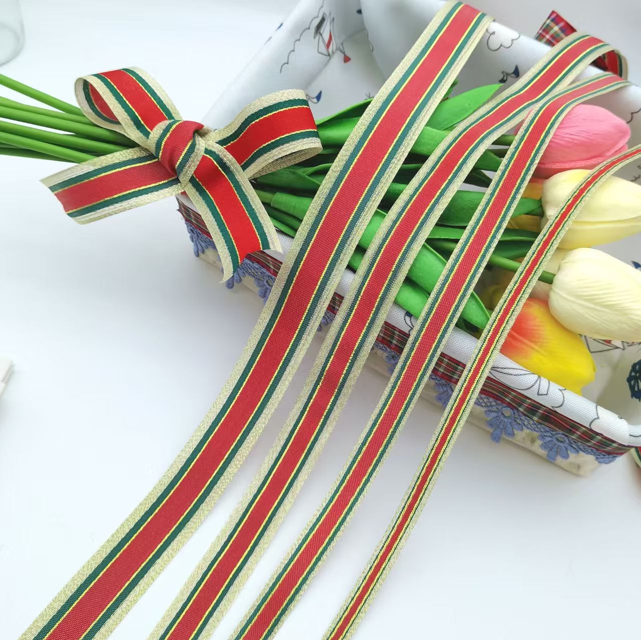 跨境圣诞节丝带绑鲜花蛋糕礼品包装彩带圣诞数装饰红绿金丝圣诞带