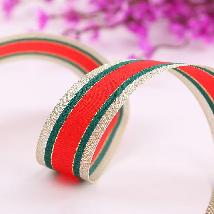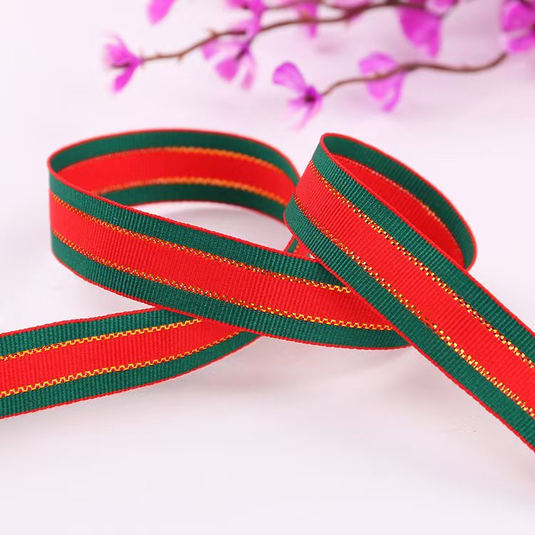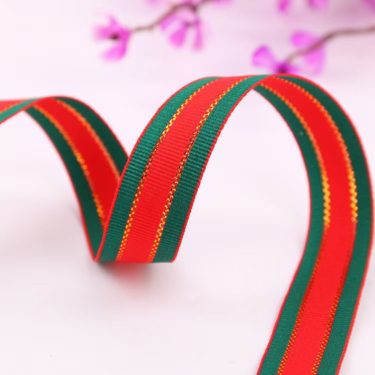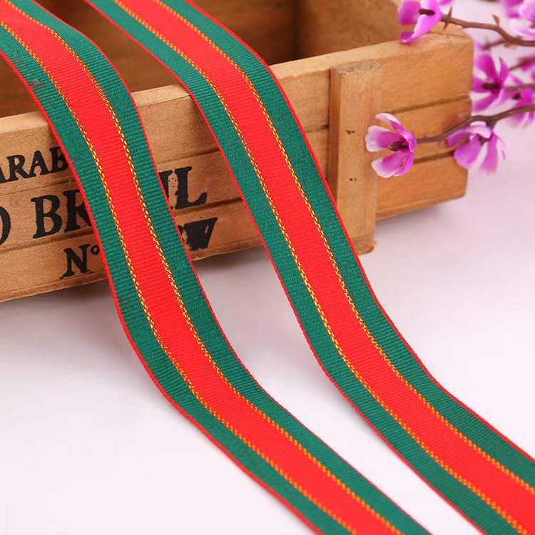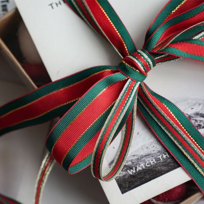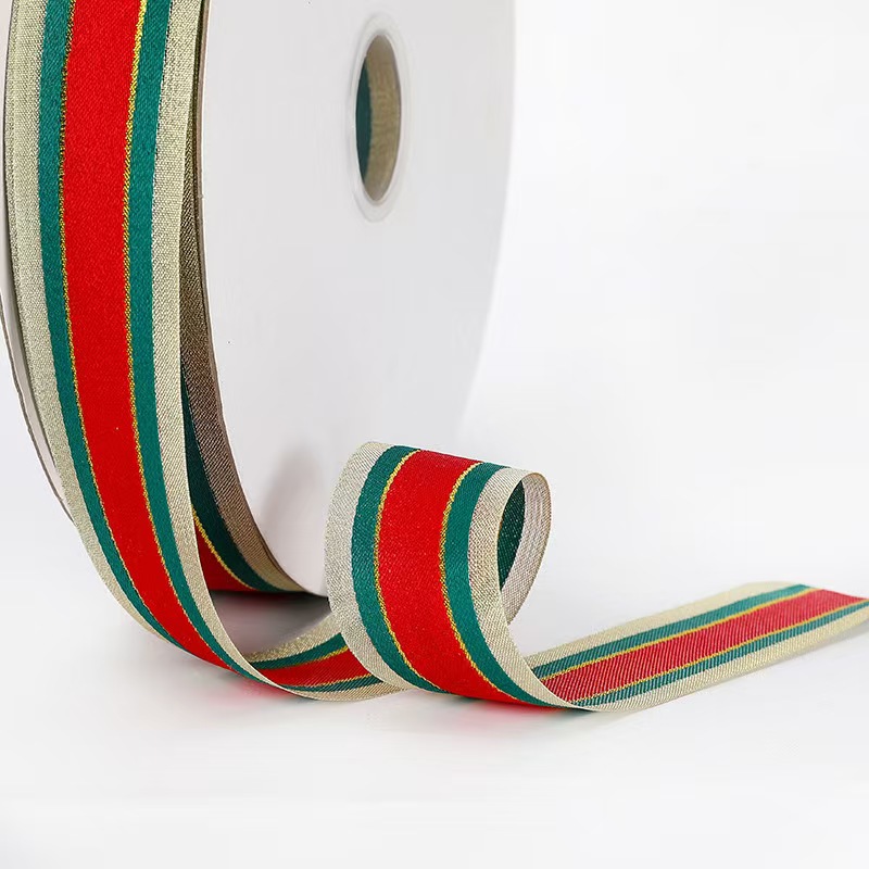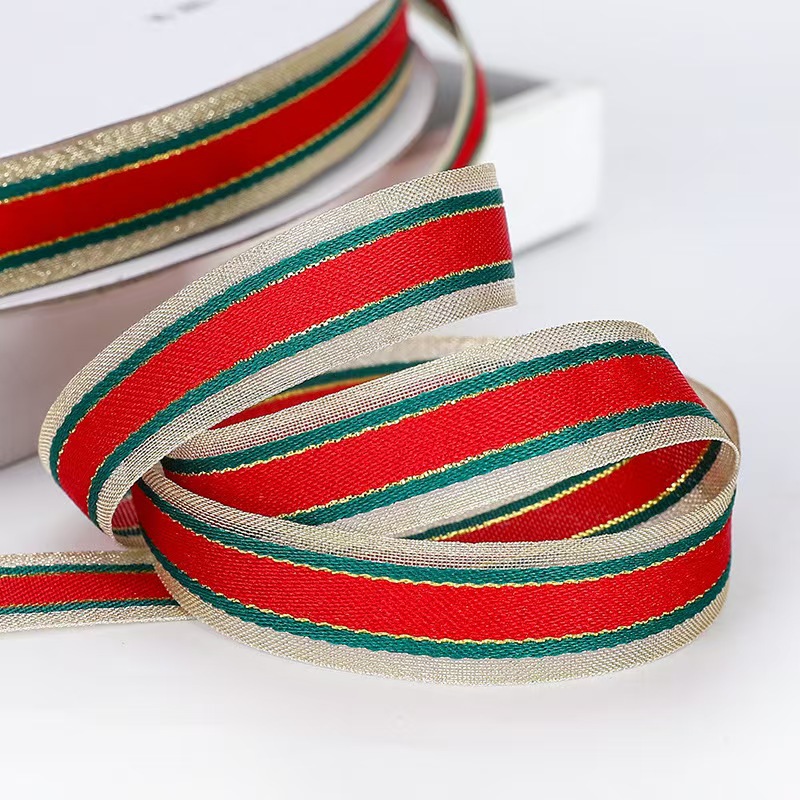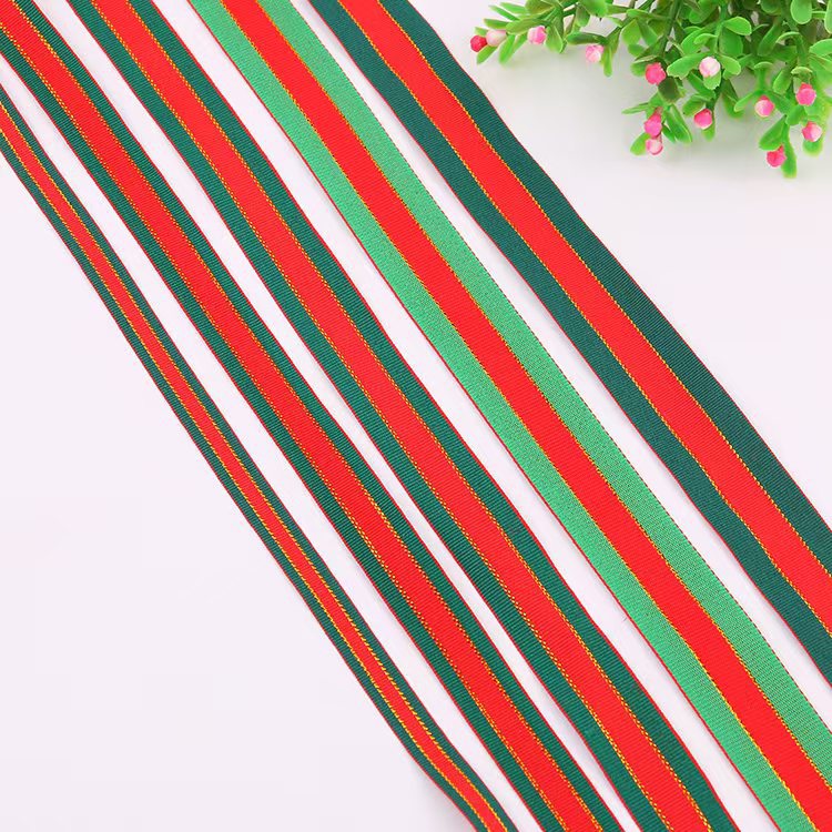 跨境圣诞节丝带绑鲜花蛋糕礼品包装彩带圣诞数装饰红绿金丝圣诞带