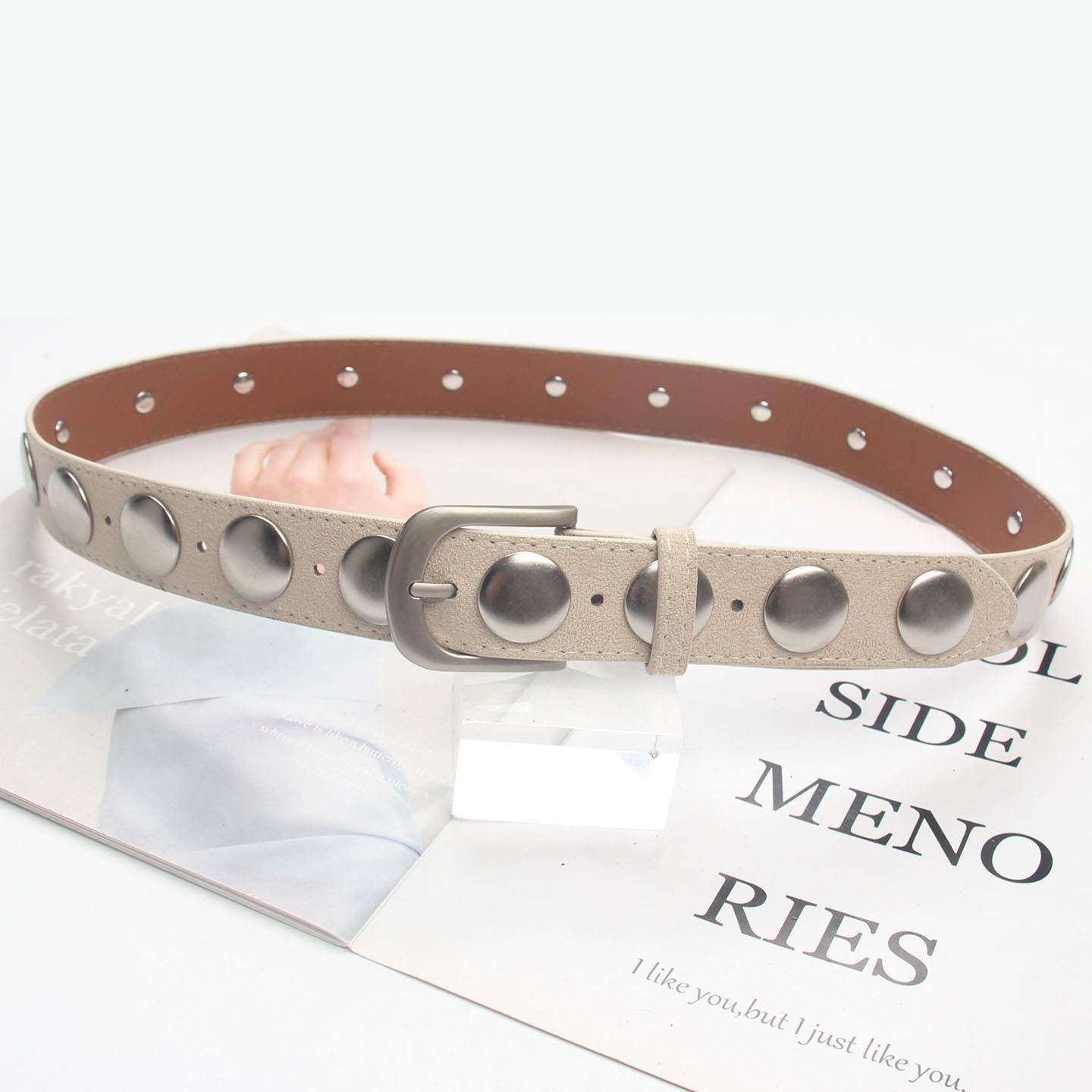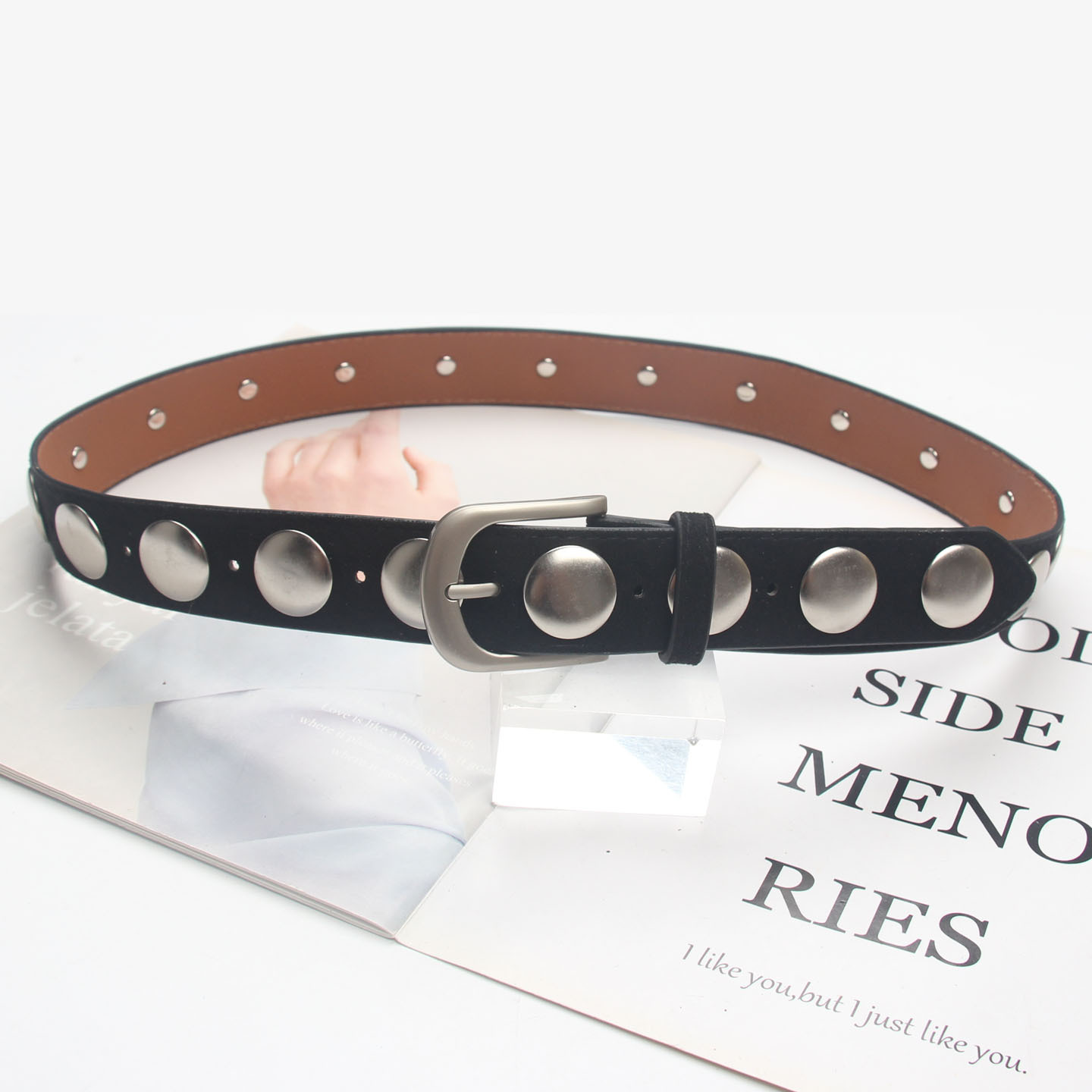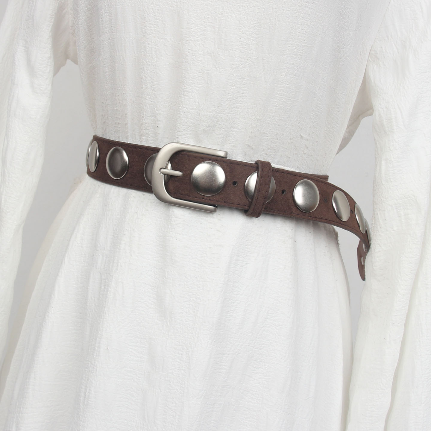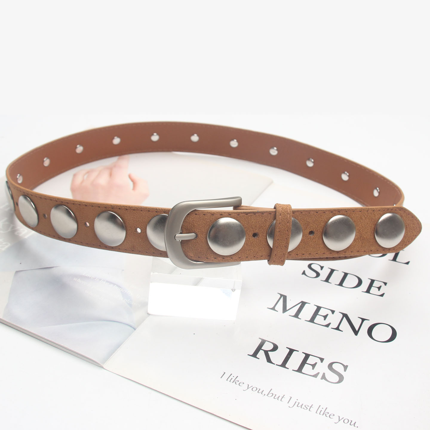 仿皮绒复古腰带女金属大柳钉腰带百搭西装牛仔裤皮带小西装腰封