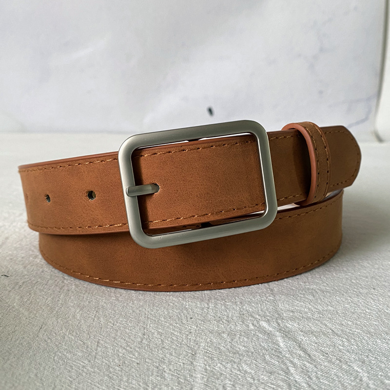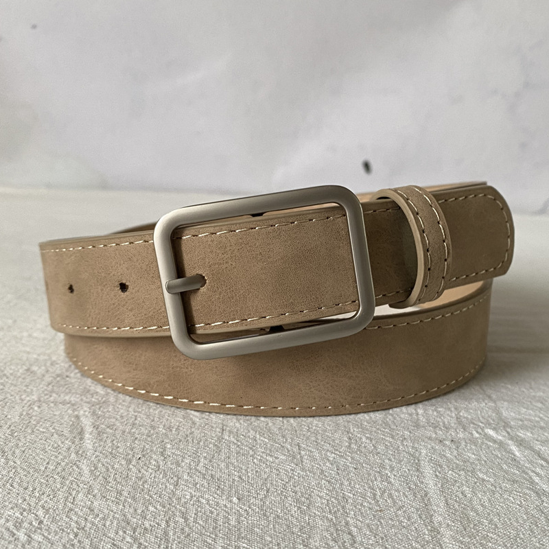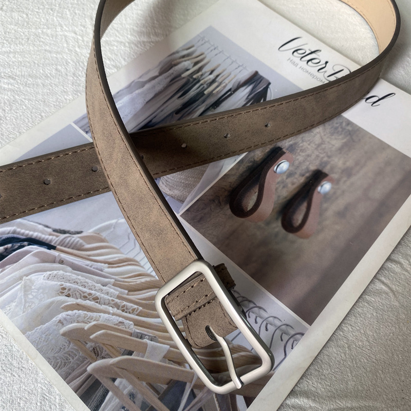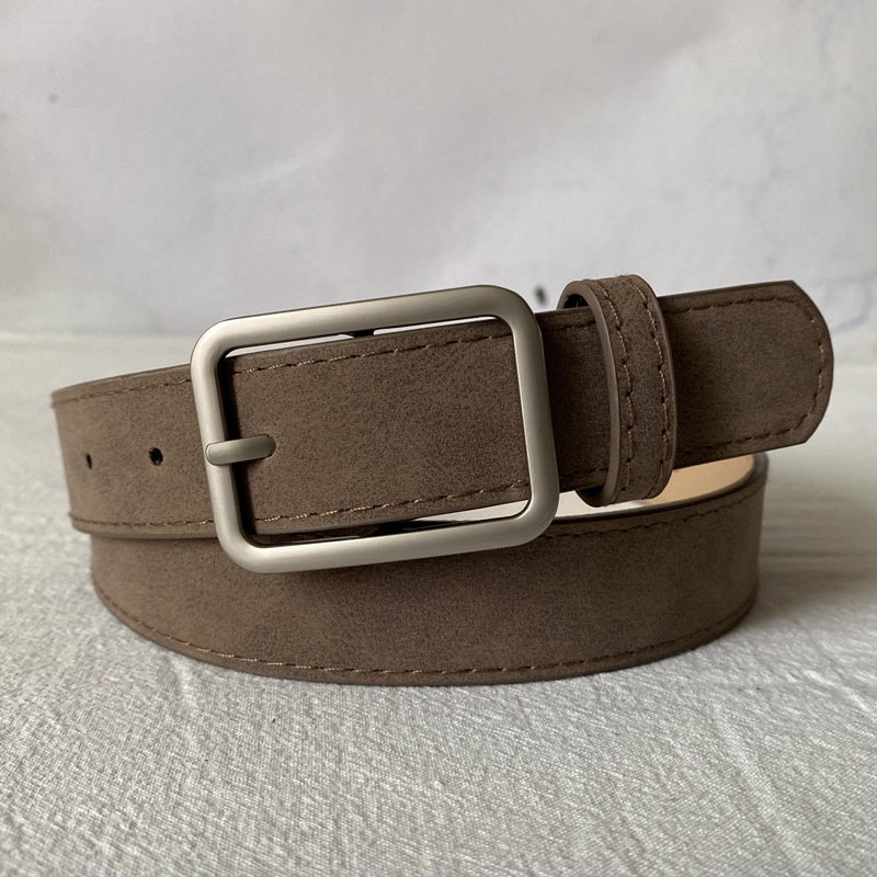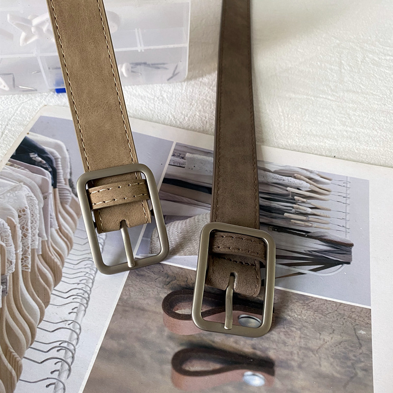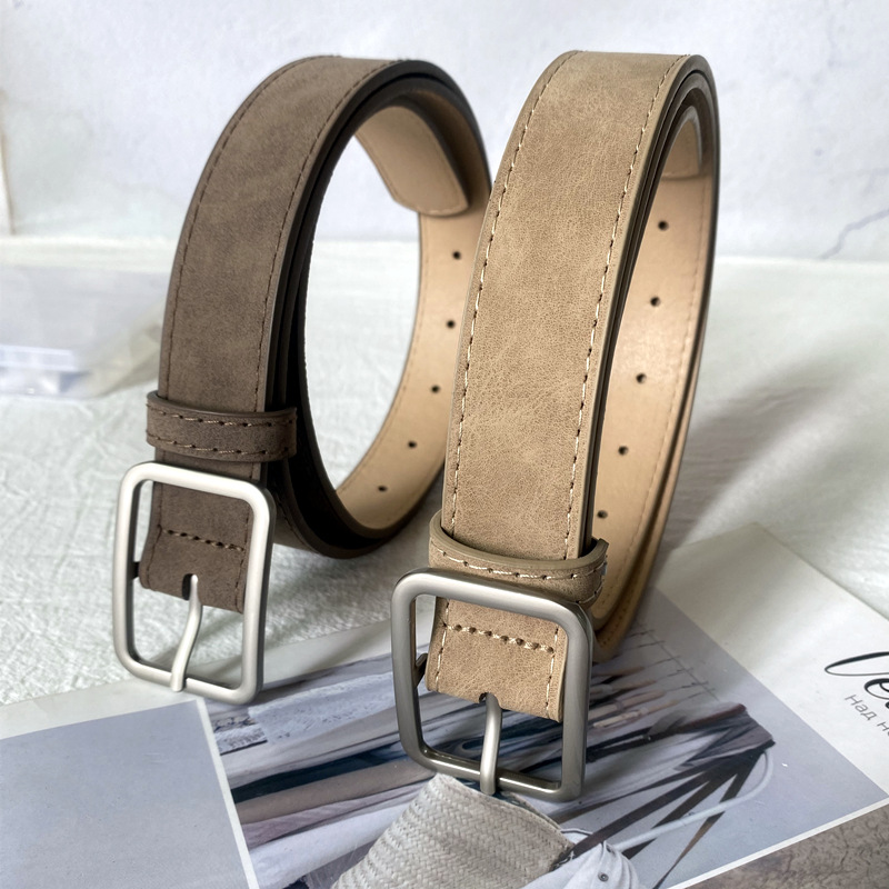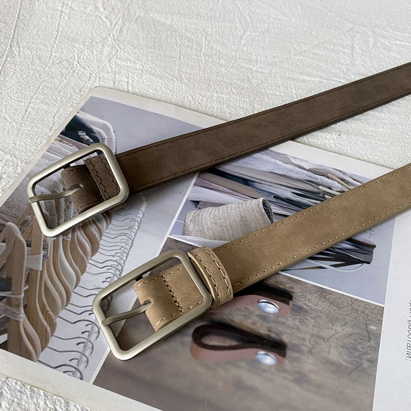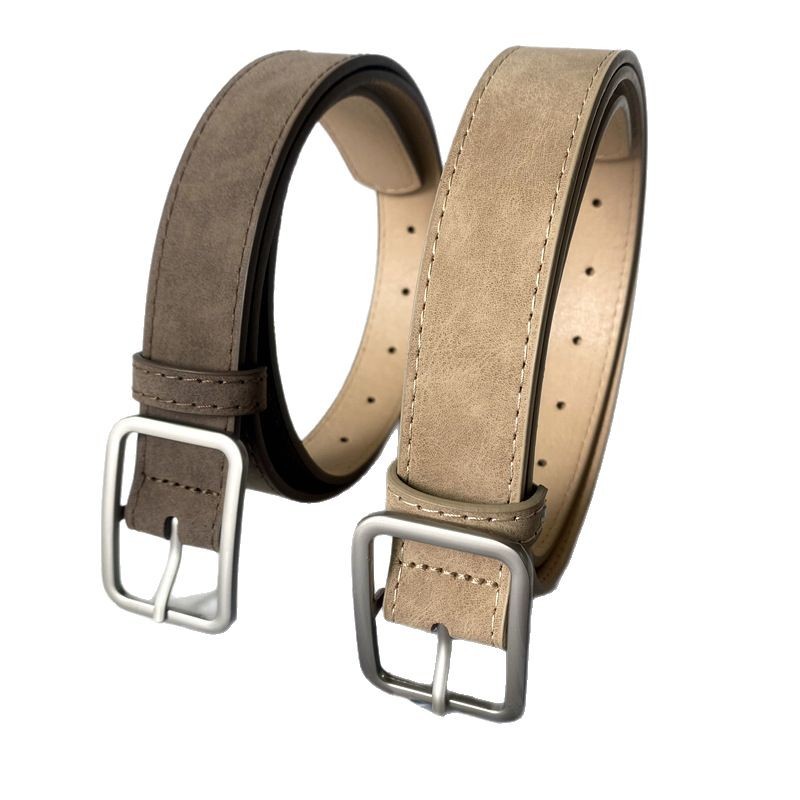 日式韩系ins深浅裸色牛仔裤皮带方扣翻毛时尚腰带磨砂皮复古学生