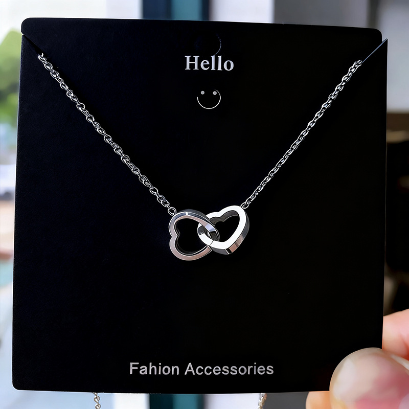 韩版18k玫瑰金简约双环爱心锁骨链钛钢不掉色网红项链小众ins饰品