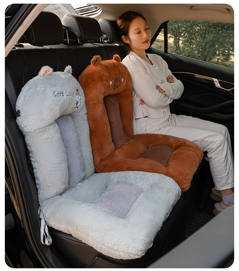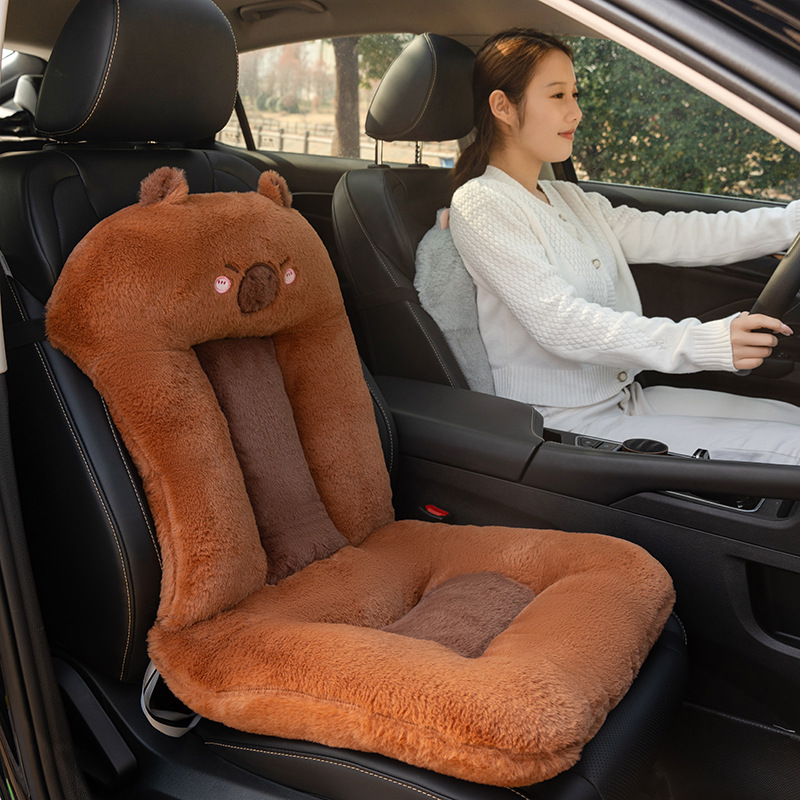 厂家批发水豚卡皮巴拉连体坐垫汽车前排坐垫椅垫仿兔毛面料