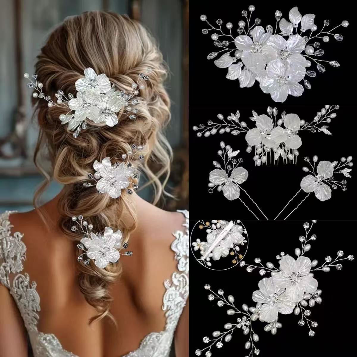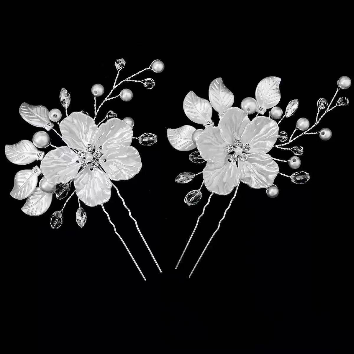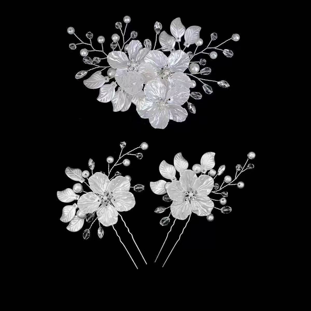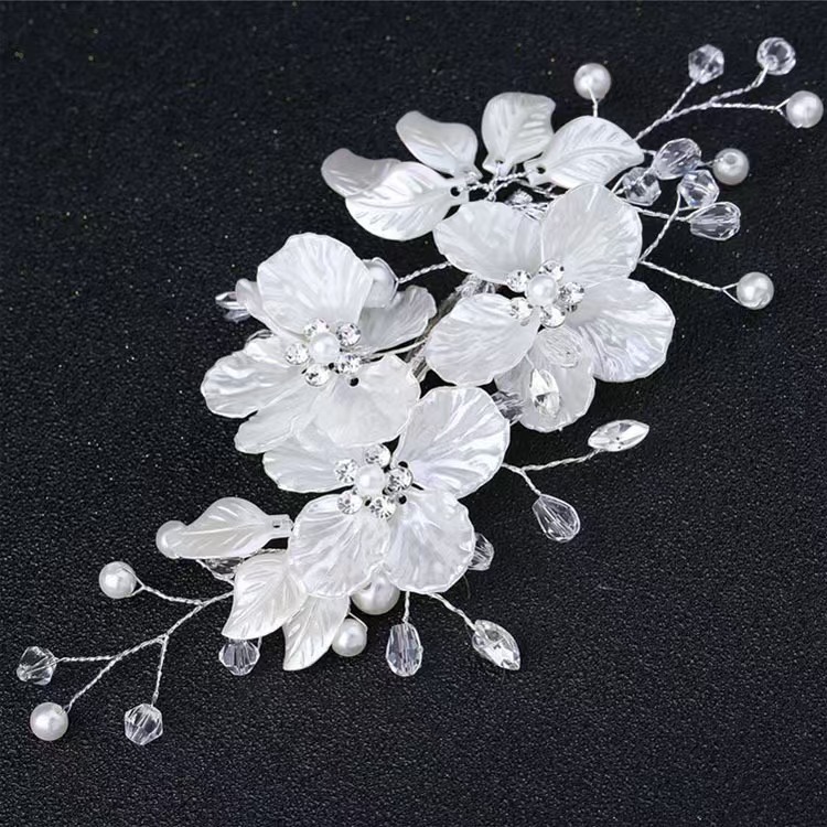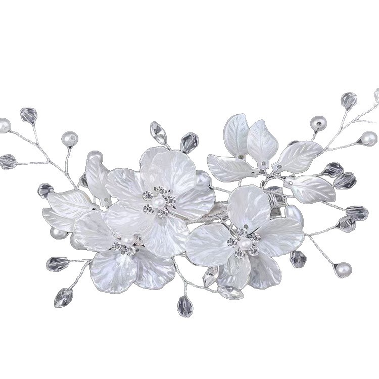 欧美新娘边夹皇冠头饰白色珍珠花饰品珍珠发夹速卖通婚纱盘发发饰