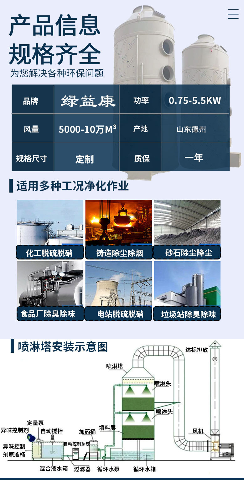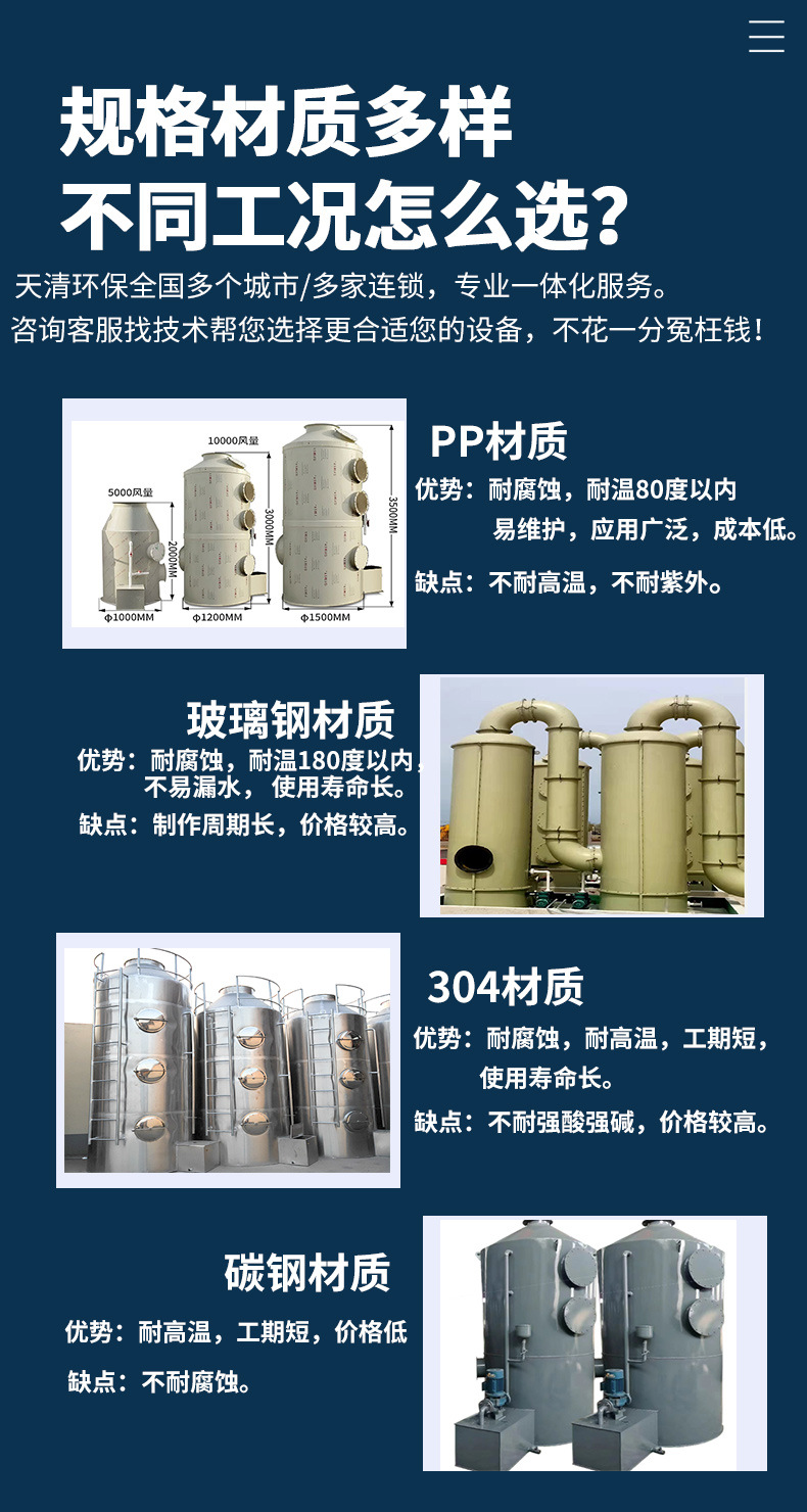 PP喷淋塔定制玻璃钢喷淋塔加工不锈钢除臭酸雾净化塔PP喷淋塔