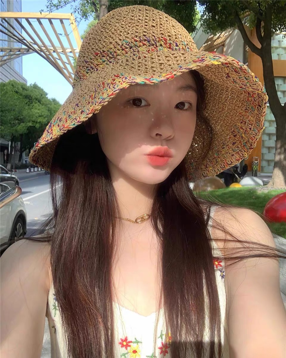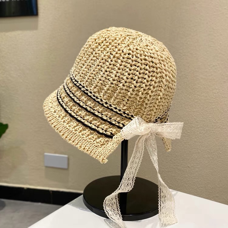 草帽海边帽子ins系带草编帽女出游防晒沙滩太阳帽蕾丝遮阳帽